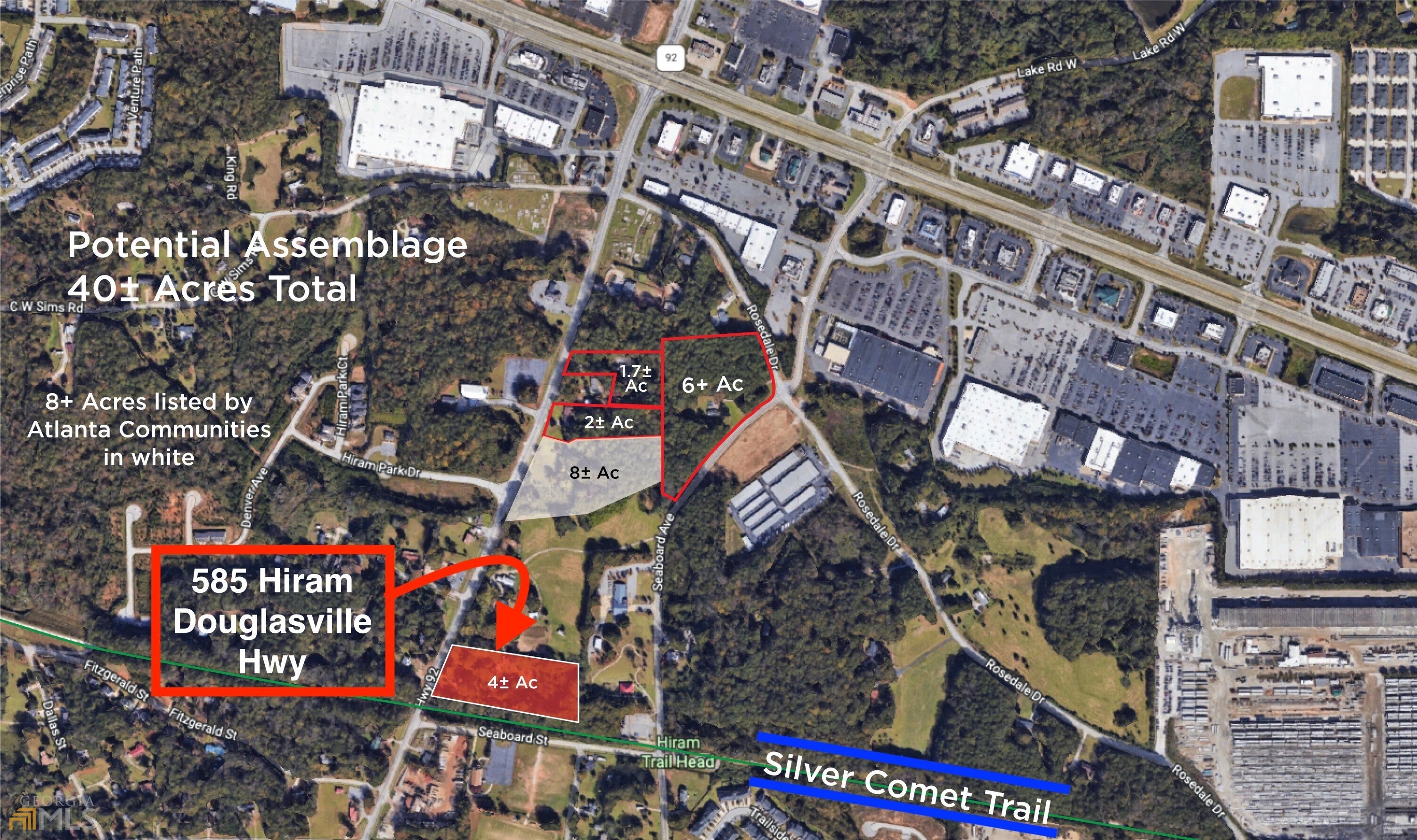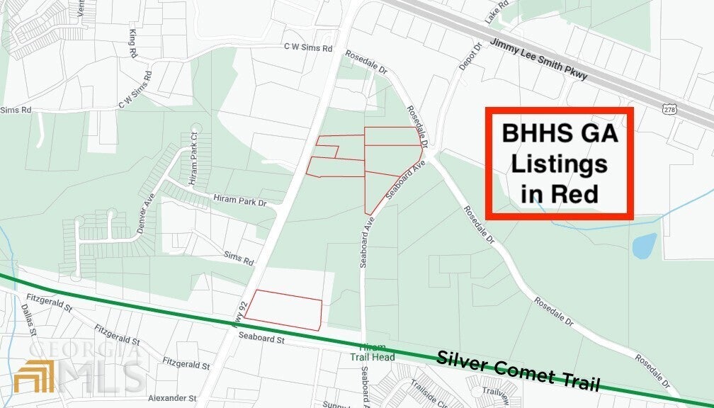 PRIME LOCATION FOR DEVELOPERS! Incredible 4 acre parcel surrounded by additional lots listed by BHHS for a potential 40+/- acre assemblage. Potential Commercial with maximum exposure along Hwy 92. Adjacent to the Silver Comet Trail and minutes to Retail, Shopping, Dining, Film Studio & Wellstar's Paulding Hospital. Hwy 92, Seaboard and Rosedale frontage if assembled. Prep work in process for the widening of HWY 92--COMING SOON! DOT plans available. Search BHHS's listings 244 Rosedale, 263 Hiram Douglasville Hwy and 329 Hiram Douglasville Hwy. Utilities Connected. **NO TRESPASSING! DO NOT WALK PROPERTY.**