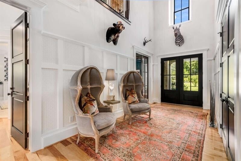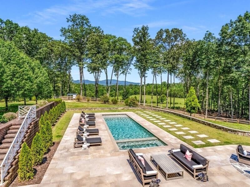 $1M+ PRICE IMPROVEMENT - Welcome to Meadow Creek Manor, a timeless private mountain estate on 23 acres in Blue Ridge, Georgia. Located just minutes from downtown Blue Ridge on all flat paved roads, enter though automated gates down the private tree-lined driveway unveiling the four-bay car barn (additional 3 car attached) and stunning 10,000 sq foot completely renovated and fully furnished home. Take in the incredible scenery of the pool, landscape, pasture, creek and beyond to the endless mountain views of the Cohutta Wilderness. The home and grounds underwent a significant renovation and enhancement over the past year including: exquisitely furnished with high end designer furniture, art, lighting, rugs, wallpaper, and decor; new basement level custom kitchen and bar; full gym and game room, spa room with infrared sauna; updated main level chef's kitchen; updated bathrooms; new paint throughout; custom wallpaper treatments; all new light fixtures, led can lights and ceiling fans; Sonos system; new spring fed well pump and pipes with whole house water filtration; two electric car chargers; and new powered entry gates with camera and app control. The exterior and grounds underwent a significant transformation as well, including: complete re-staining and painting the exterior; tree removal and landscaping design to gain complete privacy and spectacular views of the Cohutta Mountain Wilderness; new Sport Court with pickleball, volleyball, badminton, and basketball that could also be used as a helicopter pad; 15x50 heated saltwater pool and spa with pebble tec, commercial gas heater, Indiana limestone pavers, and RH teak furniture; Barn, chicken coop and fencing for animals; and hiking/ATV trails throughout the property. Located just 10 minutes from downtown Blue Ridge or McCaysville, 25 minutes to Blairsville private airport, 25 minutes to Ellijay, and 1.5 hours to Atlanta. The possibilities for this property are limitless: equestrian, family compound, corporate retreat, wedding venue, bed/breakfast, wellness retreat, and more. This estate is unmatched for its combination of location, acreage, square footage, renovation, furnishings, amenities, privacy and views.