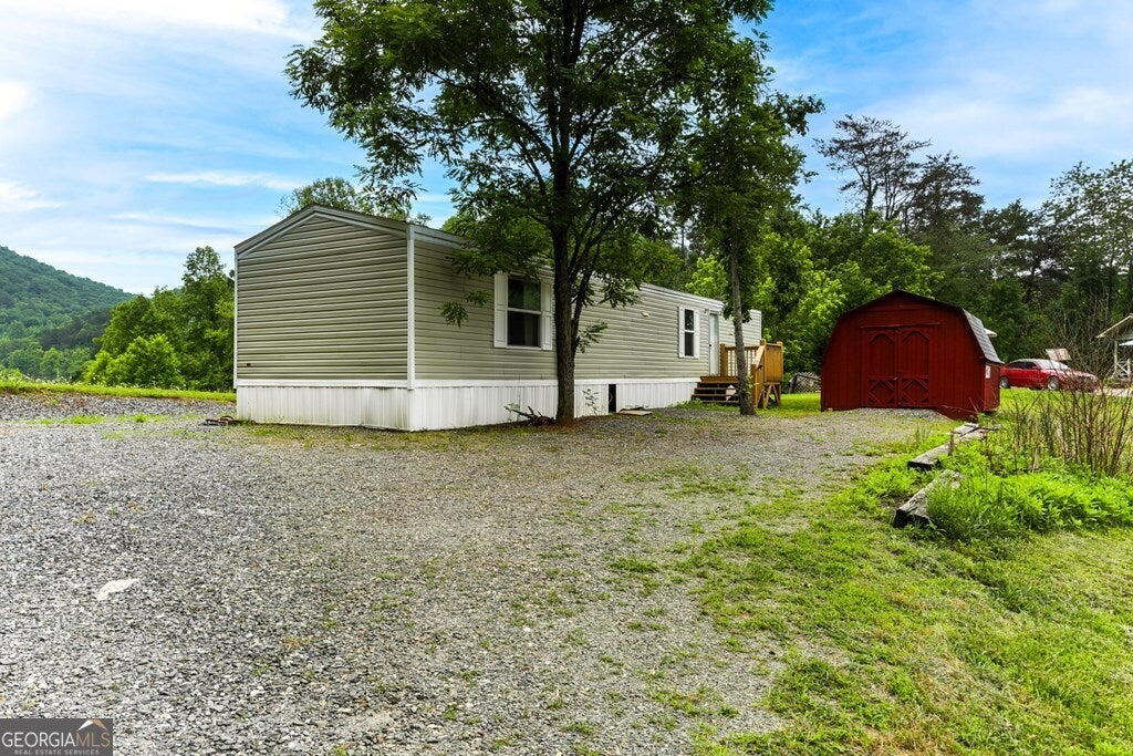 Immaculate Manufactured Home Overlooking Beautiful Pasture & mountains in North Carolina! Experience tranquil living in this immaculate 2-bedroom, 2-bathroom furnished manufactured home nestled in the picturesque mountains of North Carolina. Perfectly positioned to overlook stunning pastures & mountains, this home offers both comfort and convenience. Key Features: Open Floor Plan: The living room seamlessly flows into an eat-in kitchen, creating a welcoming space for gatherings and daily living. Spacious Covered Back Deck: Perfect for enjoying the breathtaking mountain and valley views year-round. Extra Storage: Includes a separate storage building to accommodate all your needs. Ample Parking: Plenty of parking space for you and your guests. No Deed Restrictions: Offering you the freedom to make this property truly your own. Prime Location: Just minutes from the charming downtown area of Hayesville, providing easy access to local amenities and attractions. This property combines serene mountain living with modern comforts, making it an ideal retreat for those seeking peace and privacy.
