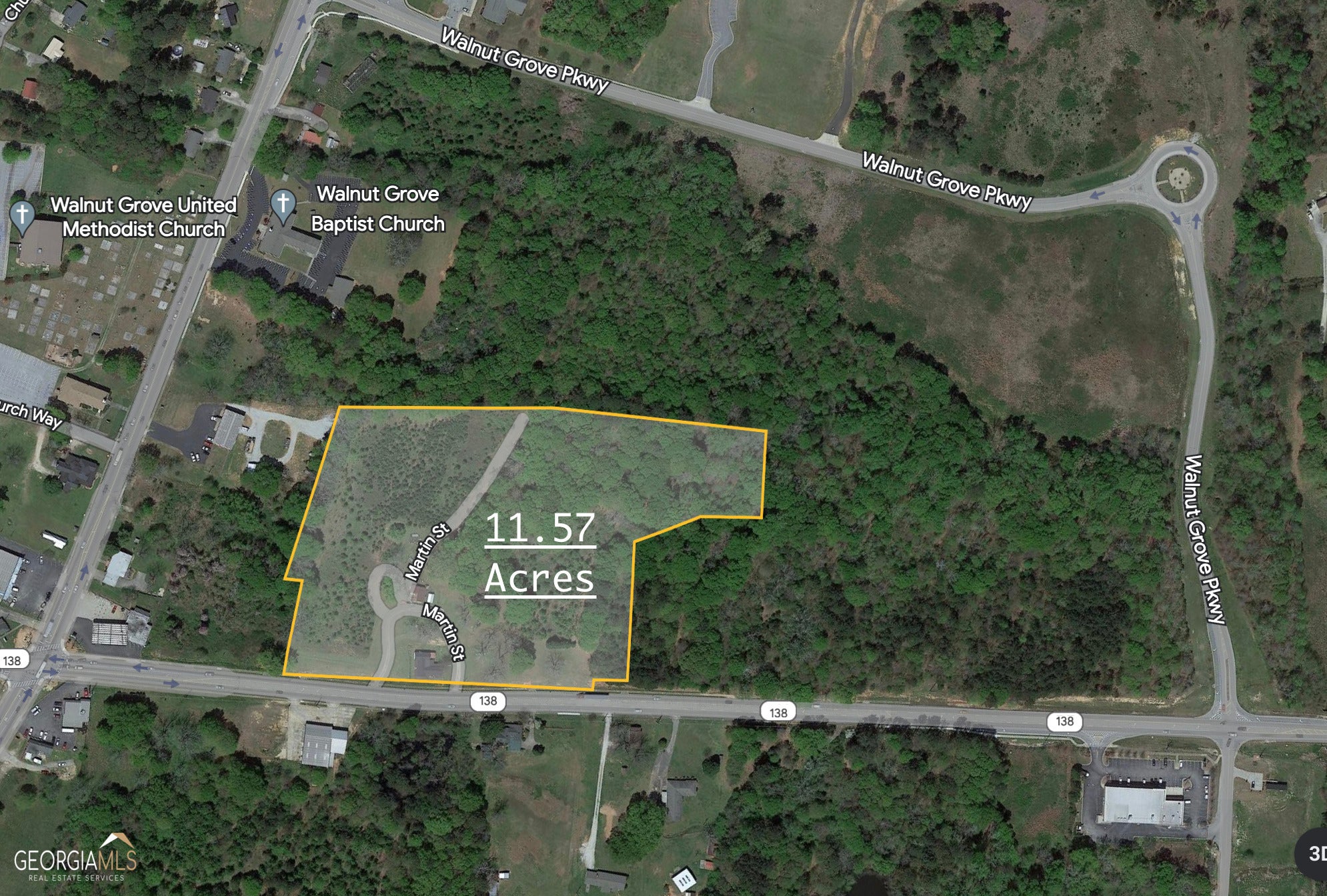 11.57 acre prime development property in downtown Walnut Grove. 800 feet frontage on Hwy 138. Only 500 ft to signalized intersection @ Hwy 81 & 138. Traffic count 17,500 VPD. Adjoining 13 acre property also available.