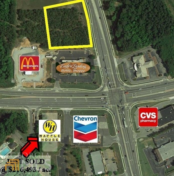 Approximately 2.250 acres zoned C2, at the corner of Eagles Landing Pkwy & front on Hwy 42. Lot sits beside Eagle's Landing Bottle Shop with the new McDonald's located behind site. Property is zoned Commercial with multiple uses allowed. Property has approx 350 feet along Highway 42 and access to Eagle's Landing Parkway via adjacent property. State has allowed curb cut to property for direct access. Per county maps, this property is 100% usable, sewer & water are available. Seller will entertain offers to divide the property.