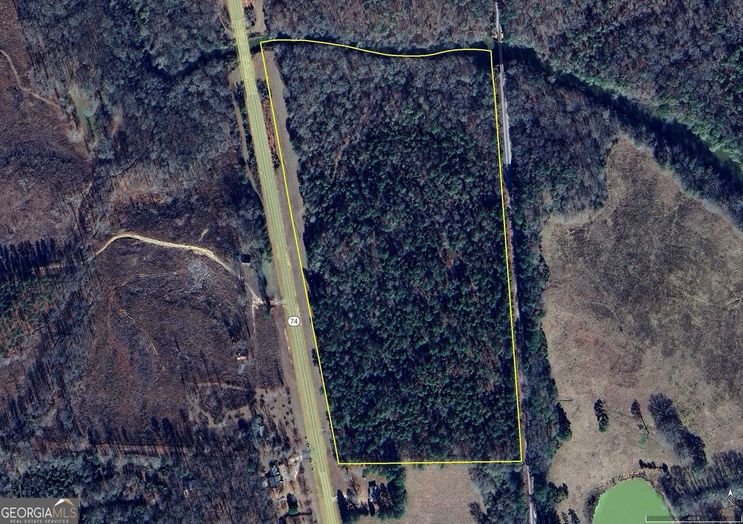 This exceptional 35.75 acre tract features approximately 1,800 feet of frontage along Highway 85, offering excellent visibility and access. The northern boundary of the property is defined by the scenic Red Oak Creek, which flows from the Highway 85 bridge for roughly 1,000 feet to a distinctive historic train trestle. Whether you're looking for a recreational retreat, a hunting property, or the perfect site to build your dream home, this versatile parcel offers endless potential. The land is currently enrolled in the Conservation Use Value Assessment (CUVA) program, providing potential tax savings for the new owner.