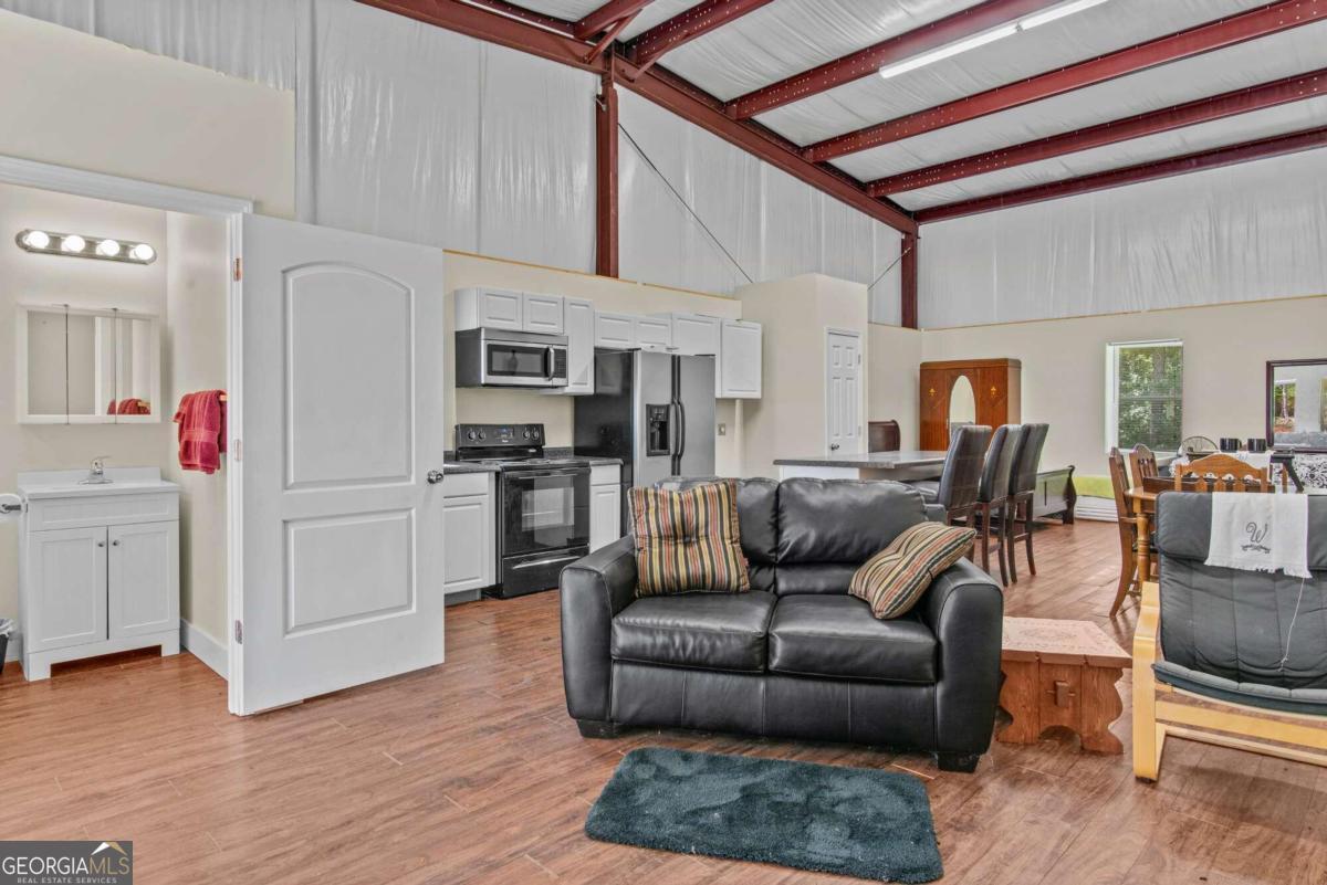 LOCATED DIRECTLY ACROSS THE STREET FROM LAKE SINCLAIR. RARE OPPORTUNITY TO PURCHASE 2.5 ACRES INCLUDING 40X60 SHOP/GARAGE WITH ADJACENT APARTMENT! Abundance of storage and workspace - meets multiple needs. Apartment is wide open space with open bedroom, kitchenette and full bath. Apartment has mini split for heat and air. No HOA. No rental restrictions. SELLER WILLING TO NEGOTIATE IF BUYER WANTS TO PURCHASE THIS PROPERTY WITH LAKE HOUSE ACROSS STREET AT 254 BIG OCONEE RIVER ROAD. Furnishings negotiable.