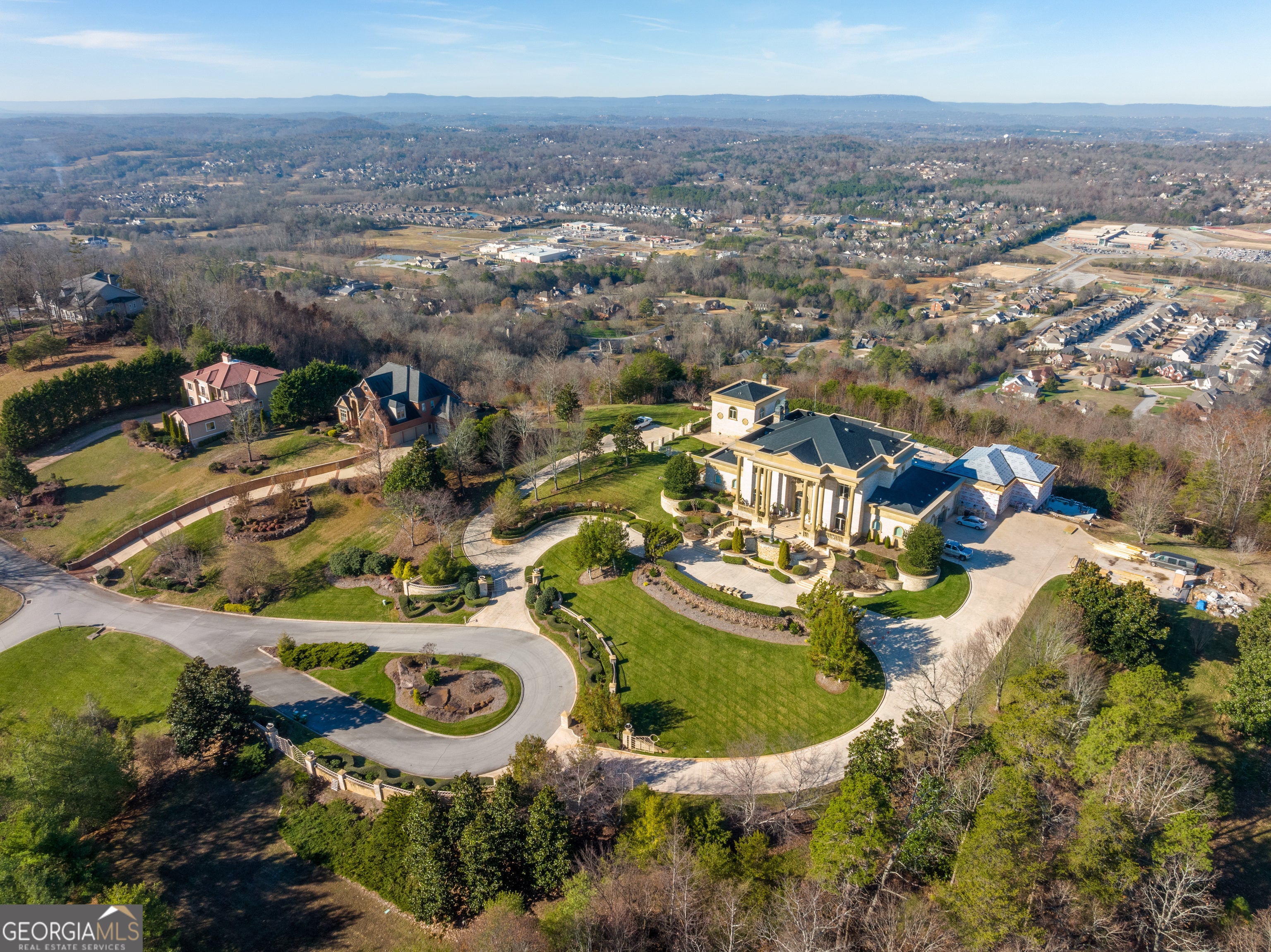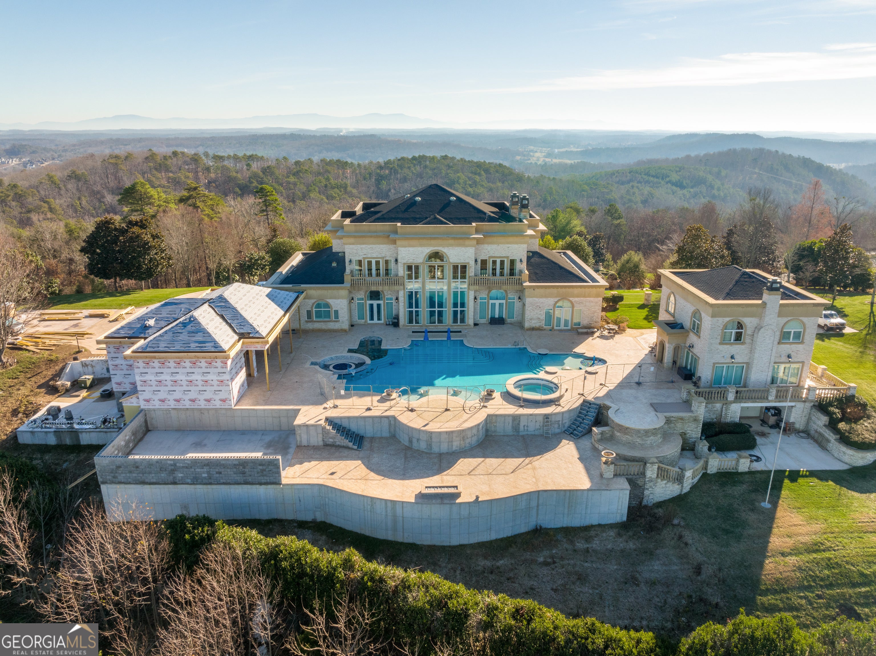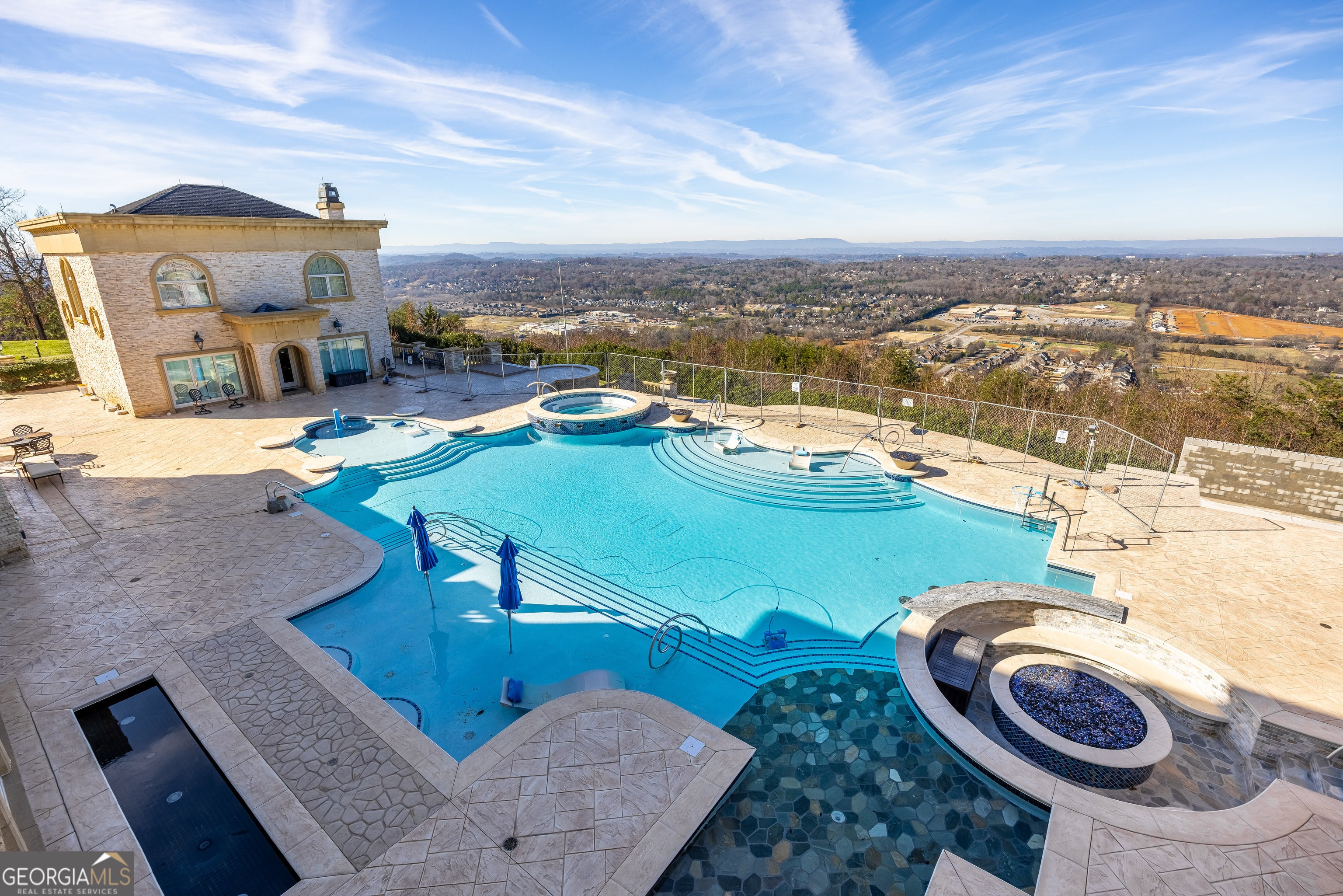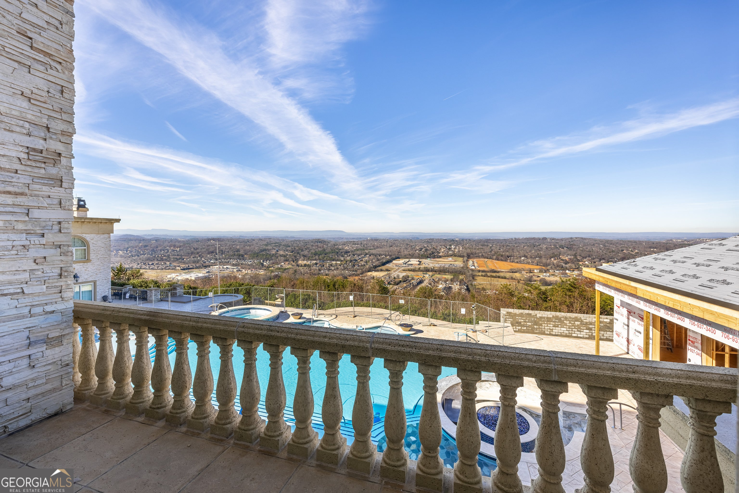 ''The Windy Hill Estate''. Prime Ooltewah, TN location. Gated privacy. Breathtaking views. ''Heavenly Views'' A rare find to say the least. Endless southeastern views of ''The Horizons,'' and/or southwestern views Lookout Mountain and city lights. Eleven acres at the top of White Oak Mountain, at the end of a cul-de-sac street. This luxurious estate features elegance and comfort (built like a fortress). Quality custom built featuring the finest craftmanship of stone throughout the estate (inside and outside). Main house consists of 8800 Sq Ft. 5 bedrooms, 5.5 baths. Luxurious master suite and luxurious master bath with his and hers walk in closets all on the main level. Soaring high ceilings throughout. Beautiful and/or elegant marble staircase thereby showcasing a grand chandelier. Elegant 2 story foyer. Elevator. Open floor plan features a piano bar that includes a wet bar, dishwasher, and ice maker. Separate dining room, family room, separate sitting room (living room), custom butler's pantry which features a dishwasher, ice maker, and sink. Breakfast room that features a Scenic City view. Second level foyer overlooking the grand marble stone staircase, along with the front entry foyer and at the same capturing eastern and western view. 5th bedroom is currently customized as an office with custom built-in cabinetry. All bedrooms feature full bathrooms. Custom, gourmet kitchen includes a Thermador gas cook top with warming shelves, Thermador double (wall) ovens and side by side built-in Sub-Zero refrigerator and freezer. Island with second sink and Kitchen Aid dishwasher. Main house features side rear entry attached 3 car garage. Large laundry room with sink, custom cabinets, built-ins, and pull-outs galore. Plantation shutters throughout. Custom trey ceilings throughout. House consist of Pella Windows and Doors. Lush landscaping with water fountains, flower beds, and retaining walls. The overall layout and/or presentation is simply elegant. The separate guest More...house consists of 2400 Sq Ft, 2 bedrooms, 2.5 baths, which includes panoramic views. The grand design outdoor entertainment area has too many features to mention in doing the subject justice. Multi-level pool side features are nothing less than spectacular. The grandeur display of quality and custom marble features is breathtaking. The pool and pool house features are all new and/or under construction and near completion. Pool side entertainment features are incredible: Unite (with pebble tech) heated pool and hot tub. Pool features zero entry and tanning deck 1 & 2. Two badu jets. Swim up bar to fire pit with custom sunken seating. 2 accent fire bowls flanking the pool side. Poolside basketball goal. Custom Mushroom foundation. Pool house/outdoor kitchen equipped with state-of-the-art appliances, allowing you to entertain guests with gourmet meals. All sports court includes basketball and pickle ball courts overlooking the western brow with scenic city view. The pool house features a theater room, a wine cellar room, and a full bathroom along with a gourmet kitchen and grilling with open air full retracting sliding doors to the pool, thereby capturing the scenic city, brow front views. Perfect for hosting poolside parties and enjoying a vibrant outdoor atmosphere. Providing endless entertainment options for you and your guests within this luxurious back yard oasis. All of the water features create a soothing ambiance. LED lighting creates an enchanting nighttime pool atmosphere with fire bowls, mushroom fountains, and waterfall via an integrated hot tub along with many customized features, all overlooking breathtaking views, yet with seclusion and tranquility. A private retreat with resort inspired luxuries.