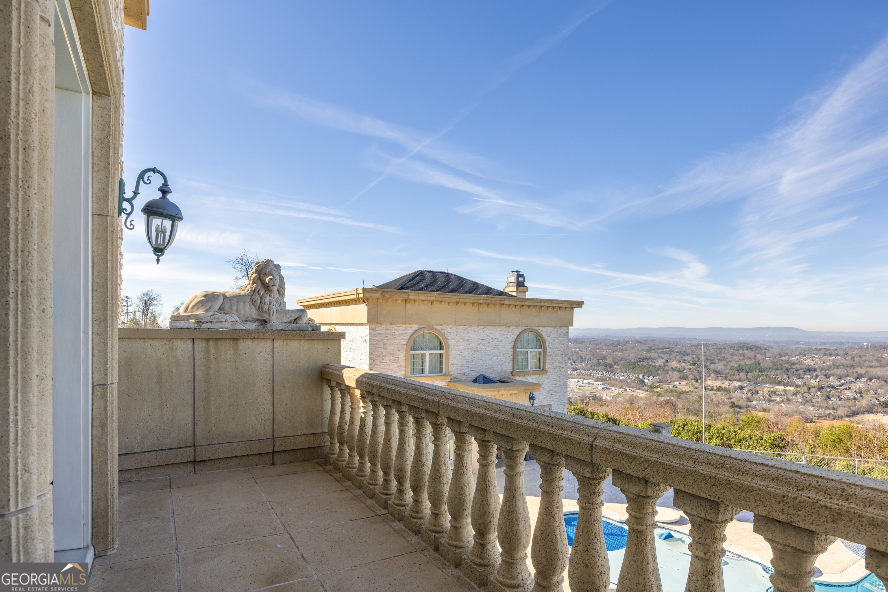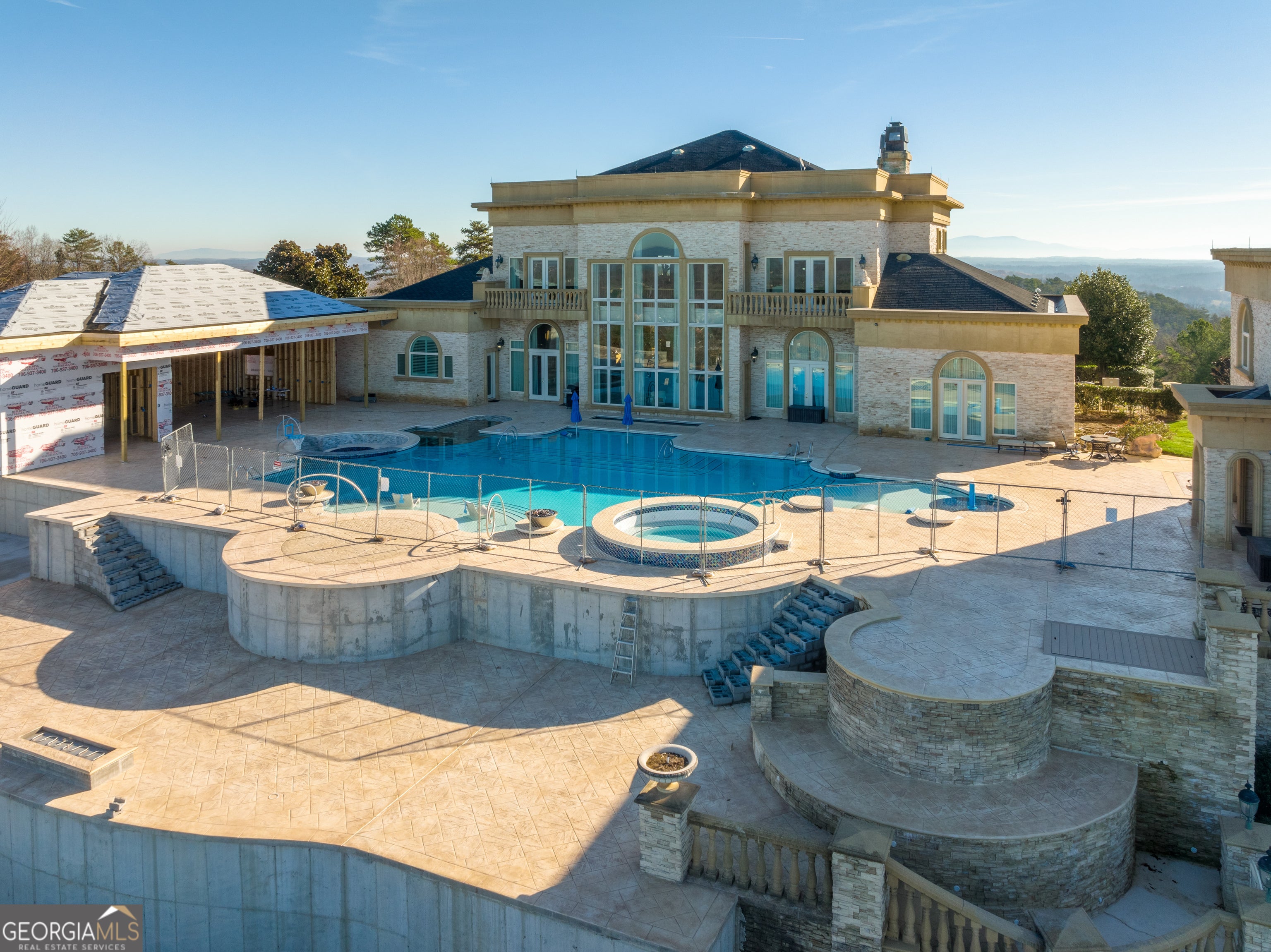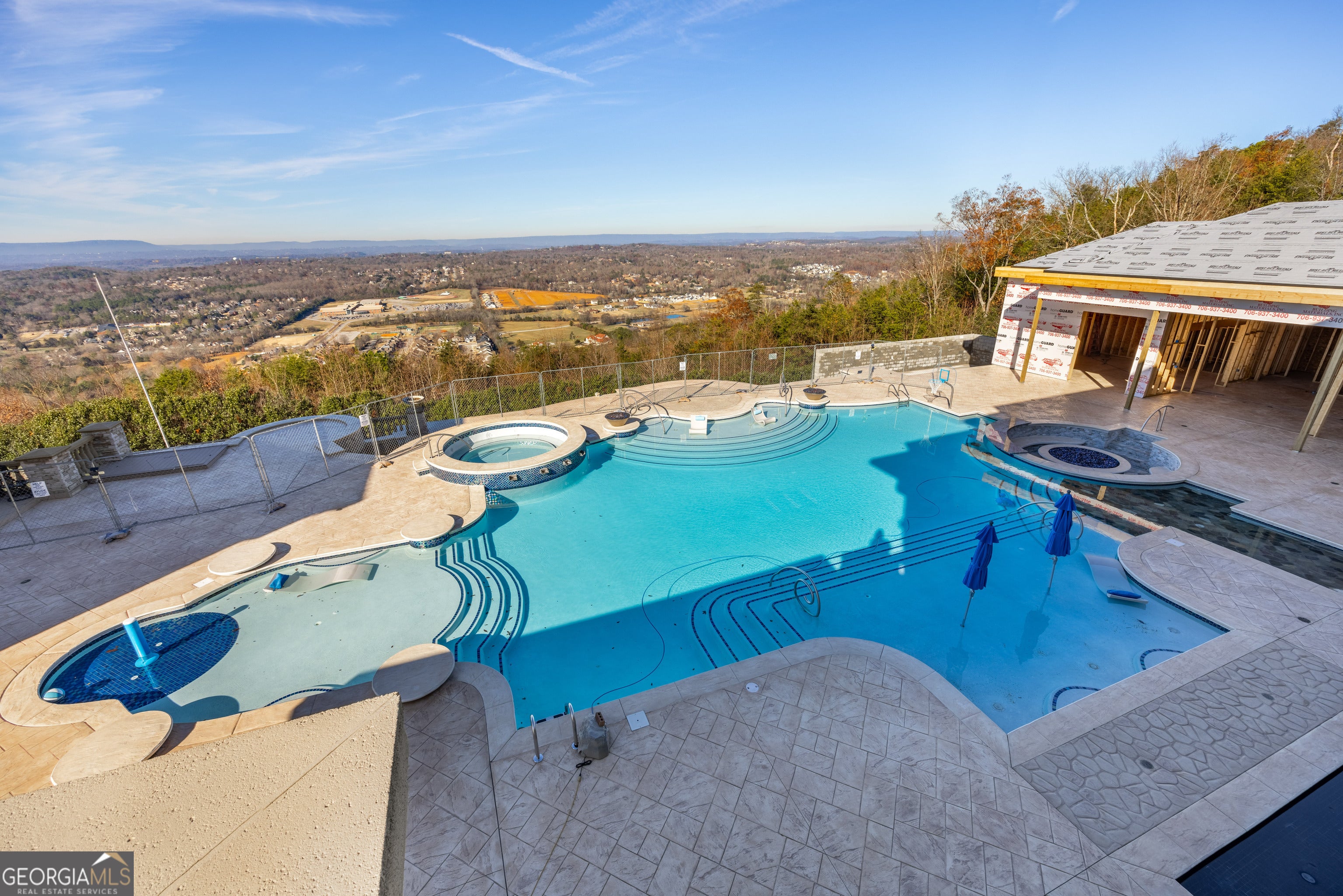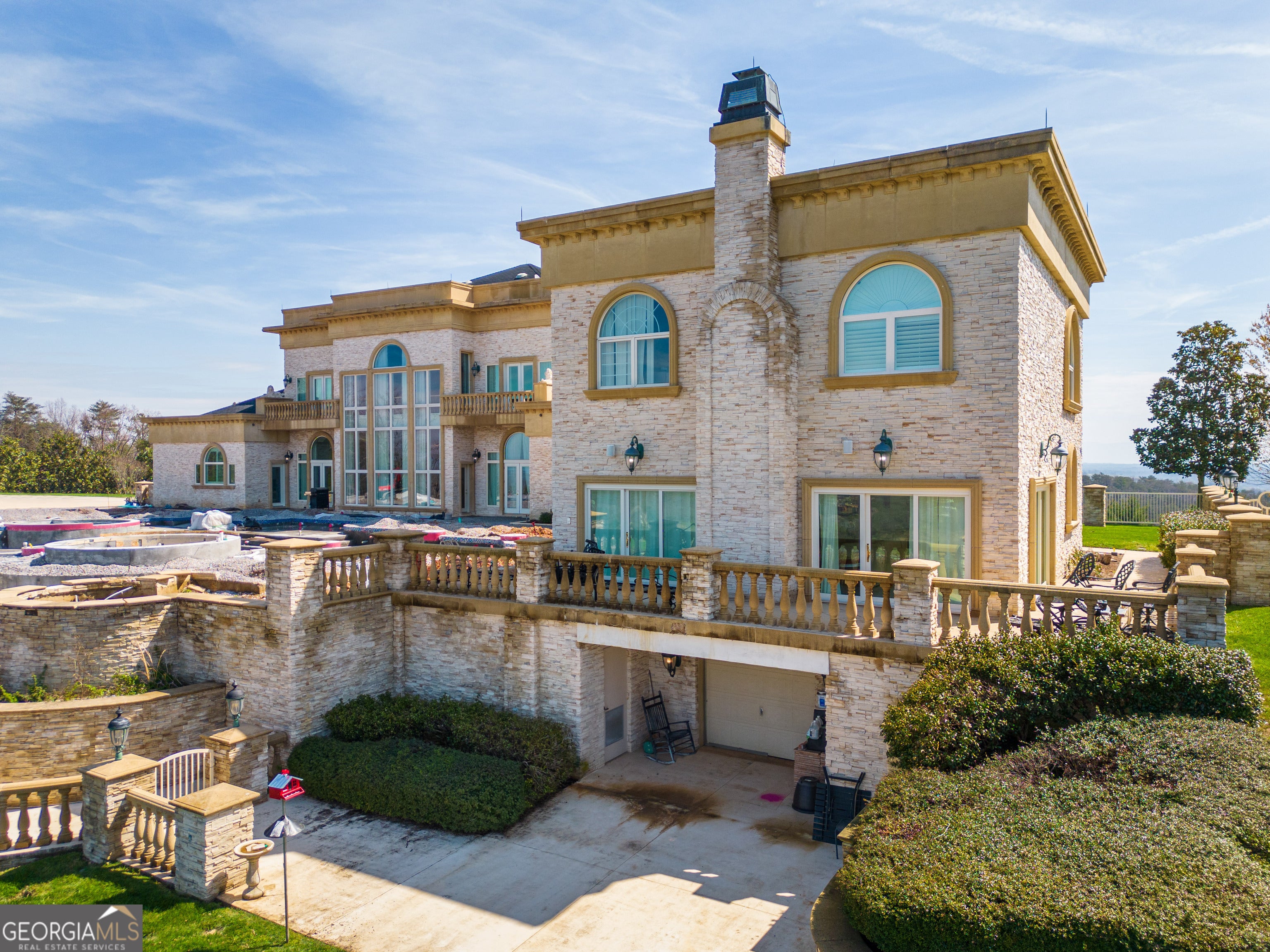 ''The Windy Hill Estate''. Prime Ooltewah, TN location. Gated privacy. Breathtaking views. ''Heavenly Views'' A rare find to say the least. Endless southeastern views of ''The Horizons,'' and/or southwestern views Lookout Mountain and city lights. Eleven acres at the top of White Oak Mountain, at the end of a cul-de-sac street. This luxurious estate features elegance and comfort (built like a fortress). Quality custom built featuring the finest craftmanship of stone throughout the estate (inside and outside). Main house consists of 8800 Sq Ft. 5 bedrooms, 5.5 baths. Luxurious master suite and luxurious master bath with his and hers walk in closets all on the main level. Soaring high ceilings throughout. Beautiful and/or elegant marble staircase thereby showcasing a grand chandelier. Elegant 2 story foyer. Elevator. Open floor plan features a piano bar that includes a wet bar, dishwasher, and ice maker. Separate dining room, family room, separate sitting room (living room), custom butler's pantry which features a dishwasher, ice maker, and sink. Breakfast room that features a Scenic City view. Second level foyer overlooking the grand marble stone staircase, along with the front entry foyer and at the same capturing eastern and western view. 5th bedroom is currently customized as an office with custom built-in cabinetry. All bedrooms feature full bathrooms. Custom, gourmet kitchen includes a Thermador gas cook top with warming shelves, Thermador double (wall) ovens and side by side built-in Sub-Zero refrigerator and freezer. Island with second sink and Kitchen Aid dishwasher. Main house features side rear entry attached 3 car garage. Large laundry room with sink, custom cabinets, built-ins, and pull-outs galore. Plantation shutters throughout. Custom trey ceilings throughout. House consist of Pella Windows and Doors. Lush landscaping with water fountains, flower beds, and retaining walls. The overall layout and/or presentation is simply elegant. The separate guest More...house consists of 2400 Sq Ft, 2 bedrooms, 2.5 baths, which includes panoramic views. The grand design outdoor entertainment area has too many features to mention in doing the subject justice. Multi-level pool side features are nothing less than spectacular. The grandeur display of quality and custom marble features is breathtaking. The pool and pool house features are all new and/or under construction and near completion. Pool side entertainment features are incredible: Unite (with pebble tech) heated pool and hot tub. Pool features zero entry and tanning deck 1 & 2. Two badu jets. Swim up bar to fire pit with custom sunken seating. 2 accent fire bowls flanking the pool side. Poolside basketball goal. Custom Mushroom foundation. Pool house/outdoor kitchen equipped with state-of-the-art appliances, allowing you to entertain guests with gourmet meals. All sports court includes basketball and pickle ball courts overlooking the western brow with scenic city view. The pool house features a theater room, a wine cellar room, and a full bathroom along with a gourmet kitchen and grilling with open air full retracting sliding doors to the pool, thereby capturing the scenic city, brow front views. Perfect for hosting poolside parties and enjoying a vibrant outdoor atmosphere. Providing endless entertainment options for you and your guests within this luxurious back yard oasis. All of the water features create a soothing ambiance. LED lighting creates an enchanting nighttime pool atmosphere with fire bowls, mushroom fountains, and waterfall via an integrated hot tub along with many customized features, all overlooking breathtaking views, yet with seclusion and tranquility. A private retreat with resort inspired luxuries.