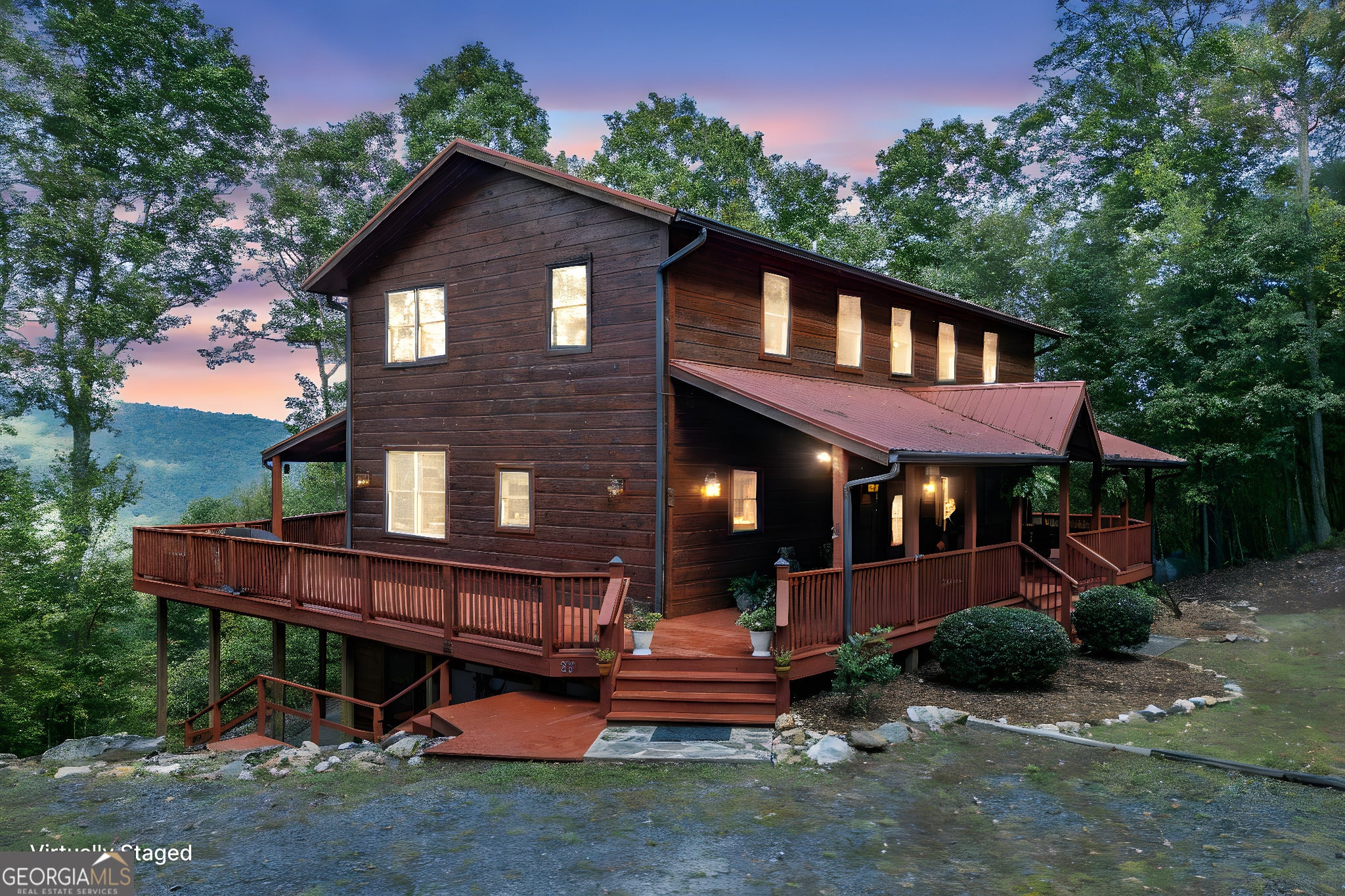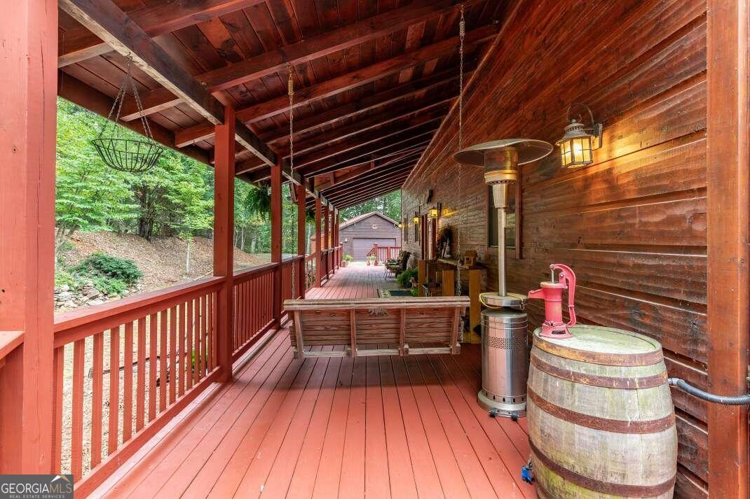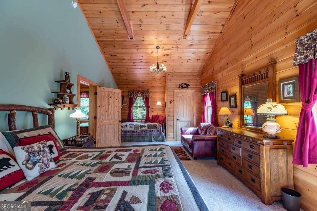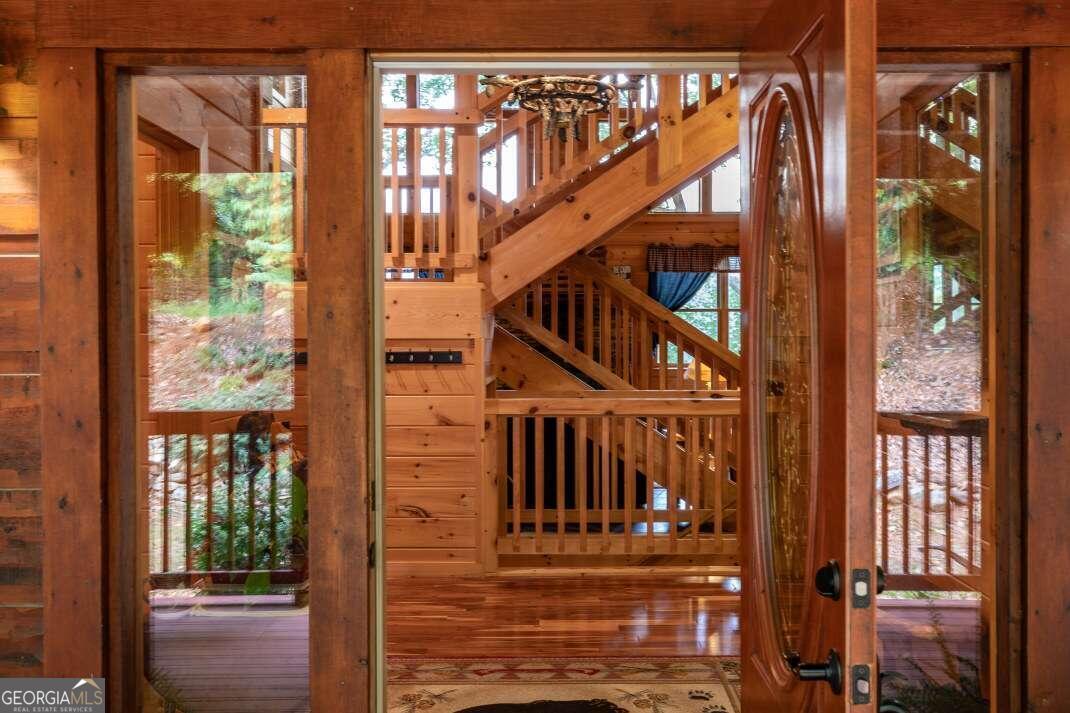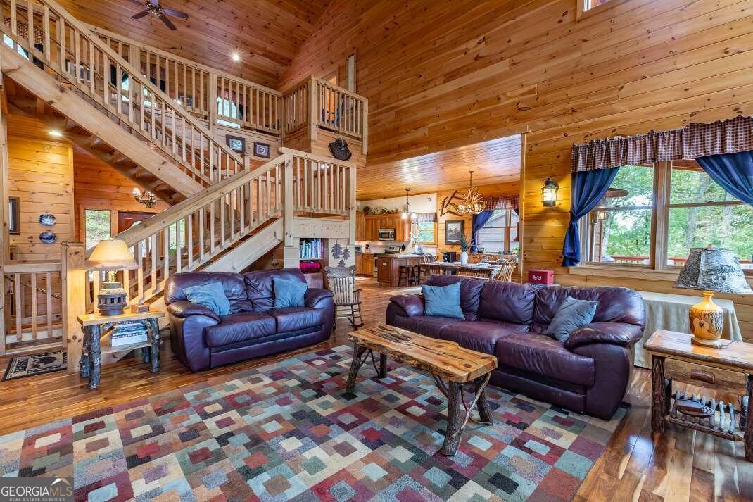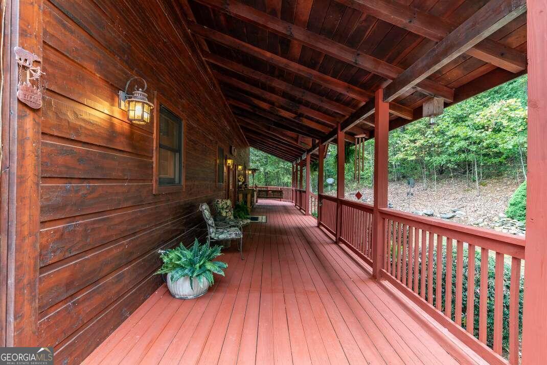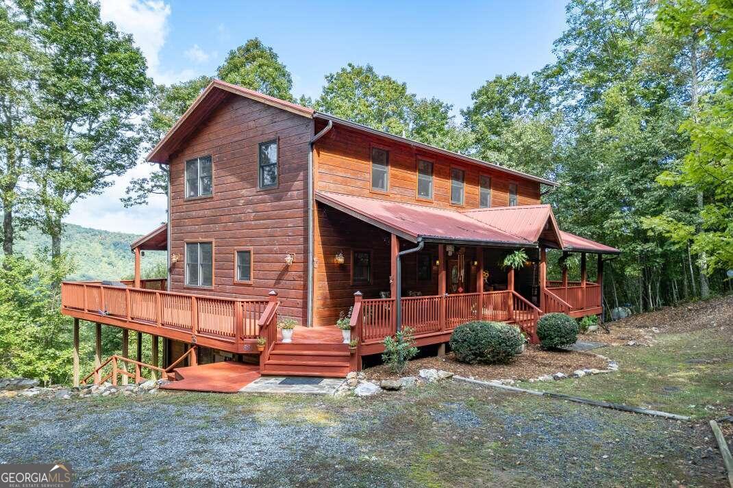 Experience the grandeur of true mountain living, welcome home to Fox Mountain. Perfectly situated on the unrestricted mountainside with breathtaking panoramic views to enjoy all year round. Immerse yourself in nature, where soothing sounds of flowing water & wandering wildlife set the stage for peace & tranquility. Living on the border of National Forestry Service sure has its perks! This stunning cabin boasts plenty of elbow room, with a spacious open-concept layout and awe-inspiring cathedral ceilings. Bathed in natural light on every floor, you'll feel connected to the outdoors throughout. Whether hosting lively game nights in the impressive lower level game room or savoring an intimate dinner, you've found the perfect space to make lasting memories. Multiple guest suites abound, ensuring plenty of space for guests to lay their head. The wraparound deck invites you to reflect upon the magnificent & magical Blue Ridge Mountains. With Big Creek frontage and 44.58 acres, there's so much to love on Fox Mountain!