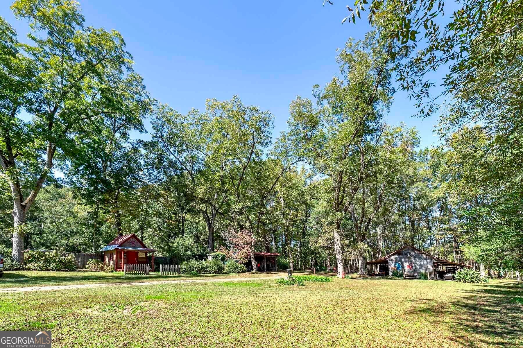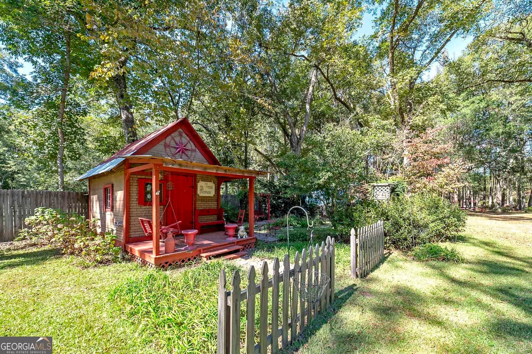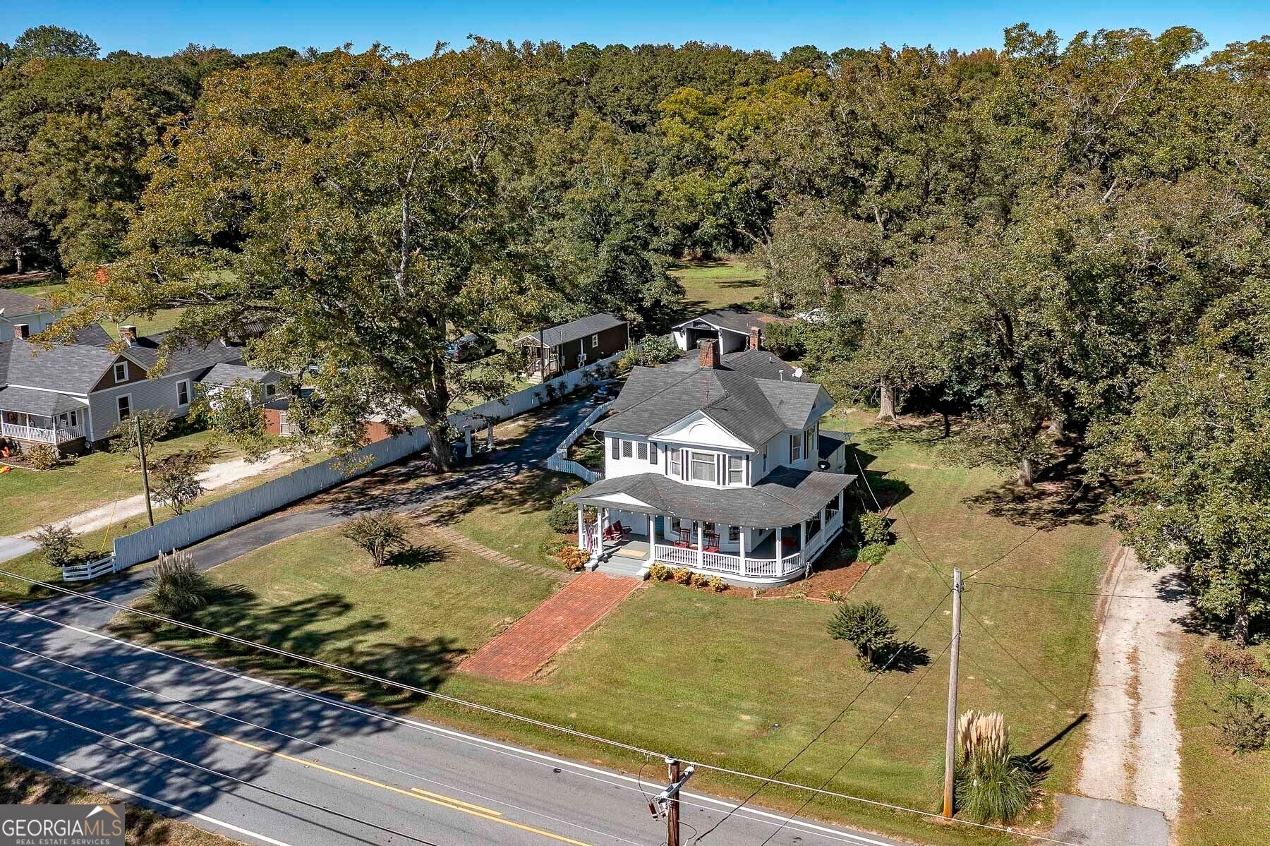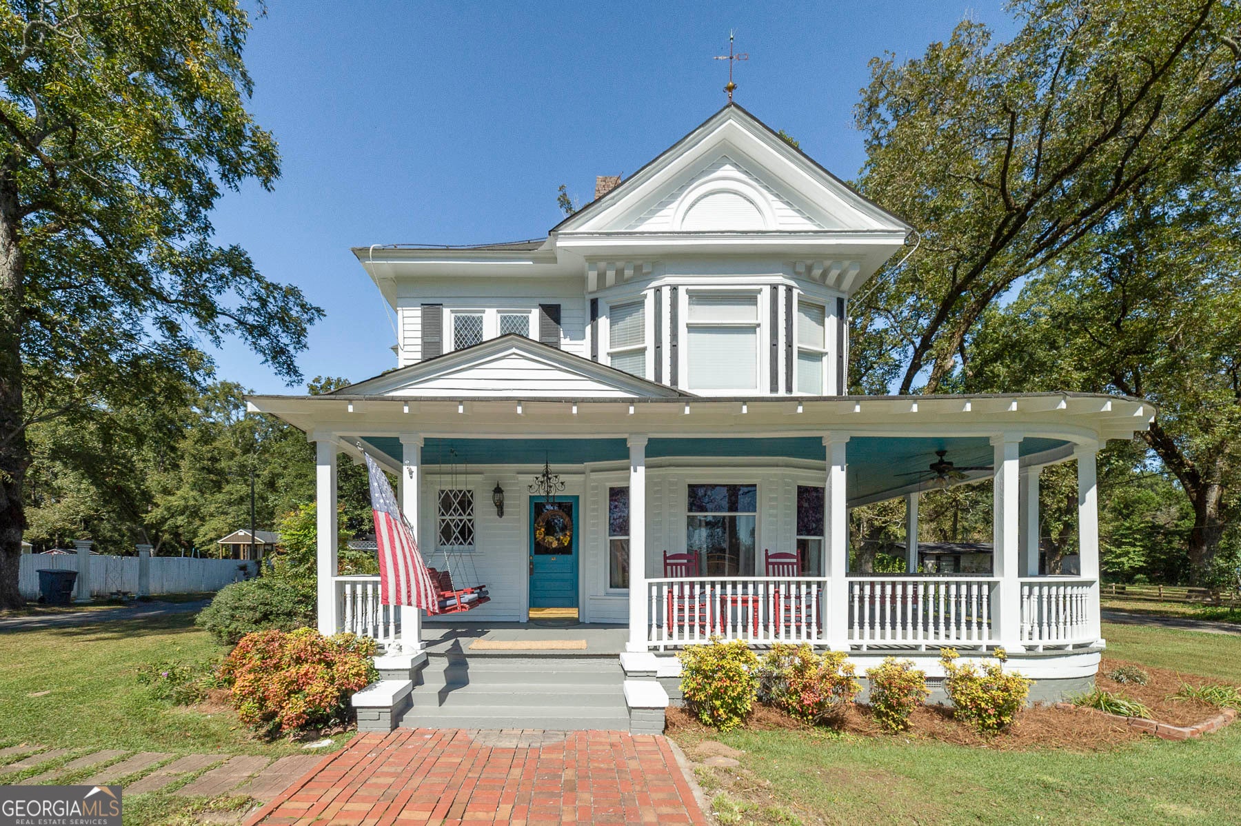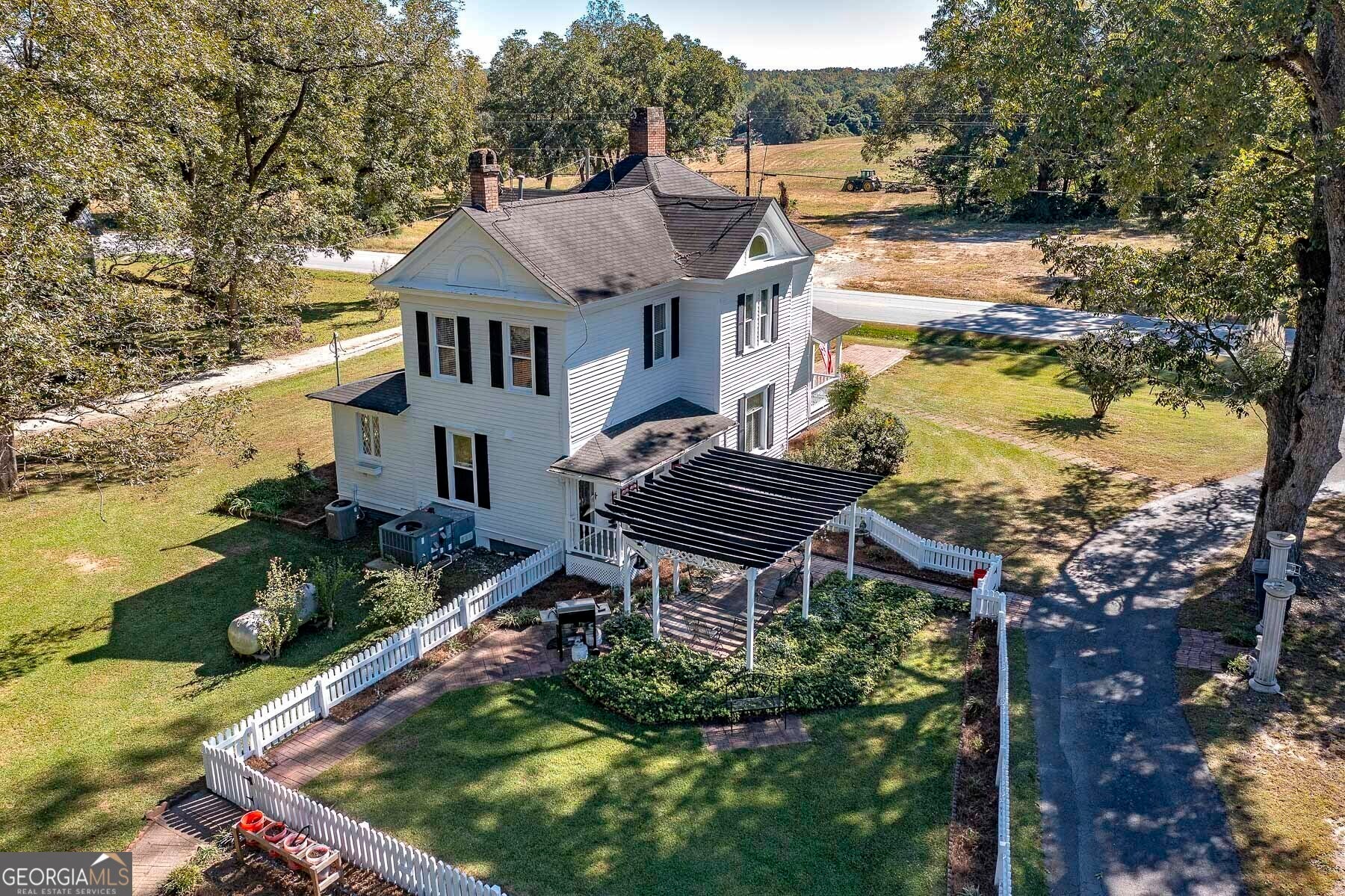 Step into a piece of history with this stunning Victorian home, built in 1900, perfectly situated within walking distance to downtown Meansville, Georgia. This classic two-story gem, complete with a white picket fence, features a large front half wraparound porch that invites you to unwind and enjoy the picturesque surroundings. The charm doesn't stop there - the 5.285 acre property features mature pecan and fig trees, 100's of bulbs and azaleas, flowering trees and bushes that provide outdoor living areas with gorgeous colors all year around. So much on this unique property - a detached two-car carport, an original restored barn, which provides ample storage and work space with 100 amp power, an original main store building from downtown Meansville, now used as a storage outbuilding, a 4-bay pole barn, the 1.5 acre wet-weather spring fed pond brimming with bass, bluegill, and redbreast gill, a unique butterfly garden, hand-built gazebo overlooking the pond, a private, drilled well and city water. You will fall in love with the wood cabin/guesthouse with indoor plumbing, beautiful heart of pine hardwood floors, and a wood burning stove where guests can stay, or you can sneak away for a staycation on your very own property! Inside the main house you'll be captivated by the authentic elegance that has been meticulously restored to reflect the turn-of-the-century style. Beautiful oak and heart of pine hardwood floors run throughout the home, complementing the intricate details that honor its historic past. The updated kitchen seamlessly blends modern conveniences with vintage flair, ideal for both everyday living and entertaining. Each room features original fireplaces, with gas burning logs or decorative, adding to the home's historical ambiance. The large dining room is perfect for hosting family gatherings, exuding warmth and charm. Throughout, authentic features carry the classic 1900 theme, from period appropriate light fixtures and glass doorknobs to intricately designed moldings, sinks, claw-foot bathtub and more. This Victorian beauty is not just a home: it's a lifestyle, offering a rare blend of historic charm and modern comfort. Don't miss your chance to make your own memories in this elegant piece of history in the heart of Meansville.