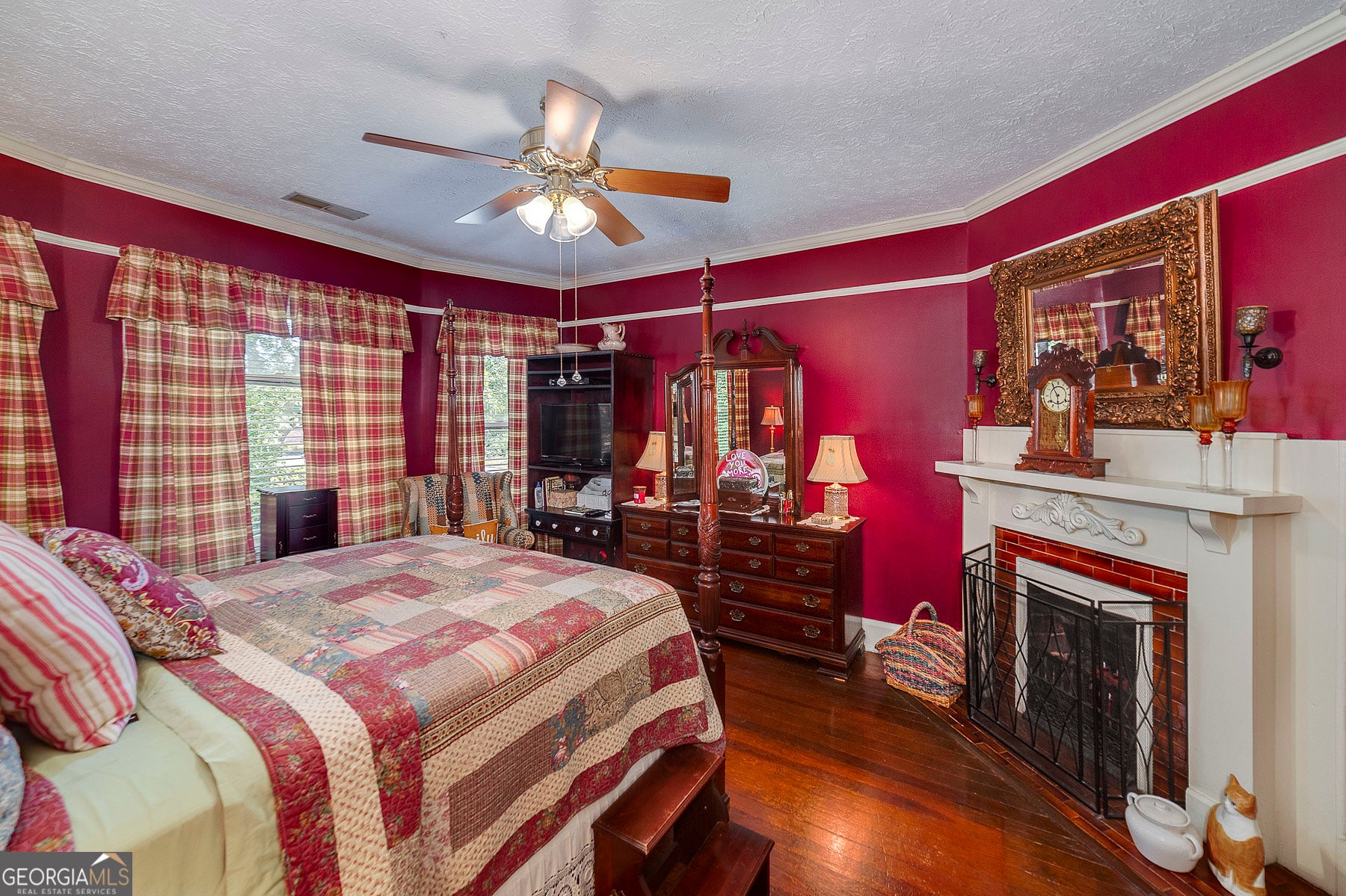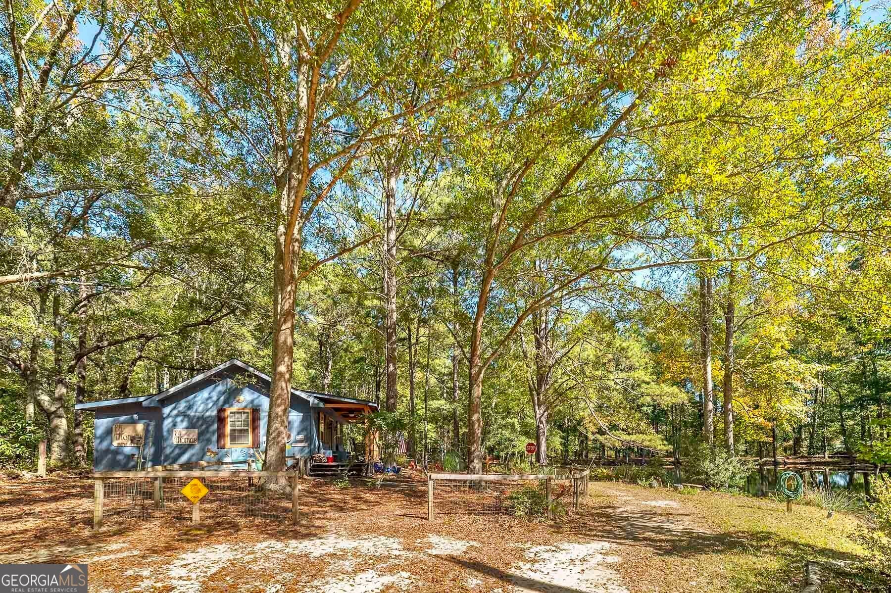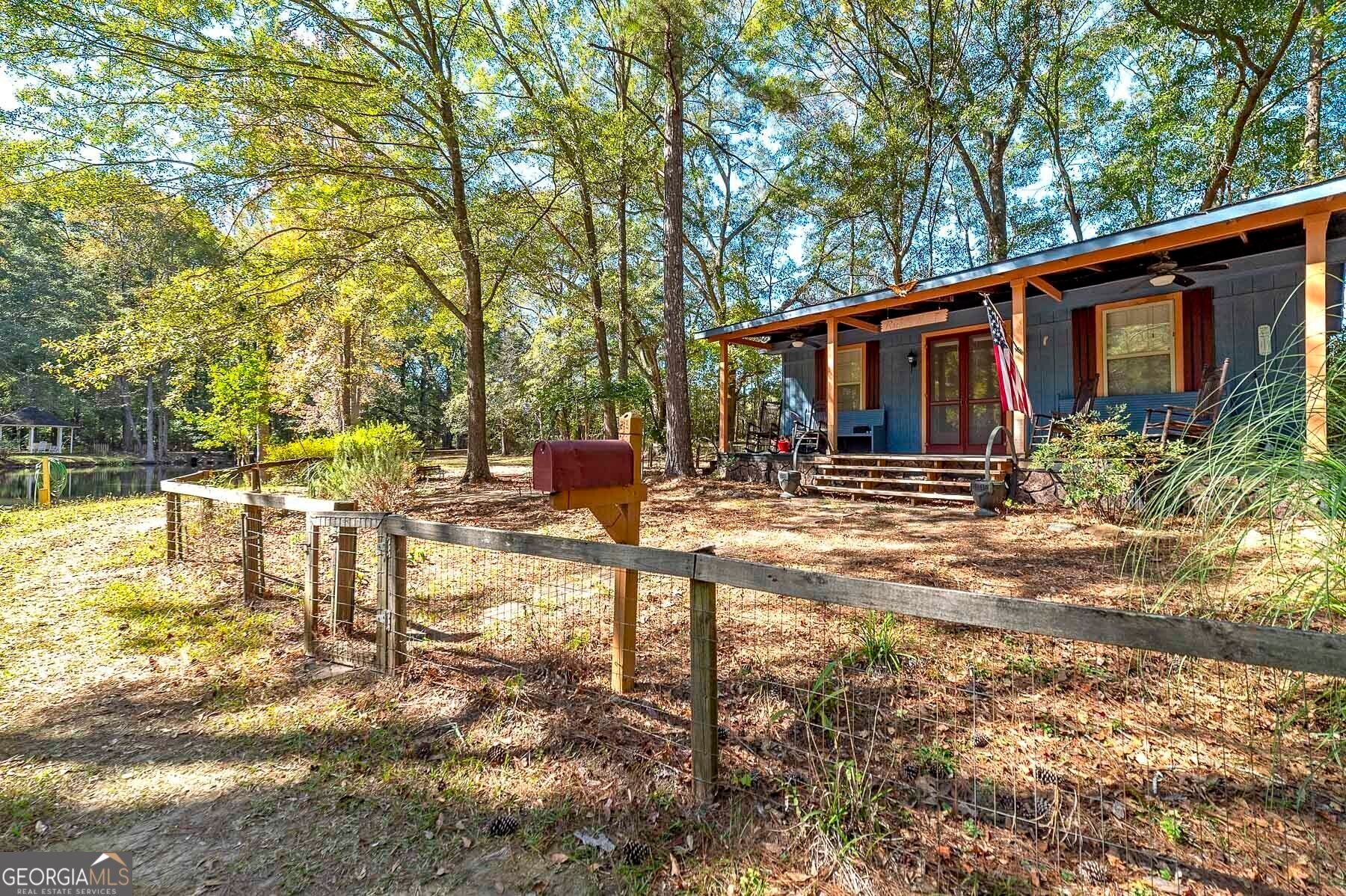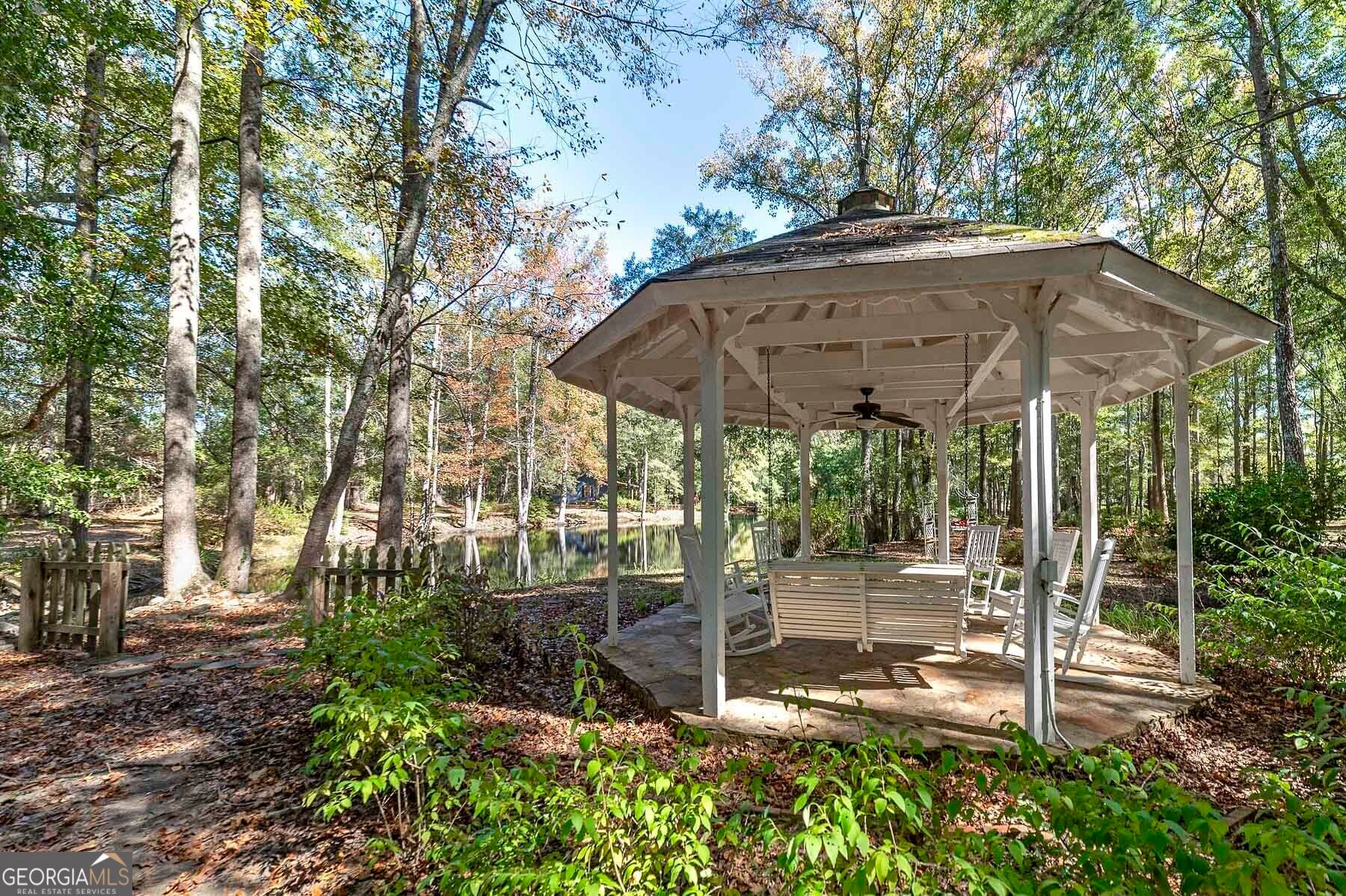Step into a piece of history with this stunning Victorian home, built in 1900, perfectly situated within walking distance to downtown Meansville, Georgia. This classic two-story gem, complete with a white picket fence, features a large front half wraparound porch that invites you to unwind and enjoy the picturesque surroundings. The charm doesn't stop there - the 5.285 acre property features mature pecan and fig trees, 100's of bulbs and azaleas, flowering trees and bushes that provide outdoor living areas with gorgeous colors all year around. So much on this unique property - a detached two-car carport, an original restored barn, which provides ample storage and work space with 100 amp power, an original main store building from downtown Meansville, now used as a storage outbuilding, a 4-bay pole barn, the 1.5 acre wet-weather spring fed pond brimming with bass, bluegill, and redbreast gill, a unique butterfly garden, hand-built gazebo overlooking the pond, a private, drilled well and city water. You will fall in love with the wood cabin/guesthouse with indoor plumbing, beautiful heart of pine hardwood floors, and a wood burning stove where guests can stay, or you can sneak away for a staycation on your very own property! Inside the main house you'll be captivated by the authentic elegance that has been meticulously restored to reflect the turn-of-the-century style. Beautiful oak and heart of pine hardwood floors run throughout the home, complementing the intricate details that honor its historic past. The updated kitchen seamlessly blends modern conveniences with vintage flair, ideal for both everyday living and entertaining. Each room features original fireplaces, with gas burning logs or decorative, adding to the home's historical ambiance. The large dining room is perfect for hosting family gatherings, exuding warmth and charm. Throughout, authentic features carry the classic 1900 theme, from period appropriate light fixtures and glass doorknobs to intricately designed moldings, sinks, claw-foot bathtub and more. This Victorian beauty is not just a home: it's a lifestyle, offering a rare blend of historic charm and modern comfort. Don't miss your chance to make your own memories in this elegant piece of history in the heart of Meansville.