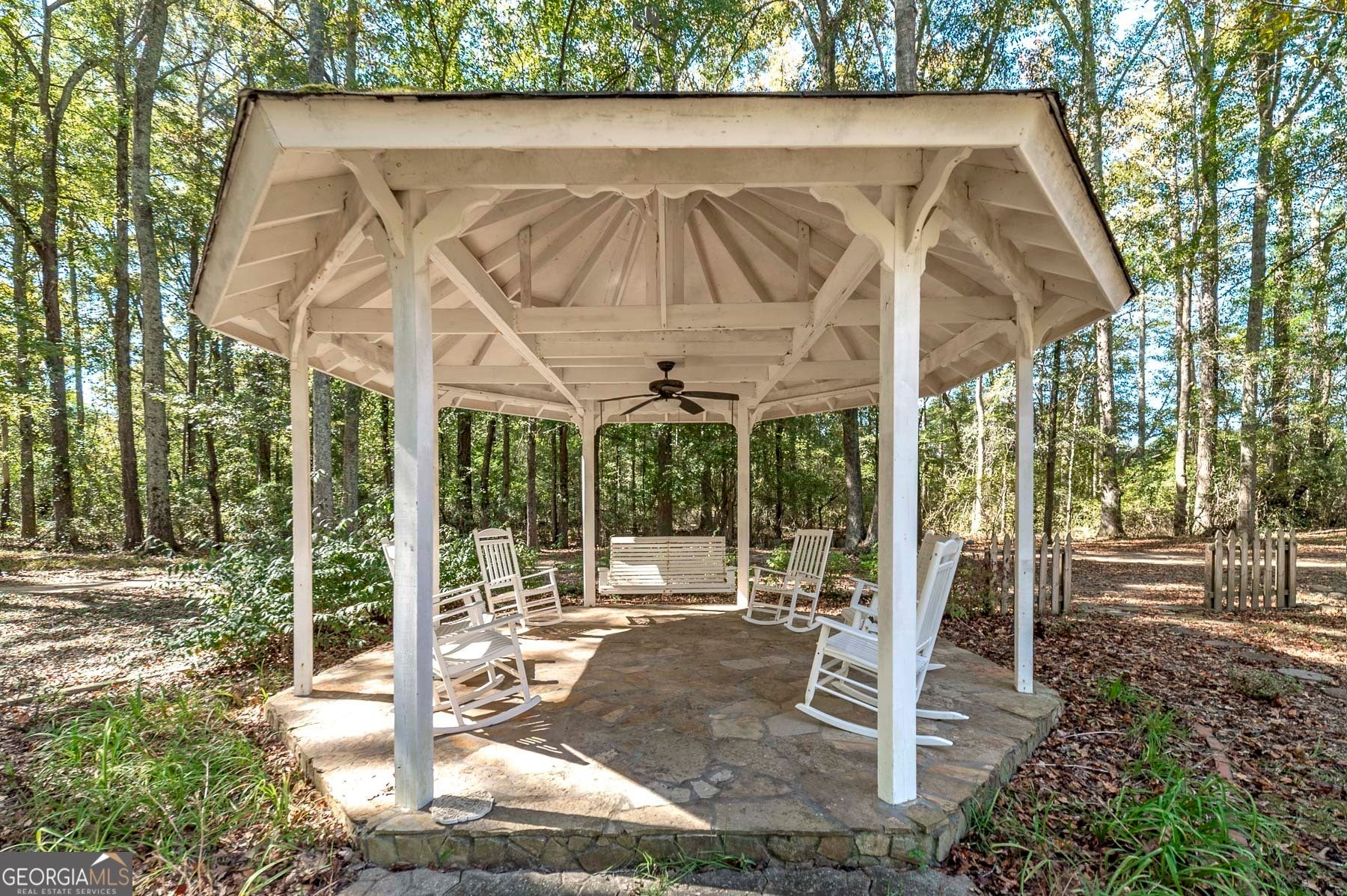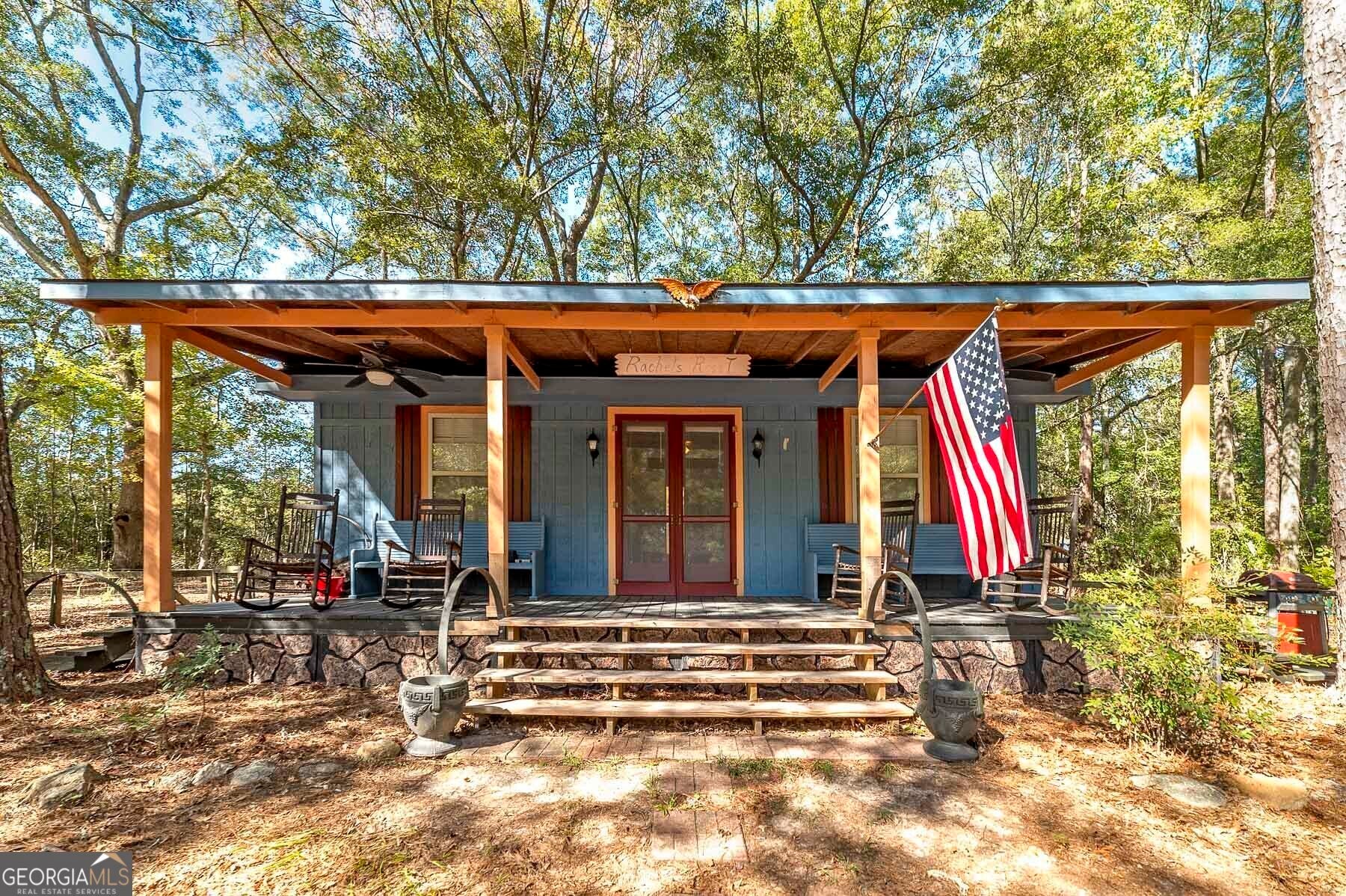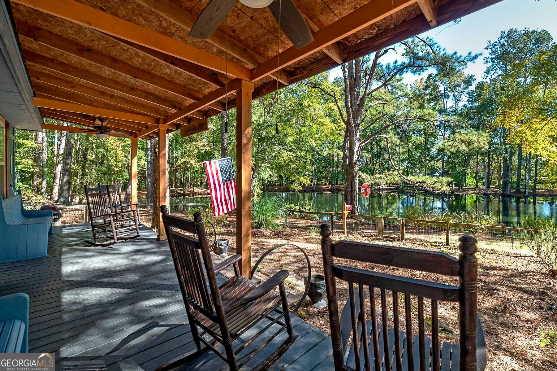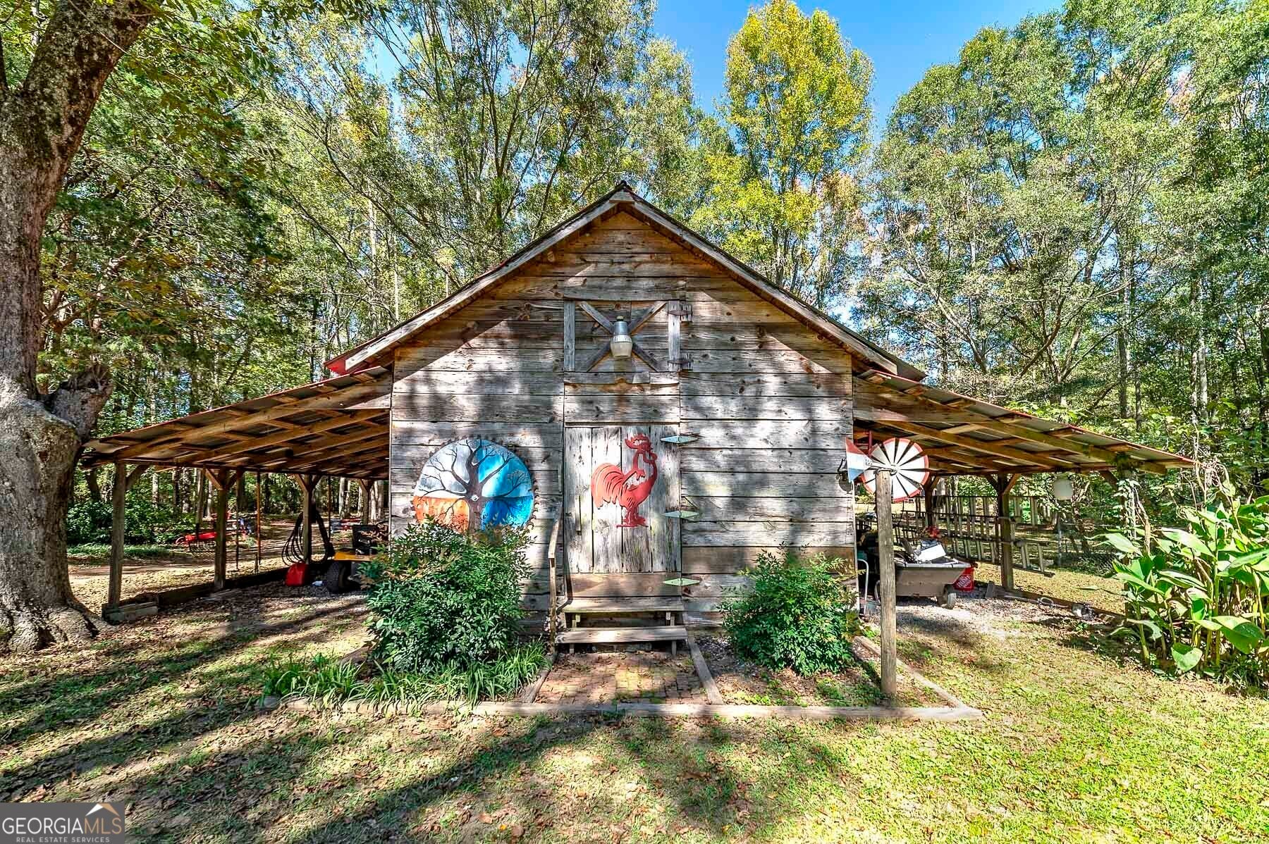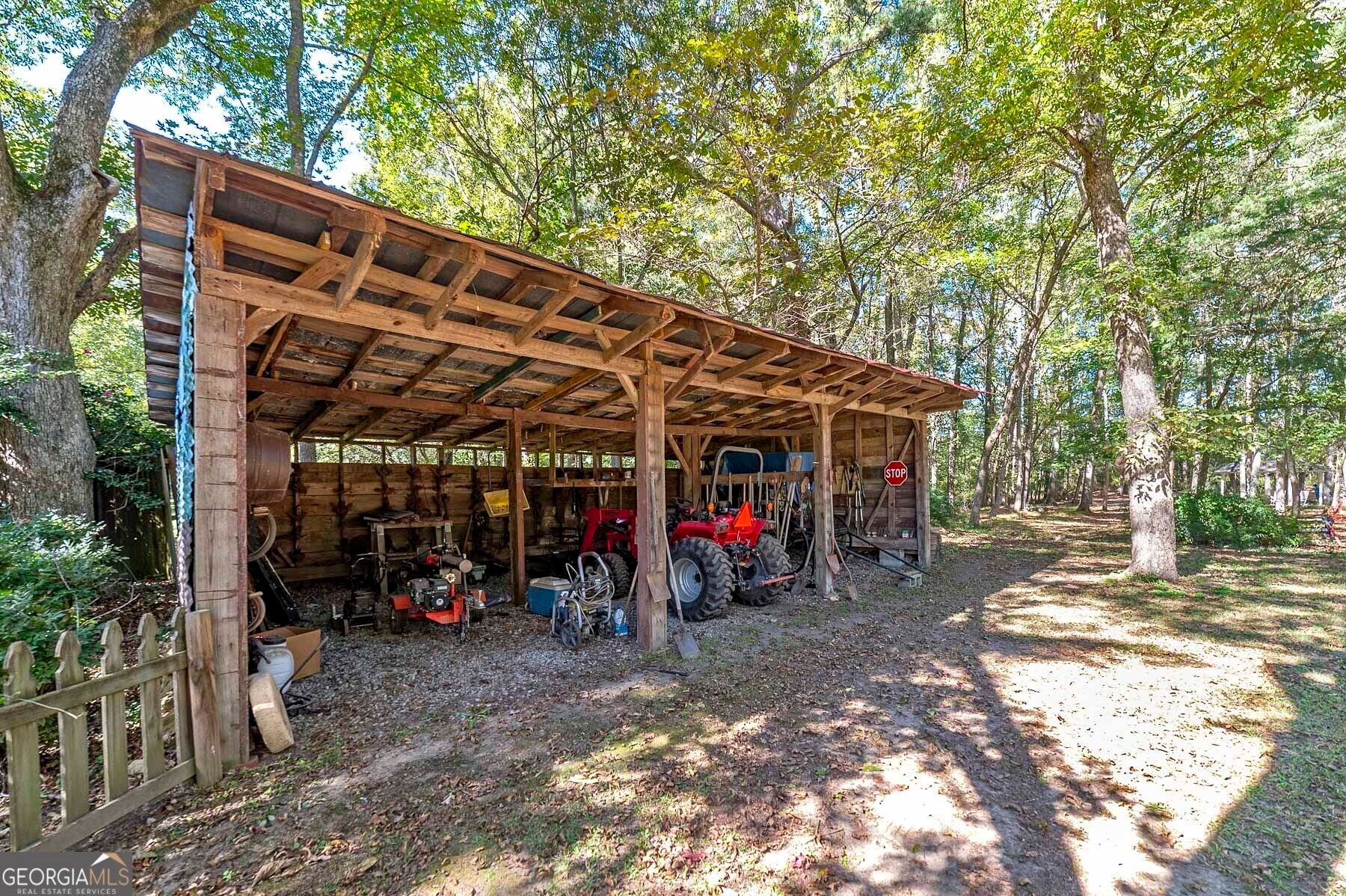 Step into a piece of history with this stunning Victorian home, built in 1900, perfectly situated within walking distance to downtown Meansville, Georgia. This classic two-story gem, complete with a white picket fence, features a large front half wraparound porch that invites you to unwind and enjoy the picturesque surroundings. The charm doesn't stop there - the 5.285 acre property features mature pecan and fig trees, 100's of bulbs and azaleas, flowering trees and bushes that provide outdoor living areas with gorgeous colors all year around. So much on this unique property - a detached two-car carport, an original restored barn, which provides ample storage and work space with 100 amp power, an original main store building from downtown Meansville, now used as a storage outbuilding, a 4-bay pole barn, the 1.5 acre wet-weather spring fed pond brimming with bass, bluegill, and redbreast gill, a unique butterfly garden, hand-built gazebo overlooking the pond, a private, drilled well and city water. You will fall in love with the wood cabin/guesthouse with indoor plumbing, beautiful heart of pine hardwood floors, and a wood burning stove where guests can stay, or you can sneak away for a staycation on your very own property! Inside the main house you'll be captivated by the authentic elegance that has been meticulously restored to reflect the turn-of-the-century style. Beautiful oak and heart of pine hardwood floors run throughout the home, complementing the intricate details that honor its historic past. The updated kitchen seamlessly blends modern conveniences with vintage flair, ideal for both everyday living and entertaining. Each room features original fireplaces, with gas burning logs or decorative, adding to the home's historical ambiance. The large dining room is perfect for hosting family gatherings, exuding warmth and charm. Throughout, authentic features carry the classic 1900 theme, from period appropriate light fixtures and glass doorknobs to intricately designed moldings, sinks, claw-foot bathtub and more. This Victorian beauty is not just a home: it's a lifestyle, offering a rare blend of historic charm and modern comfort. Don't miss your chance to make your own memories in this elegant piece of history in the heart of Meansville.