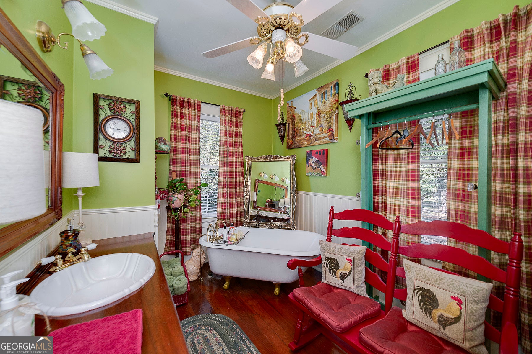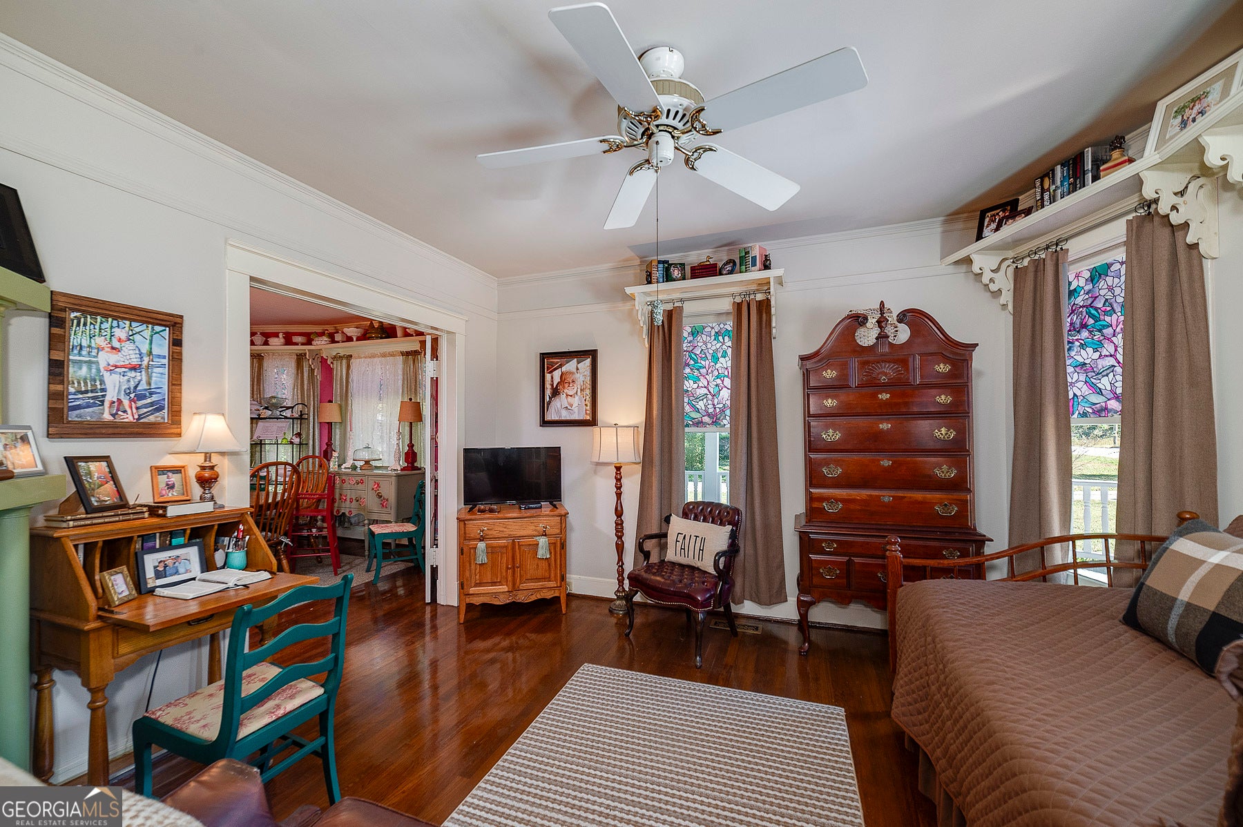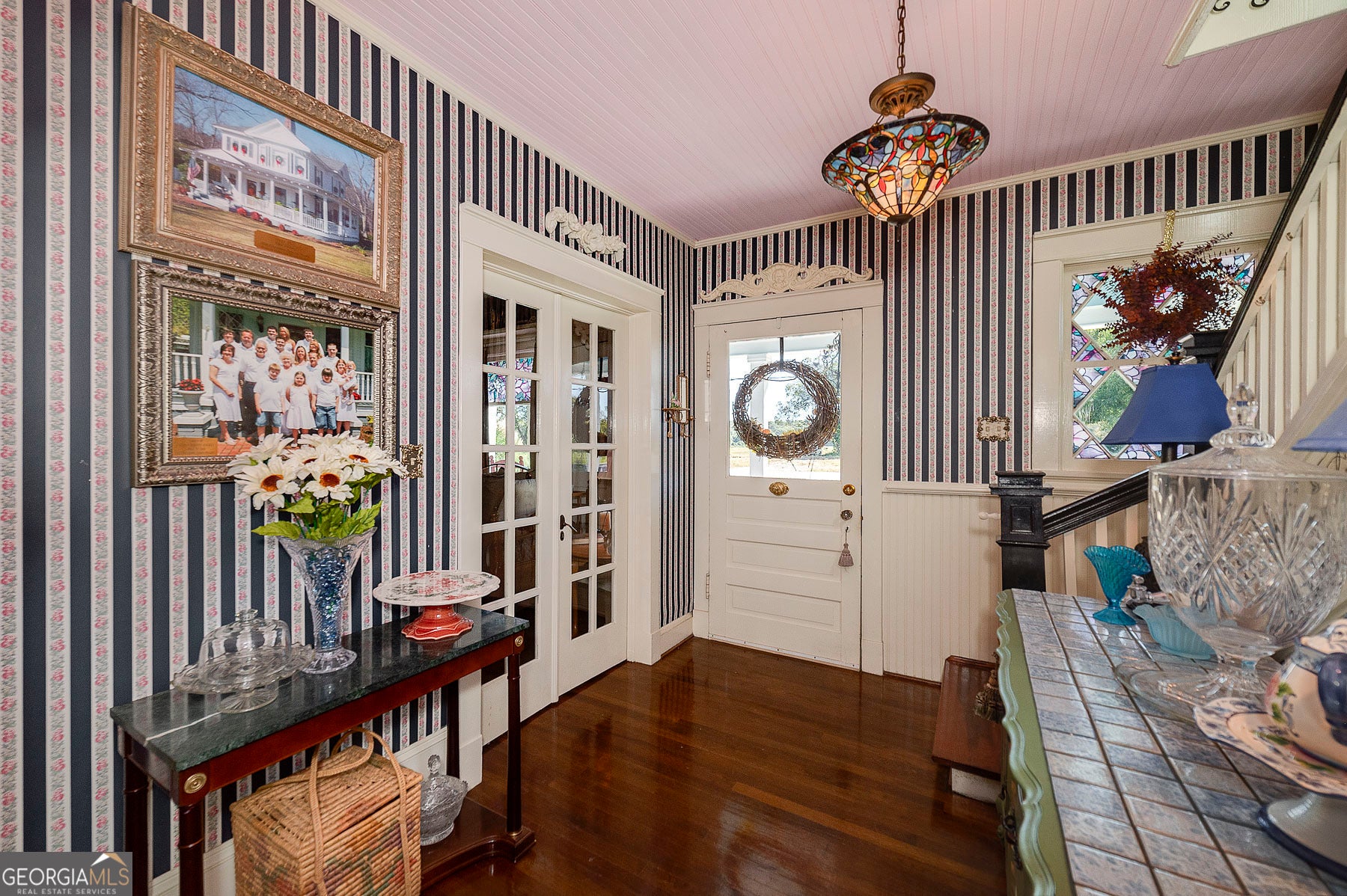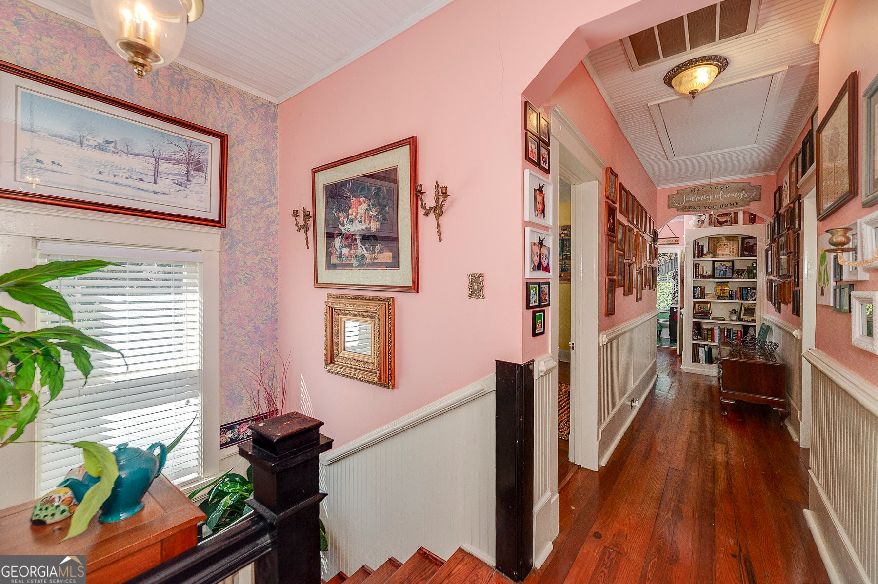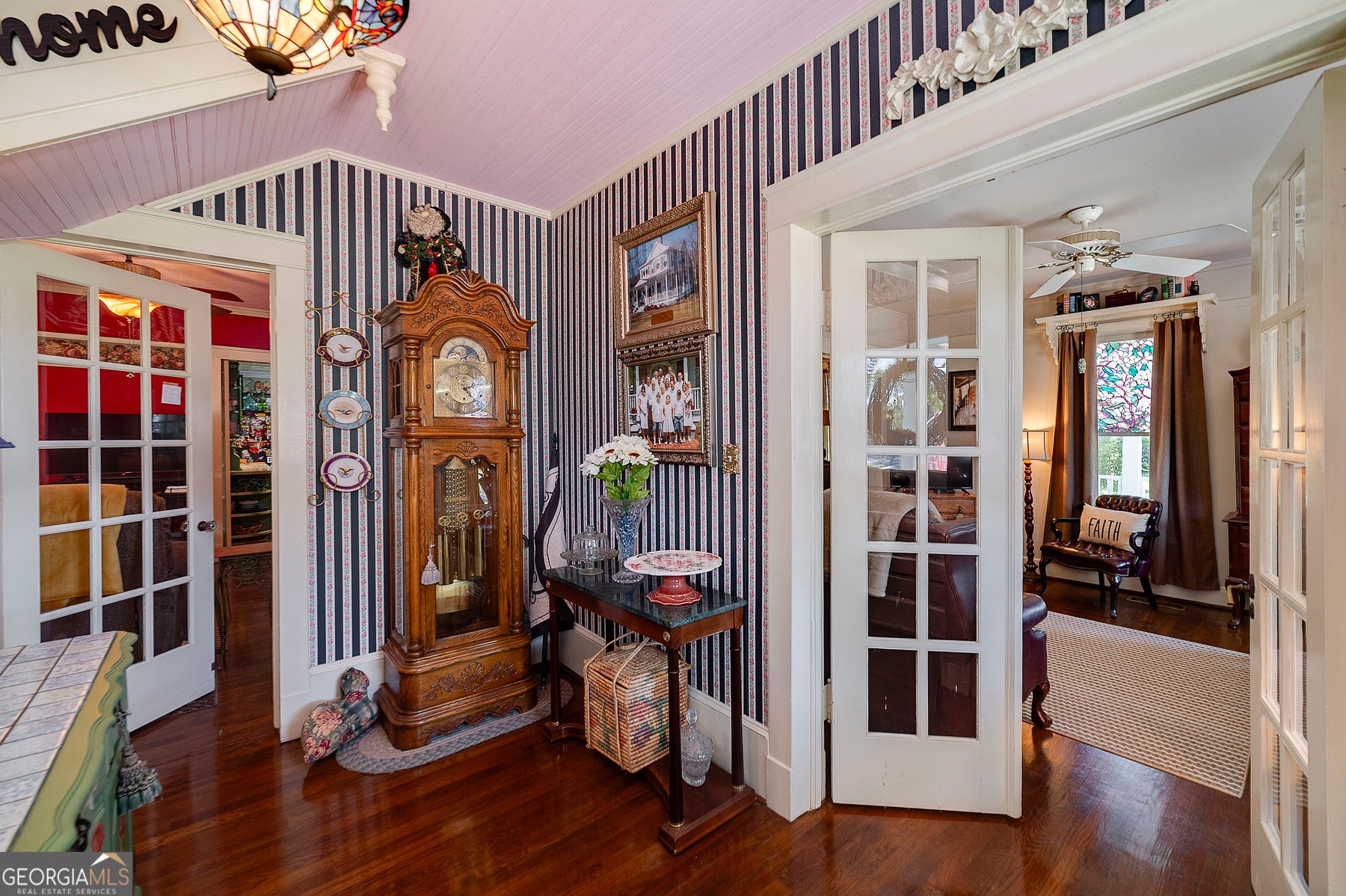 Step into a piece of history with this stunning Victorian home, built in 1900, perfectly situated within walking distance to downtown Meansville, Georgia. This classic two-story gem, complete with a white picket fence, features a large front half wraparound porch that invites you to unwind and enjoy the picturesque surroundings. The charm doesn't stop there - the 5.285 acre property features mature pecan and fig trees, 100's of bulbs and azaleas, flowering trees and bushes that provide outdoor living areas with gorgeous colors all year around. So much on this unique property - a detached two-car carport, an original restored barn, which provides ample storage and work space with 100 amp power, an original main store building from downtown Meansville, now used as a storage outbuilding, a 4-bay pole barn, the 1.5 acre wet-weather spring fed pond brimming with bass, bluegill, and redbreast gill, a unique butterfly garden, hand-built gazebo overlooking the pond, a private, drilled well and city water. You will fall in love with the wood cabin/guesthouse with indoor plumbing, beautiful heart of pine hardwood floors, and a wood burning stove where guests can stay, or you can sneak away for a staycation on your very own property! Inside the main house you'll be captivated by the authentic elegance that has been meticulously restored to reflect the turn-of-the-century style. Beautiful oak and heart of pine hardwood floors run throughout the home, complementing the intricate details that honor its historic past. The updated kitchen seamlessly blends modern conveniences with vintage flair, ideal for both everyday living and entertaining. Each room features original fireplaces, with gas burning logs or decorative, adding to the home's historical ambiance. The large dining room is perfect for hosting family gatherings, exuding warmth and charm. Throughout, authentic features carry the classic 1900 theme, from period appropriate light fixtures and glass doorknobs to intricately designed moldings, sinks, claw-foot bathtub and more. This Victorian beauty is not just a home: it's a lifestyle, offering a rare blend of historic charm and modern comfort. Don't miss your chance to make your own memories in this elegant piece of history in the heart of Meansville.