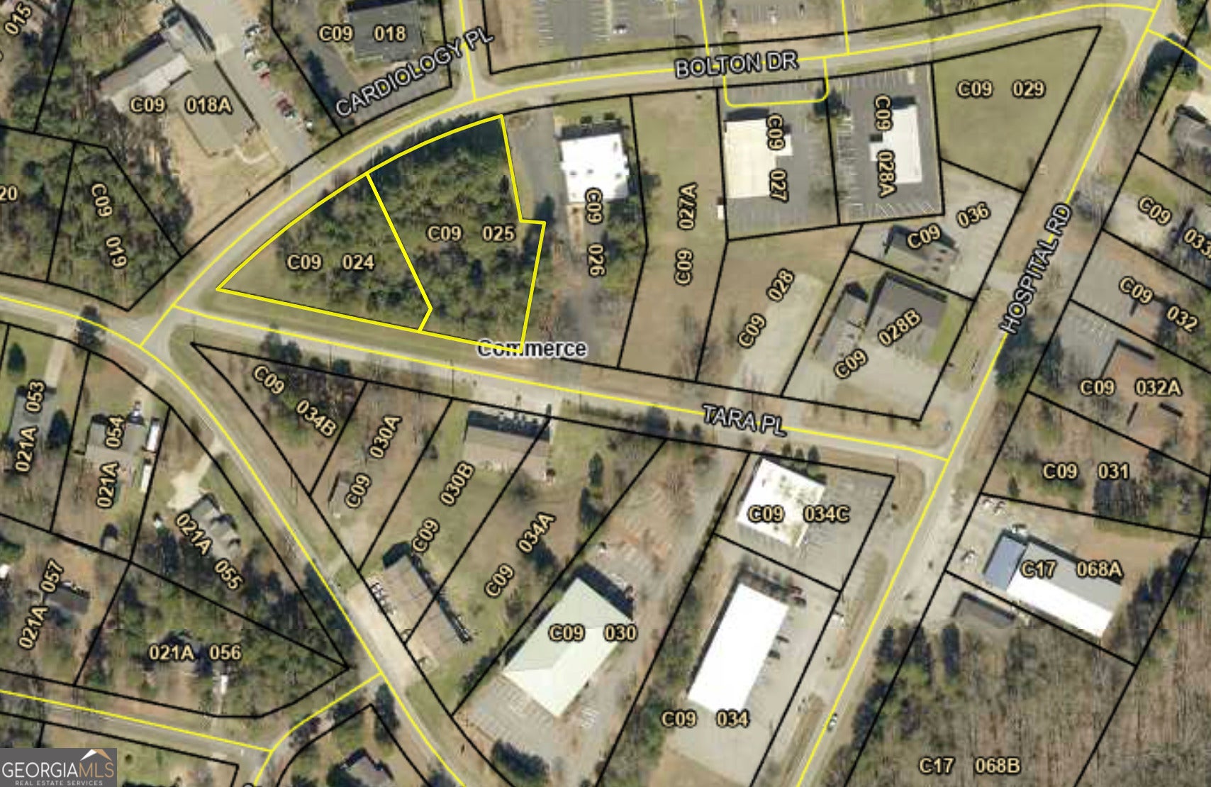 2 commercial lots in Downtown Commerce! C1 zoning allows for many different uses. One corner lot and one interior lot, both with road frontage on Tara Pl and Bolton Dr. Great site for an office building, medical practice, or small strip center. The corner lot would be ideal for a small convenience store, with close proximity to housing. City utilities are nearby. Call for more information!