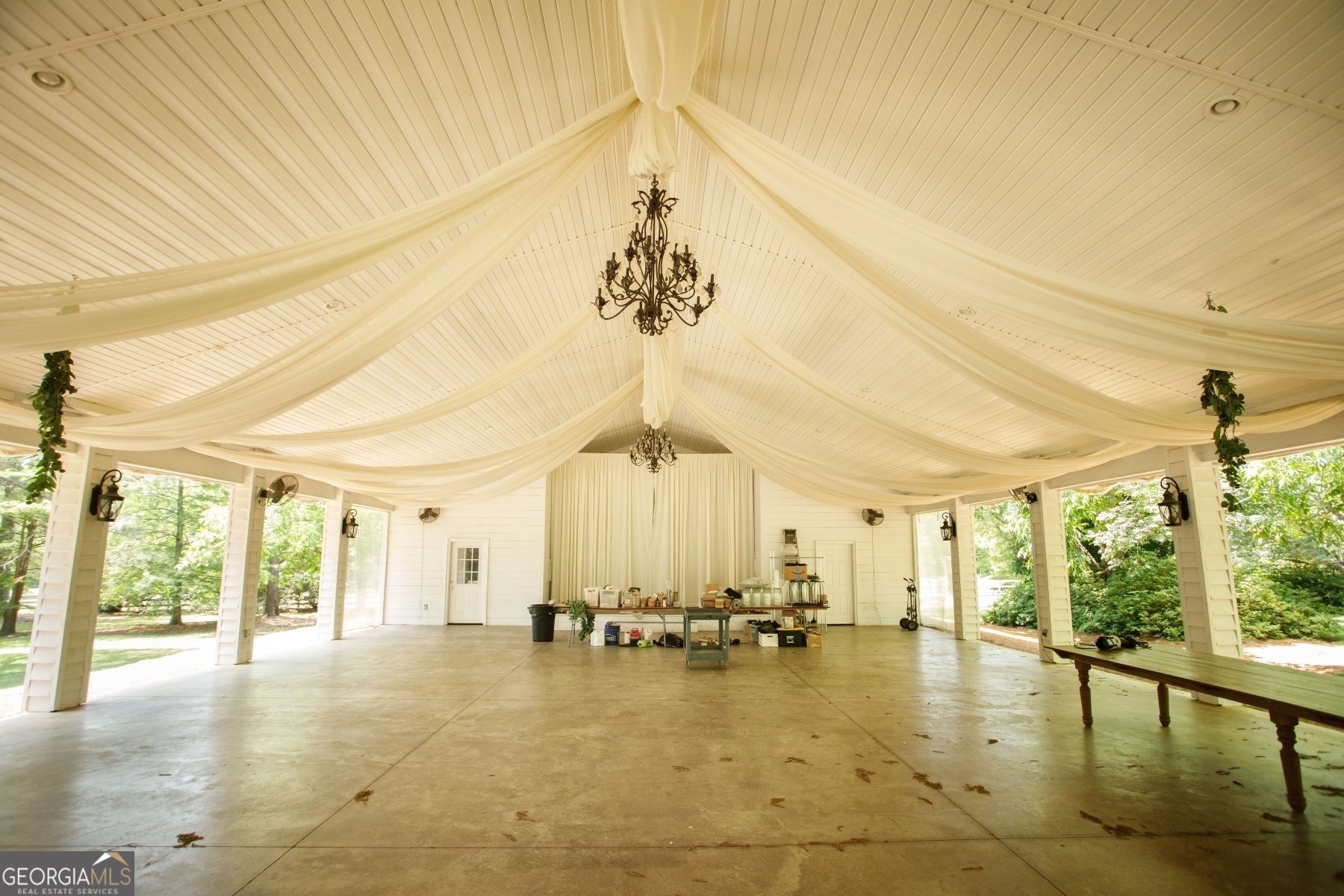 Amazing wedding venue, with multiple historic structures that include 26 guest rooms with en-suite baths, outdoor and indoor venues, elaborate gardens, and a full scale commercial kitchen with attached bar and restaurant. Office includes a commercial laundry. Six classic farmhouse style clapboard houses with huge front (and rear) porches (circa 1900), eight relocated rustic "tenant" cabins that date back to the 1800s, arranged thoughtfully around an open quad. A very large covered pavilion that can host a terrific reception, that is next to the commercial kitchen, bar, and restaurant that is also ideal for rehearsal dinners. Elegant gardens and fountains, and large open fields for recreation and overflow parking. It is hard to imagine a more perfect place for a large wedding, only 1.5 hours south of Atlantas Hartsfield International Airport. Space for expansion.