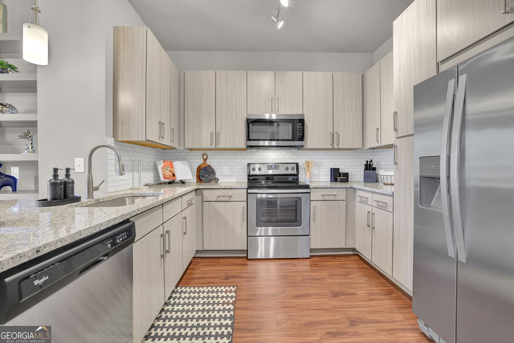 - AppliancesCooktop, Dishwasher, Dryer, Electric Water Heater, Ice Maker, Microwave, Oven/Range (Combo), Refrigerator, Stainless Steel Appliance(s), Washer, Trash Compactor, Water Softener