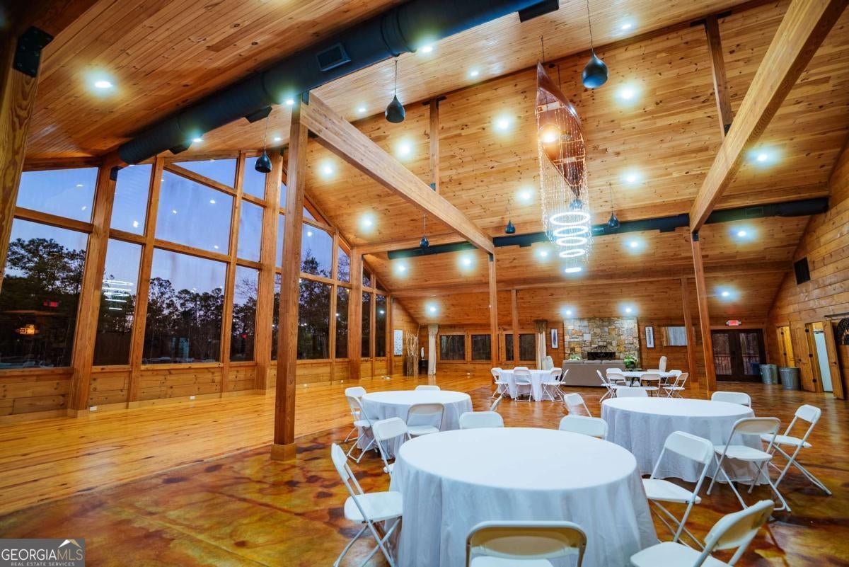 Heart Pine Venue, a premier event destination in Waycross, GA, is now for sale! Nestled on 9 acres of picturesque land surrounded by serene pine trees and overlooking an 11-acre pond, this modern rustic venue is perfect for weddings and special occasions. The property features both indoor and outdoor spaces for ceremonies and receptions, an elegant bridal suite and groom's room, as well as a fully equipped catering area and laundry room. This stunning property is an exceptional investment opportunity for anyone looking to own a thriving event venue, vacation retreat, or potentially a hunting lodge. Additionally, there is an opportunity to purchase 70 acres of adjoining land, including the 11-acre pond, with direct river frontage-making this an even more incredible offering!