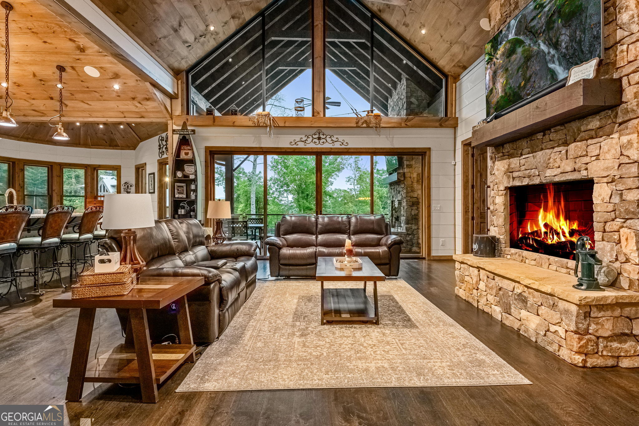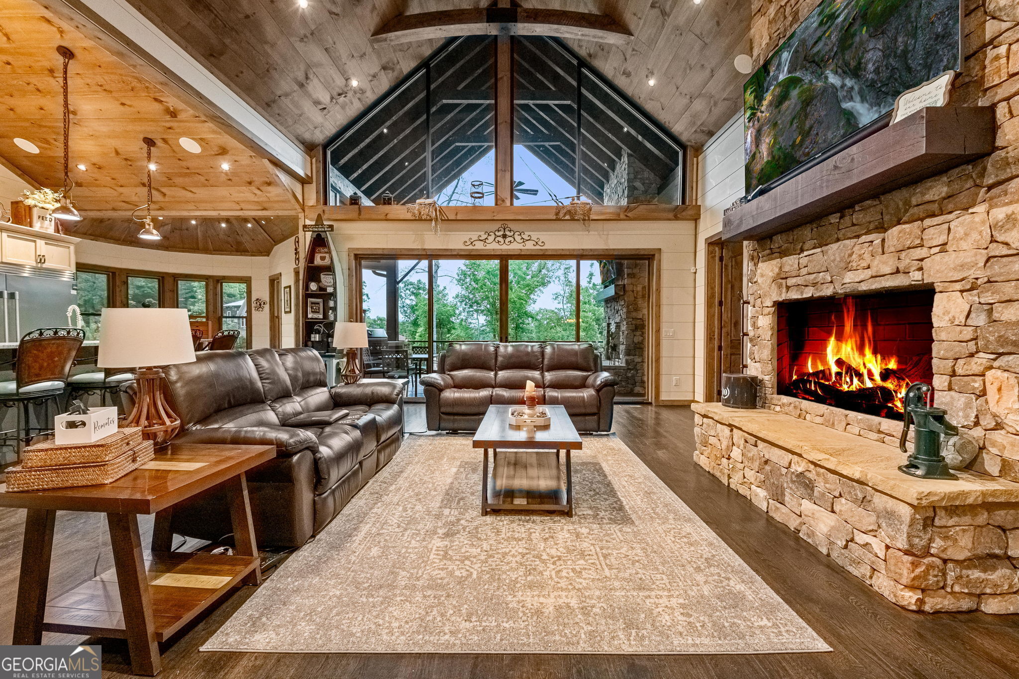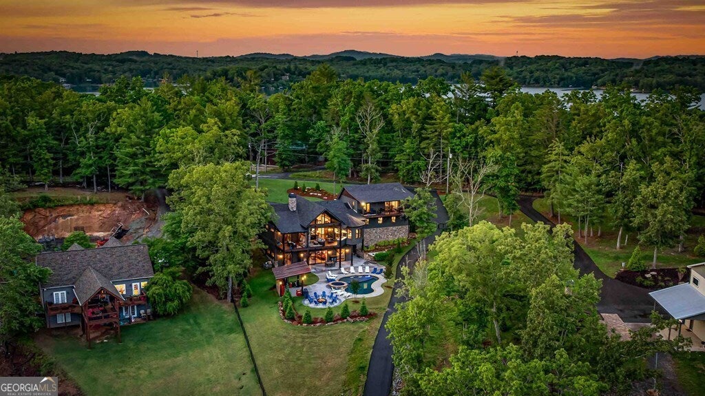Indulge in the epitome of luxury living at this extraordinary lakefront sanctuary! A grand entrance welcomes you with a majestic floor-to-ceiling stone wood-burning fireplace & intricate architectural & rustic details that frame panoramic views of Lake Blue Ridge & the majestic mountain landscape. Enter the heart of the home, where a gourmet kitchen featuring Viking appliances, an enhanced butler's pantry, & unmatched attention to detail await. With six luxurious ensuite bedrooms spread across both levels of the main residence, each guest is pampered with unmatched comfort. The primary suite is a haven of extravagance, boasting a zero-entry tile shower, heated flooring, a lavish jetted tub, and the ultimate touch of refinement - a bidet for unparalleled luxury. Enjoy entertainment without limits in the lower level, where a full wet bar seamlessly transitions to an outdoor kitchen, a serene pool, a rejuvenating hot tub, a delightful pool house with a half bath, and a captivating fire pit area. For additional accommodations, the three-car garage hosts a sophisticated 2-bedroom, 2-bathroom apartment above, perfect for guests or staff quarters. Live the pinnacle of luxury with premium amenities such as a whole house generator, a private fenced backyard catering to both privacy and pet-friendly needs, and a newly installed double-decker Wahoo boat dock complete with a 2022 Barletta 24' pontoon boat. Additionally, a full RV hook-up including 50 amps, water, and sewer connections adds further convenience and versatility to this remarkable property. Offered fully furnished, this residence presents a compelling opportunity as a successful short-term rental, blending unparalleled comfort with exceptional investment prospects. With a host of exceptional extras included by the homeowner, this home promises a lifestyle of unrivaled opulence and sophistication that surpasses all expectations.