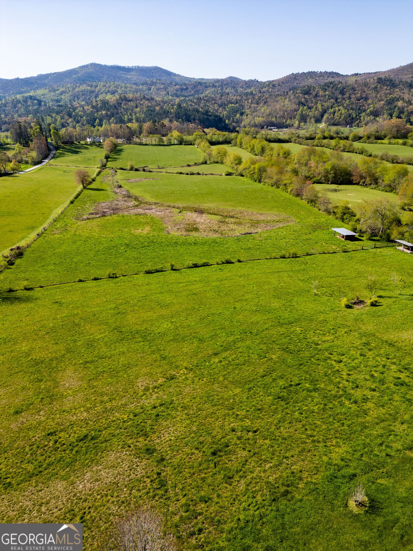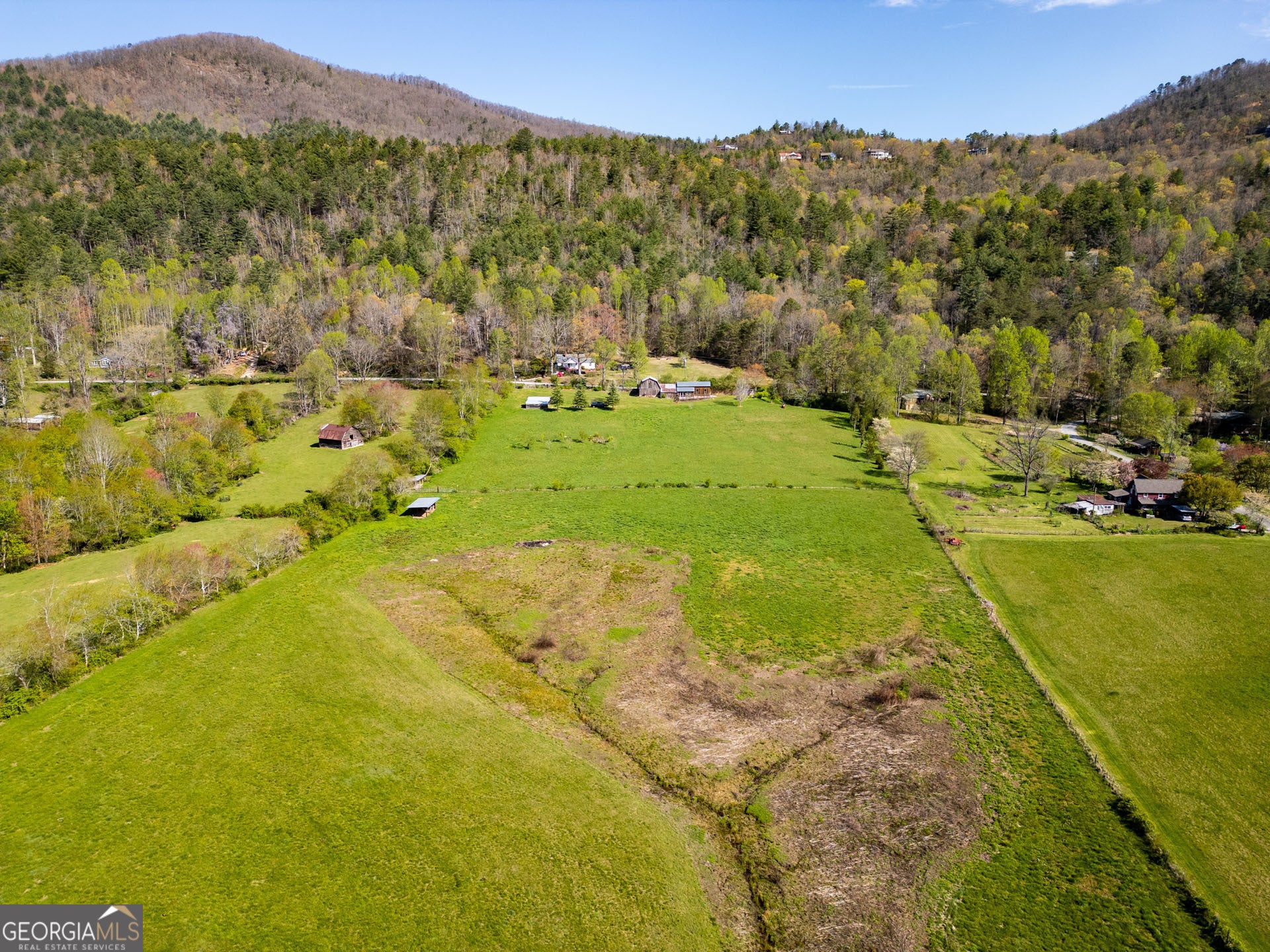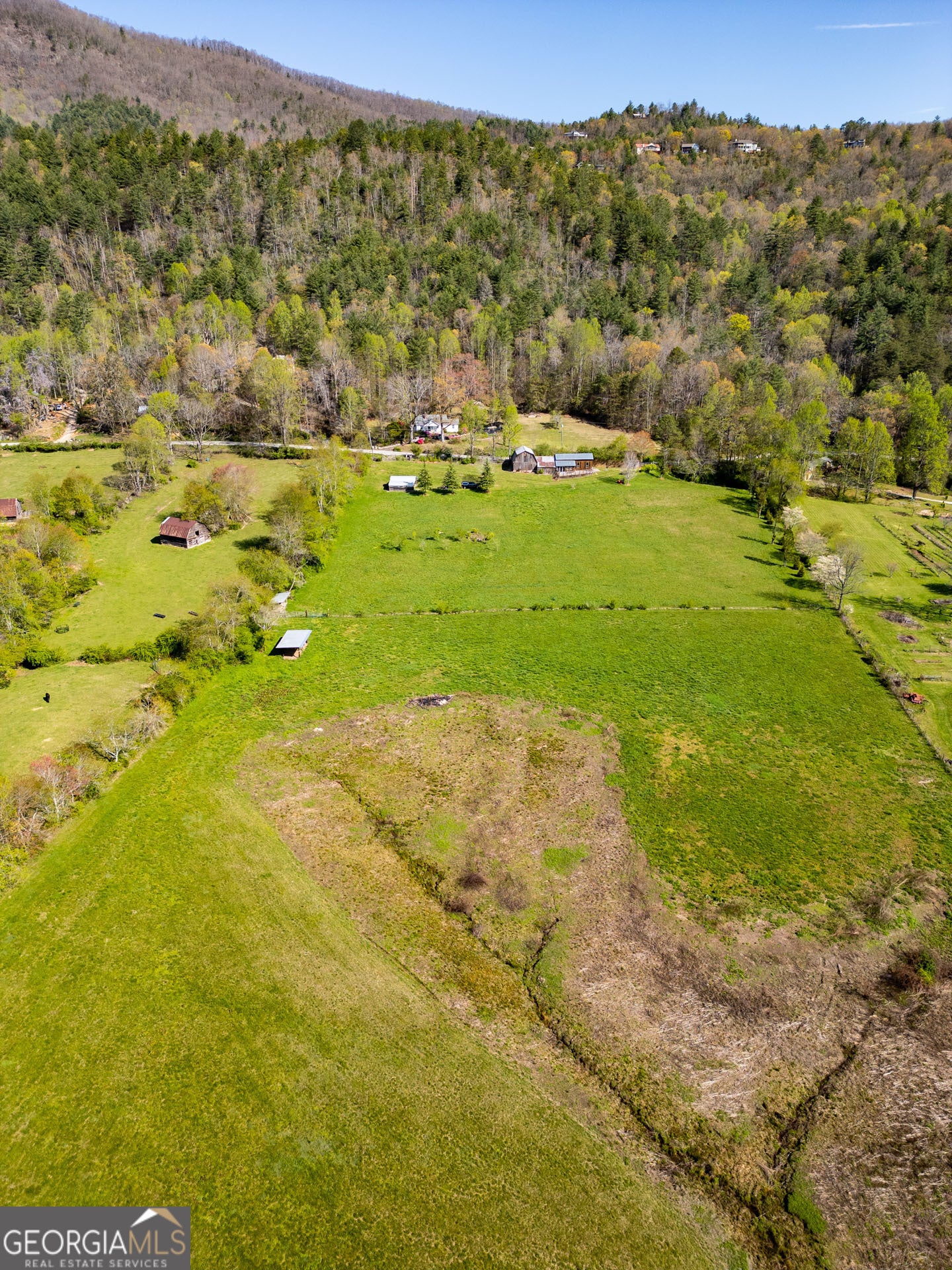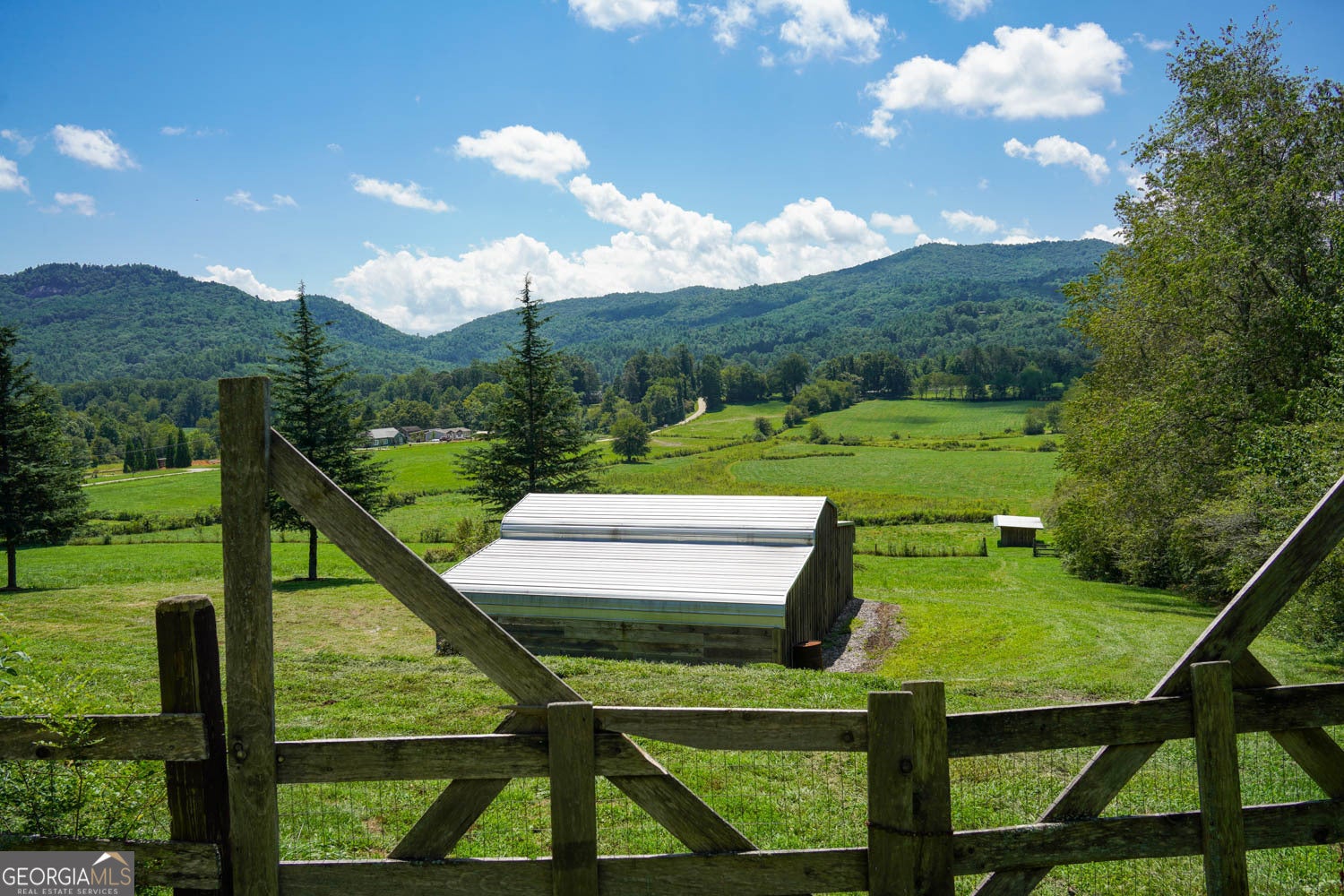 Stunning, wide-angle view of Wolffork Valley and the surrounding mountains from this uniquely situated 21.32 acres in Rabun Gap, GA. Fenced open land with springs. Old Wolffork Valley barn with recently built attached living quarters and carport. Mini Split HVAC unit, kitchen and full bath for living area. New septic system approved for 3 bedrooms. Drilled well. Deck to take in the view. Metal double carport. Paved road frontage. Video available.