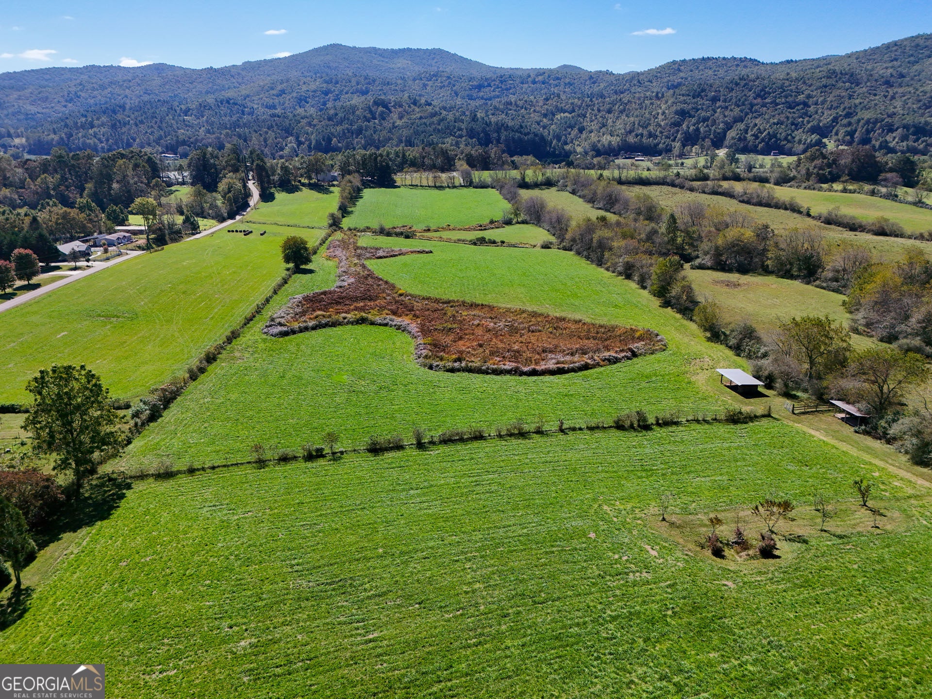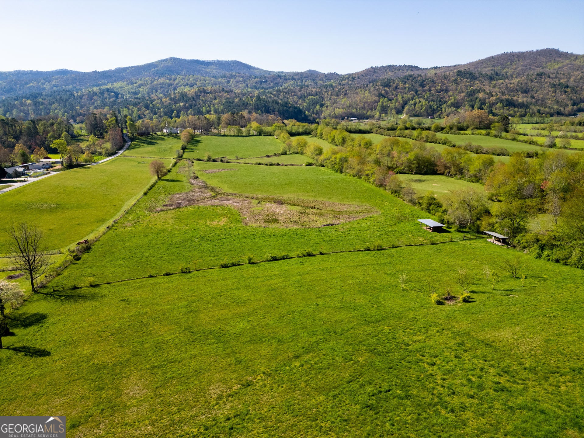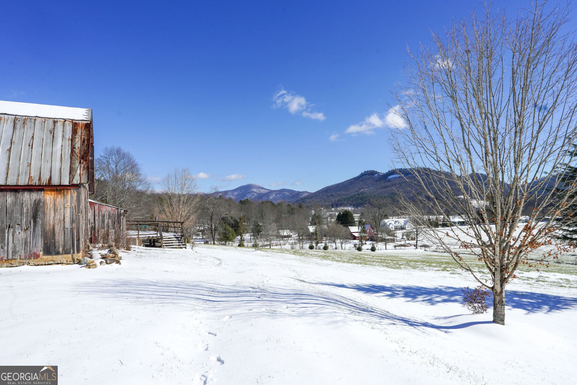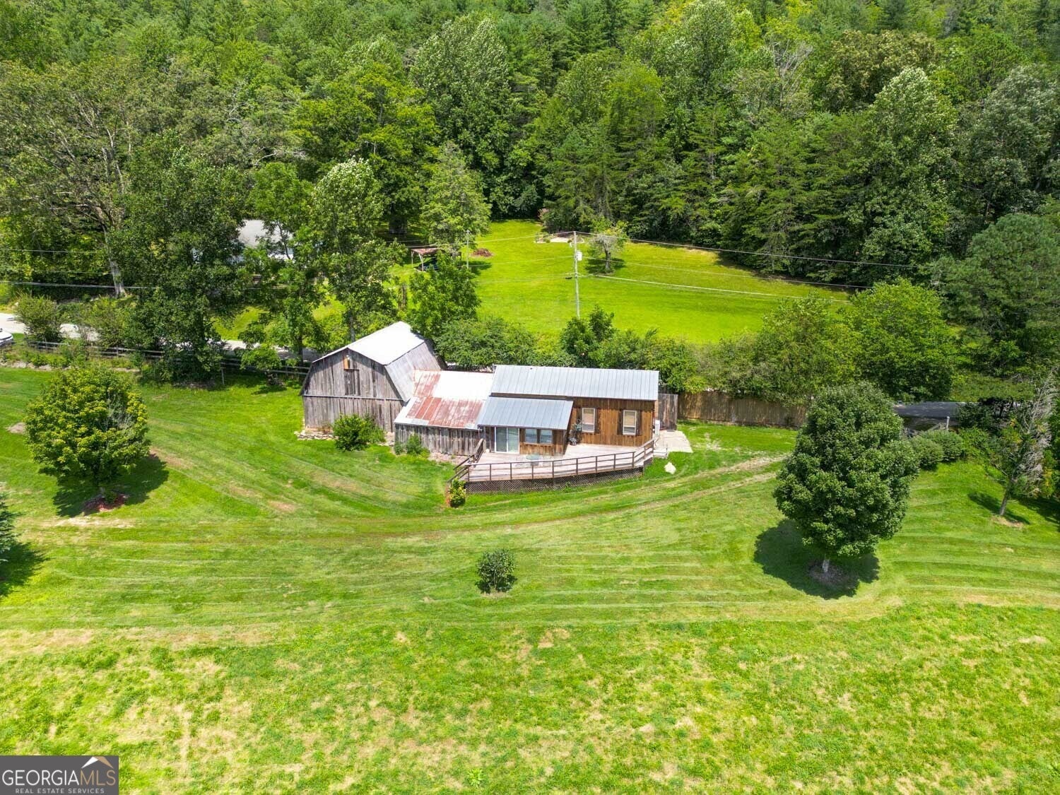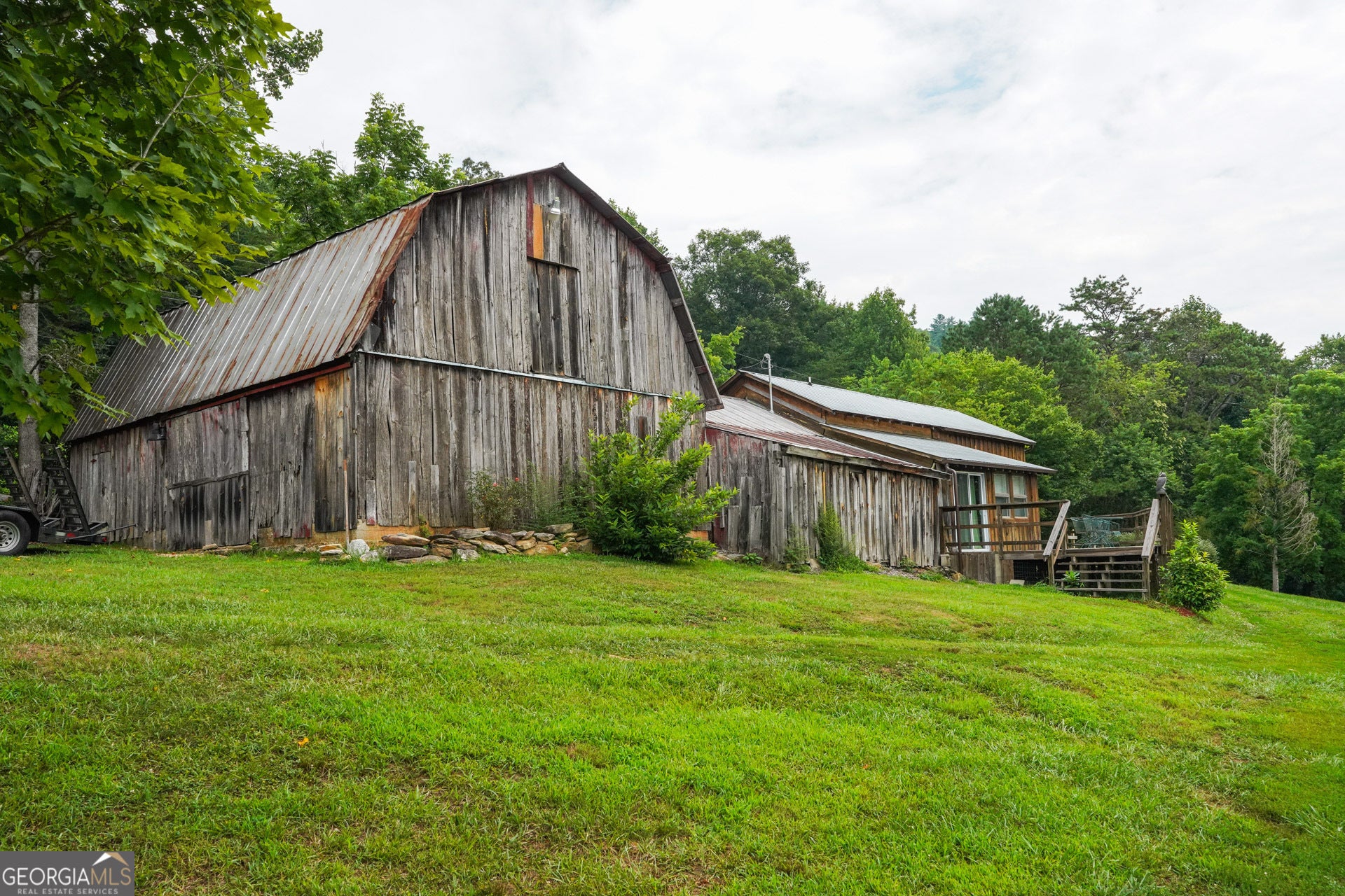 Stunning, wide-angle view of Wolffork Valley and the surrounding mountains from this uniquely situated 21.32 acres in Rabun Gap, GA. Fenced open land with springs. Old Wolffork Valley barn with recently built attached living quarters and carport. Mini Split HVAC unit, kitchen and full bath for living area. New septic system approved for 3 bedrooms. Drilled well. Deck to take in the view. Metal double carport. Paved road frontage. Video available.