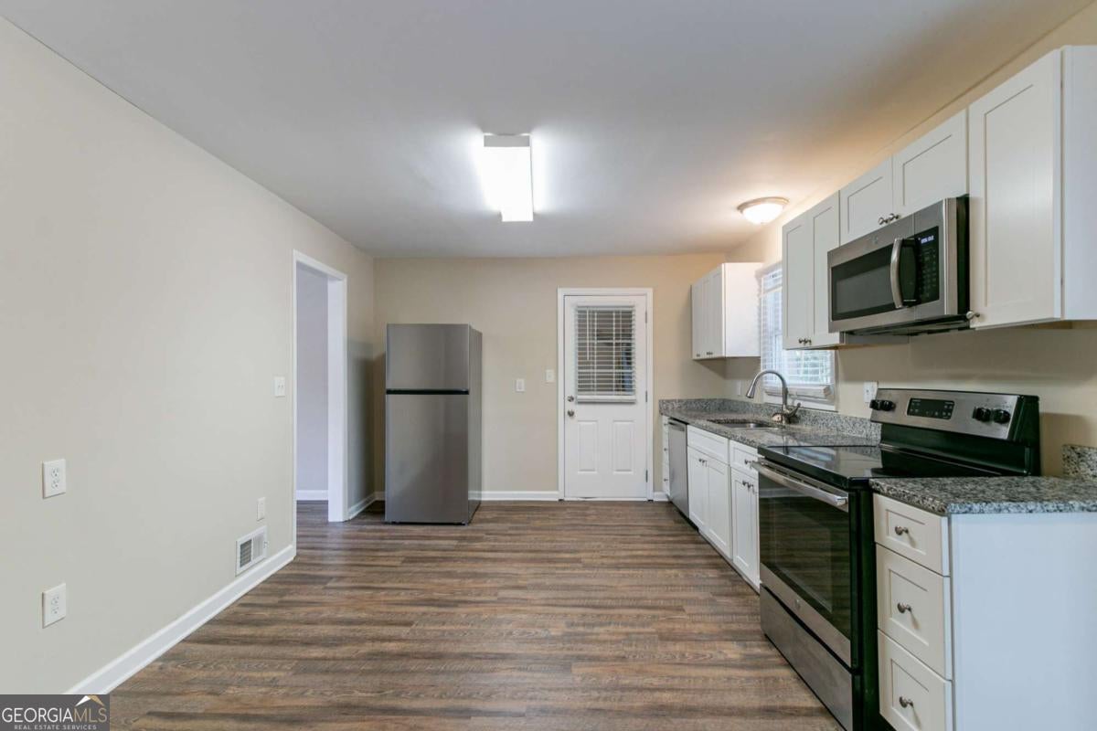 Welcome to your dream home! This delightful 3-bedroom, 2-bathroom residence offers the perfect blend of comfort and style. Step inside to find a bright and airy separate living room, perfect for relaxing or entertaining guests. The heart of the home features stunning stainless steel appliances and elegant granite countertops, complemented by sleek white cabinets that provide ample storage. The spacious layout makes cooking and hosting a breeze! Enjoy outdoor living with a generously sized backyard, ideal for gatherings, gardening, or simply unwinding in the fresh air. The front yard is equally inviting, featuring a charming front porch where you can sip your morning coffee or enjoy evening sunsets. With a convenient 1-car garage, you'll have easy access and added storage space. This home is ready to welcome you with open armsCodonCOt miss the opportunity to make it yours! Schedule your showing today!
