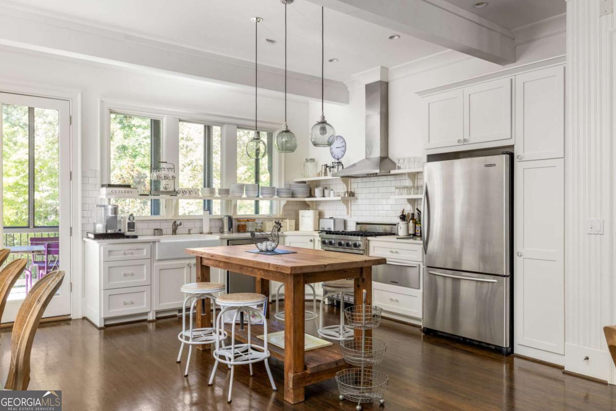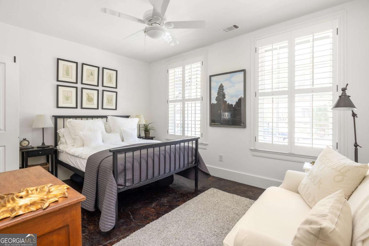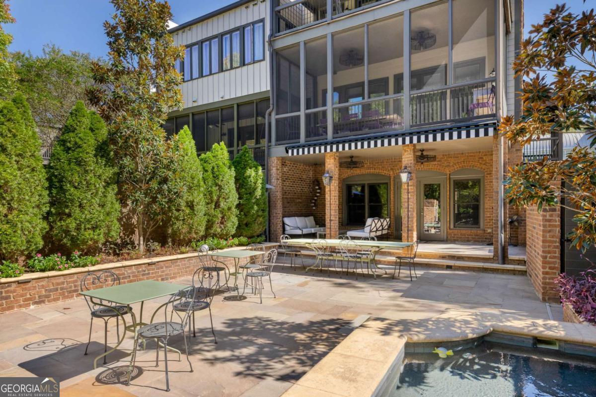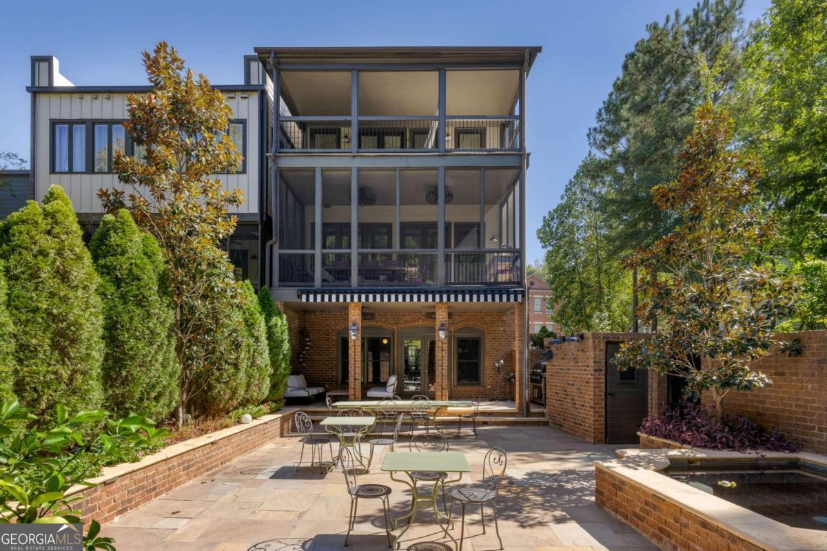 Nestled in the picturesque Selborne Hamlet of Serenbe, this exquisite 3-story townhome offers a harmonious blend of luxury and functionality. The street-level features a 1-bedroom, 1-bath suite with custom concrete floors, a full kitchen, and temperature-controlled wine storage. This level opens to a breathtaking courtyard with custom stonework, a pool spa, raised planter beds with landscape lighting, a speaker system, and a retractable awning, perfect for outdoor entertaining for any season. Secure custom iron gates ensure beauty and privacy. On the main level, expansive open spaces flooded with natural light seamlessly connect to multiple covered porches, including a large, screened rear porch overlooking serene wooded views. The third floor boasts a luxurious oversized primary suite complete with a sitting area and a private porch. Also on this level is another guest bedroom, thoughtfully designed for comfort and convenience + perfect for overnight guests. High ceilings, rich hardwood floors, and custom fixtures throughout elevate the home's sophisticated aesthetic, blending modern elegance with serene living. ? Being centrally located in the Selborne Hamlet, you have direct access to over 20 miles of soft surfaced nature trails with protected forest views and are a short walking distance to restaurants, boutiques and a plethora of wellness amenities.
