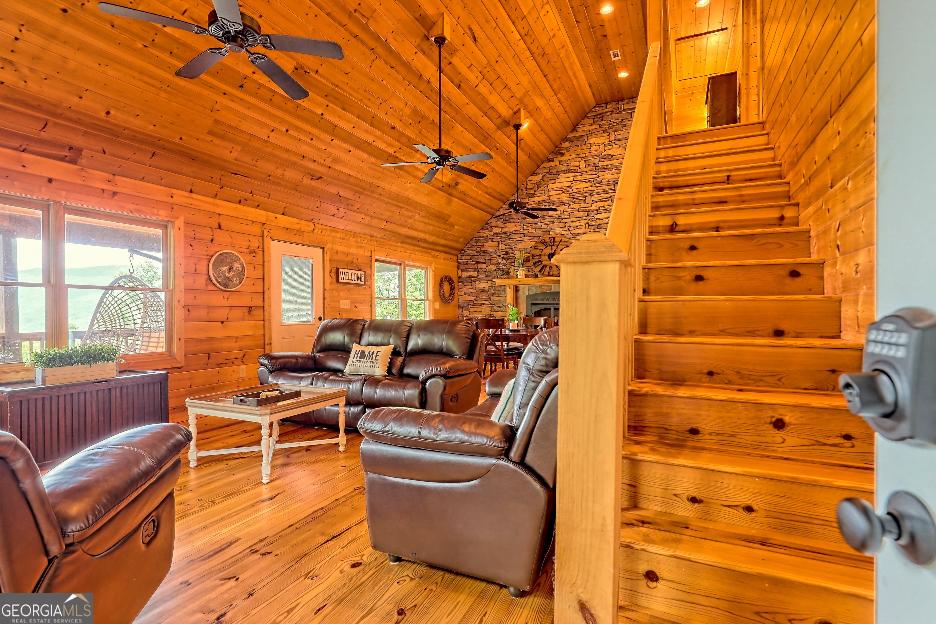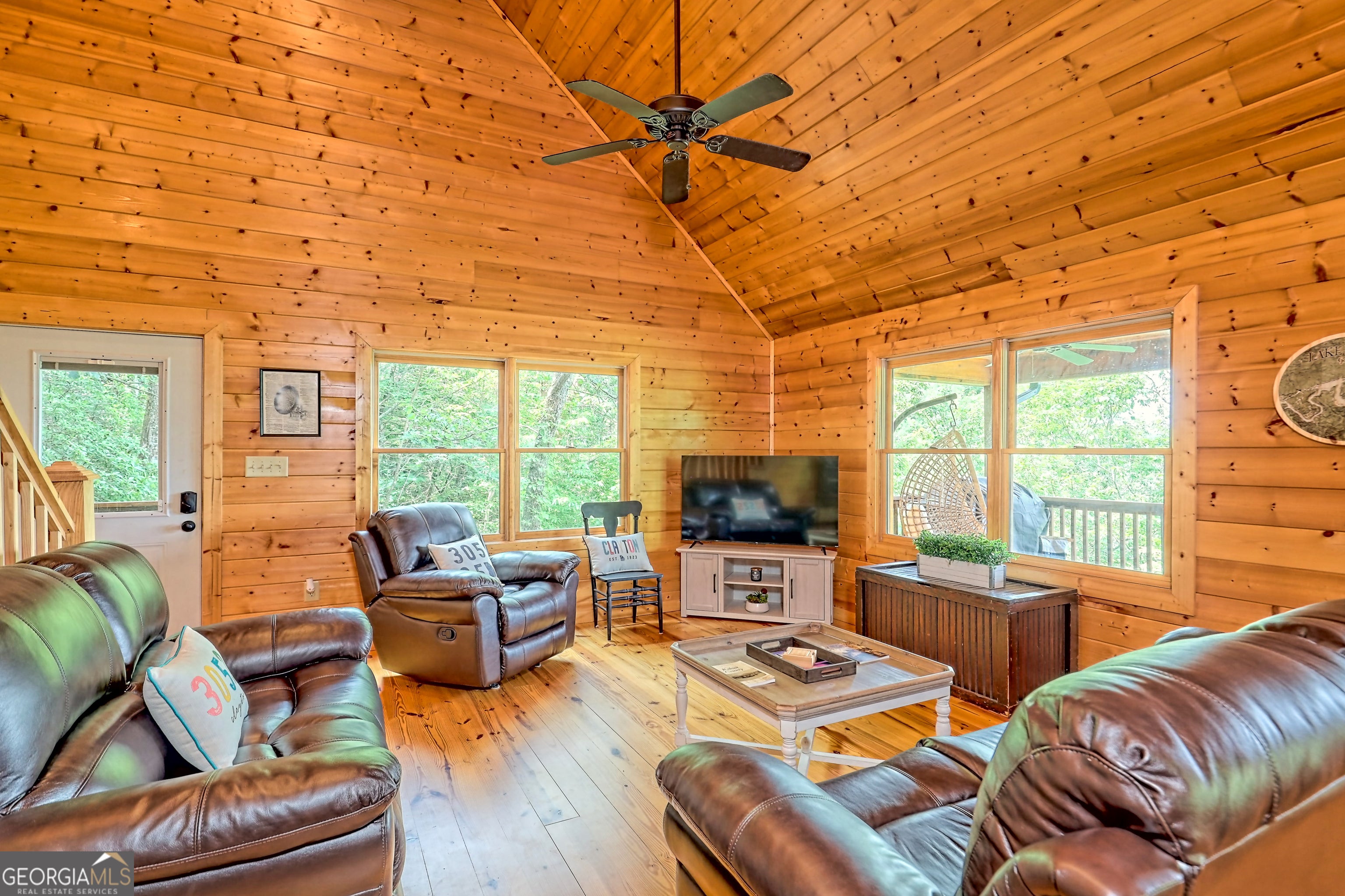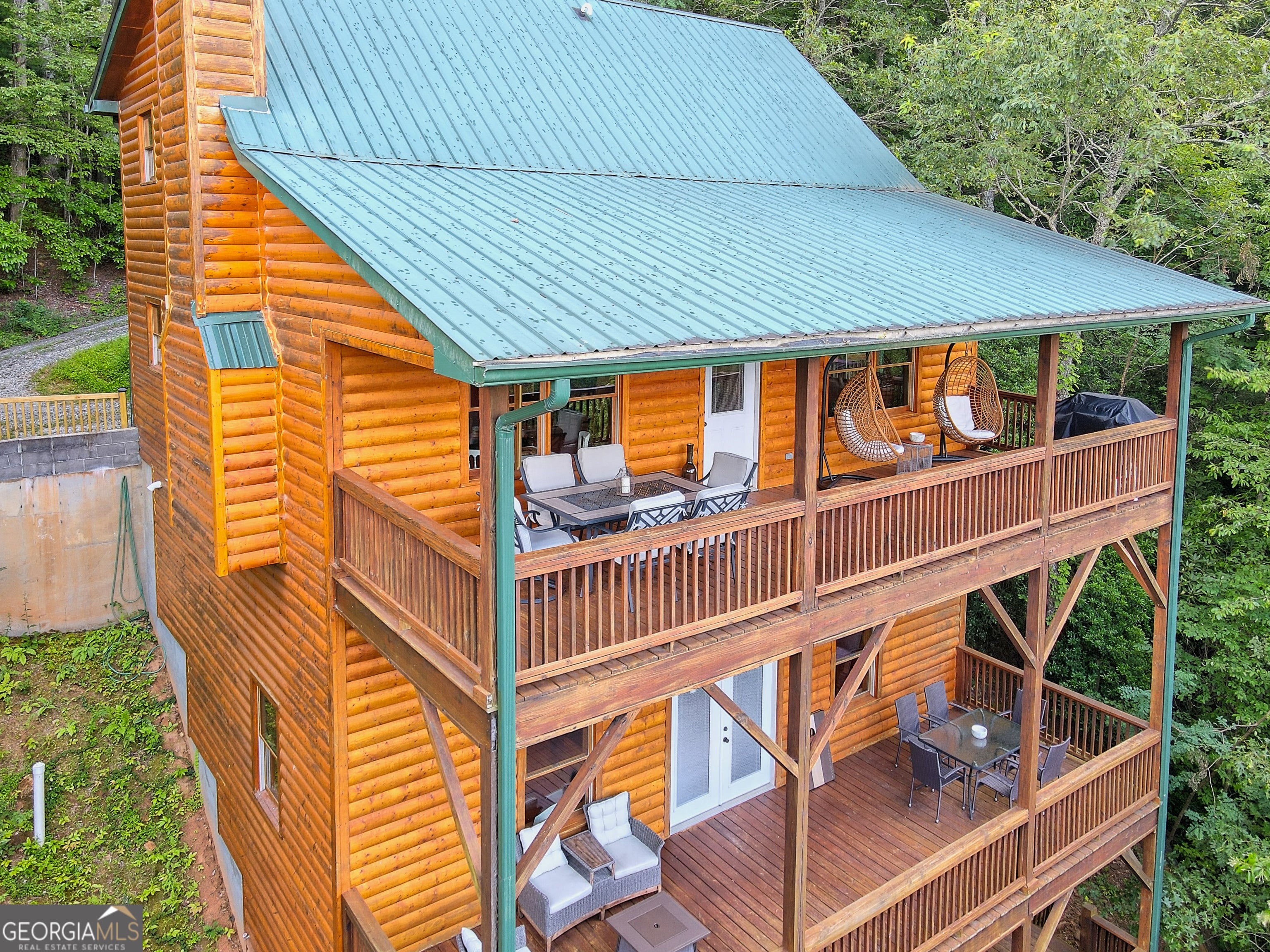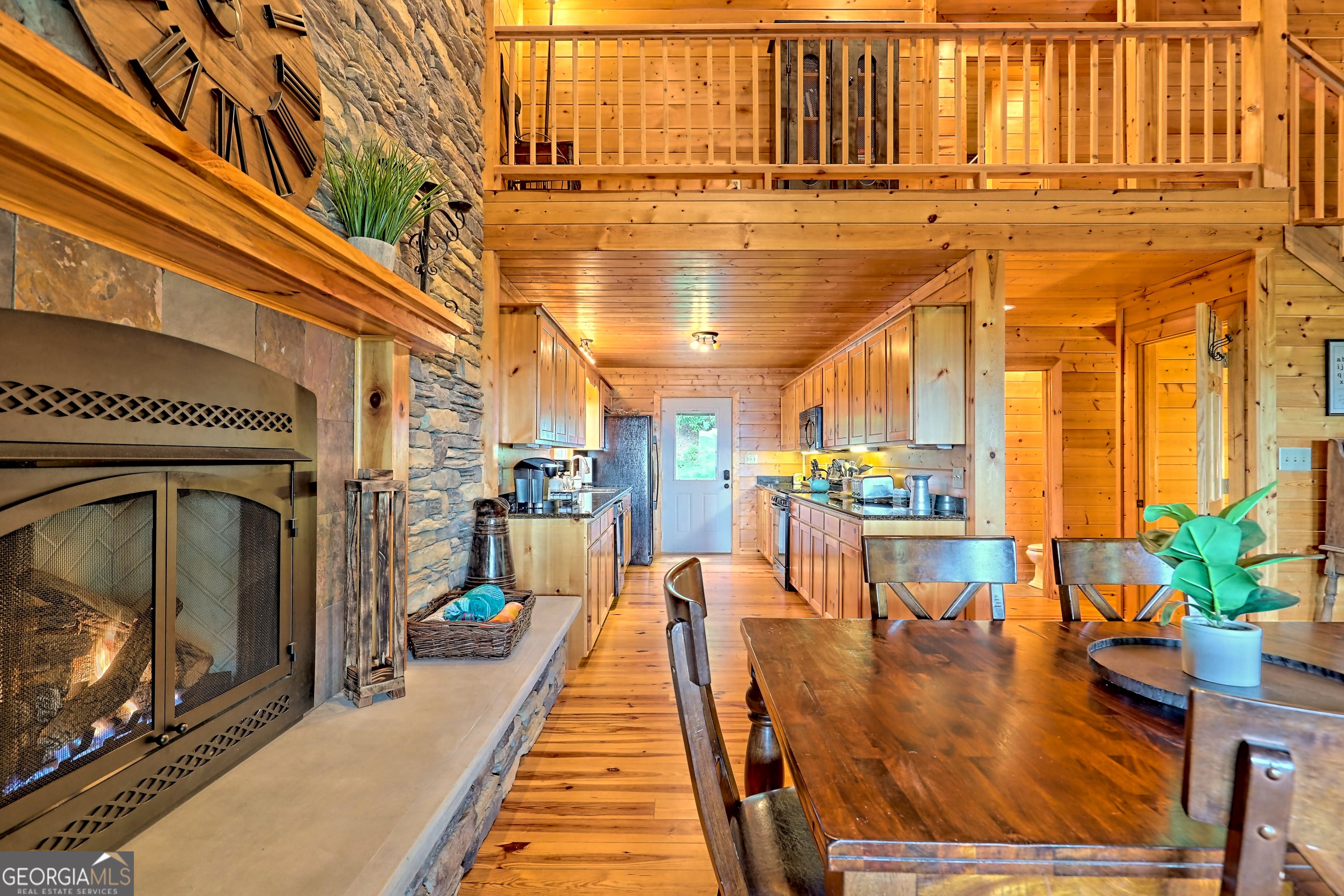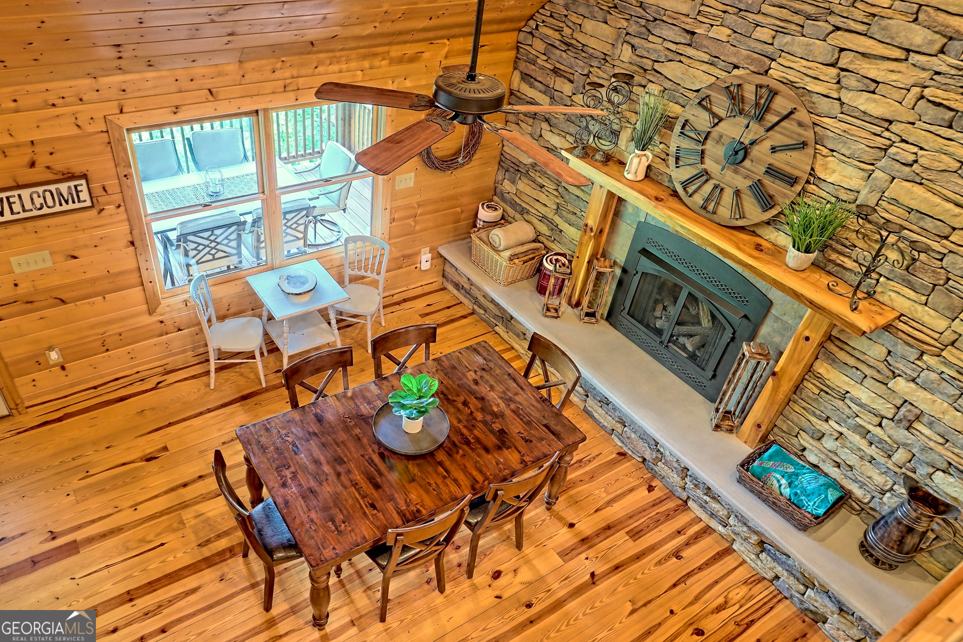This beautifully maintained 3-bedroom, 3-bathroom [+ flex space for hobby room, office or game space] mountain cabin with a VIEW is ideally located less than 10 minutes from downtown Clayton, offering the perfect balance of convenience and tranquility. While just minutes from the heart of downtown shops, galleries and restaurants, you'll also enjoy easy access to the area's renowned outdoor attractions, including hiking trails, waterfalls, horseback riding, whitewater rafting and more. The cabin is also within close proximity to top-rated Rabun County School District, adding to its appeal for families. Custom built in 2007, this four-story cabin has been meticulously maintained and offers a warm, inviting atmosphere. As you approach the home, you'll be greeted by scenic views of both the surrounding mountains and downtown Clayton, best enjoyed from one of three expansive covered decks or the quiet side porch. The main living area features an impressive custom stone fireplace with a gas insert and a beautifully crafted concrete hearth, creating a warm focal point. The living room boasts a soaring two-story ceiling and a custom staircase with a balcony, providing a sense of openness during gatherings. On the main floor, you'll find a comfortable bedroom and a full bath, complete with a custom-tiled shower, double vanities, hard surface countertops, and custom cabinetry. For added convenience, there is also a stackable washer/dryer. Upstairs, the second floor offers two additional spacious bedrooms and a full bath, also featuring custom tile work, double vanities, and high-end finishes. If you're in need of additional space, the lower level provides a full daylight basement, perfect for a game room and entertaining space, as well as another room for flex space. This level also includes a full bath with a tiled shower and bathtub combination. With its prime location, just a 2-hour drive from Atlanta and proximity to Highlands, NC, this cabin is ideal for those seeking a retreat with easy access to both nature and nearby towns. Rabun County's beautiful lakes-Rabun, Seed, and Burton-are also within a 20-40 minute drive. This one-of-a-kind cabin is a must-see for anyone looking to experience the best of mountain living in the North Georgia area. Please make plans to schedule appts to view, as this is an active ST rental.