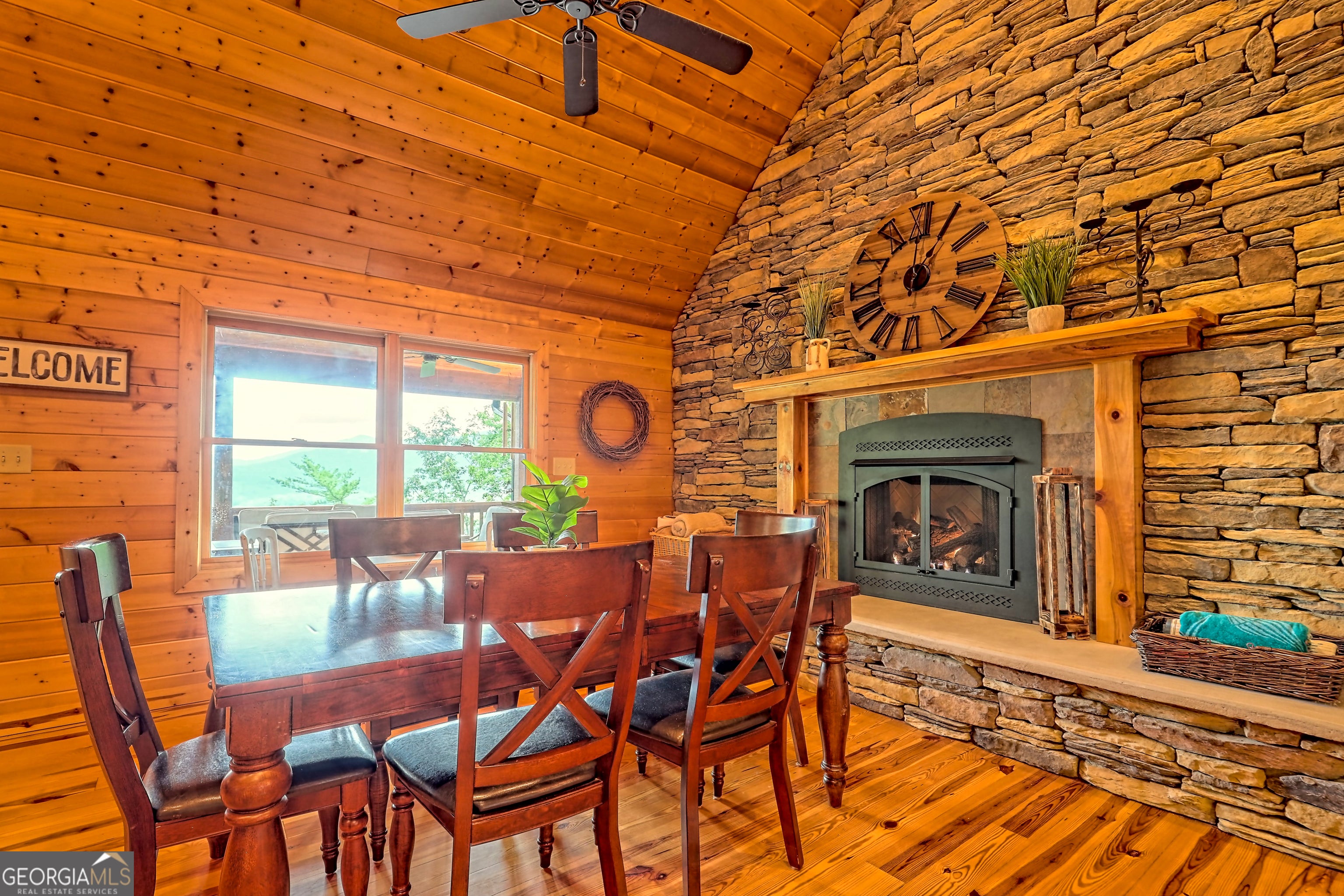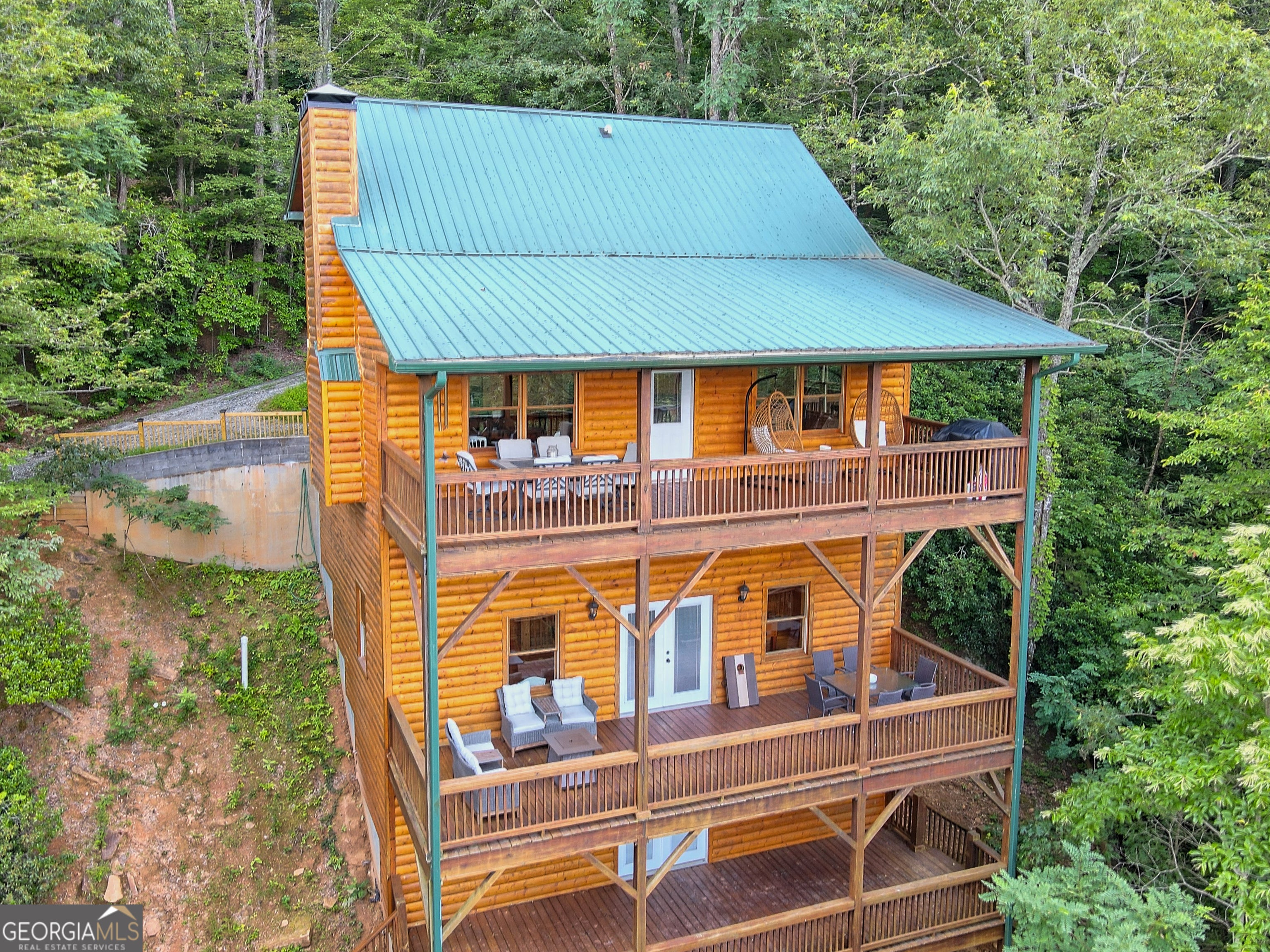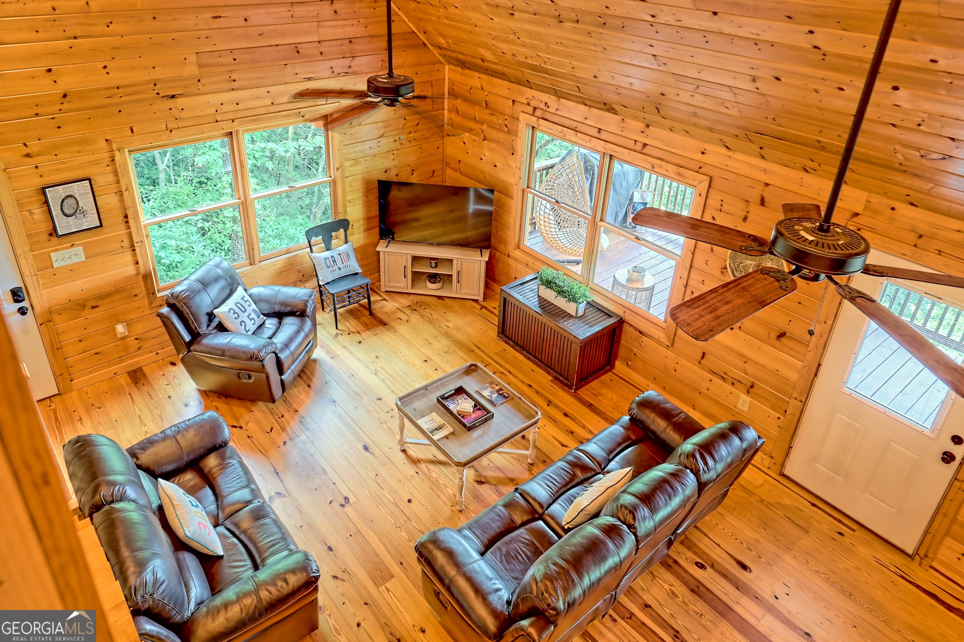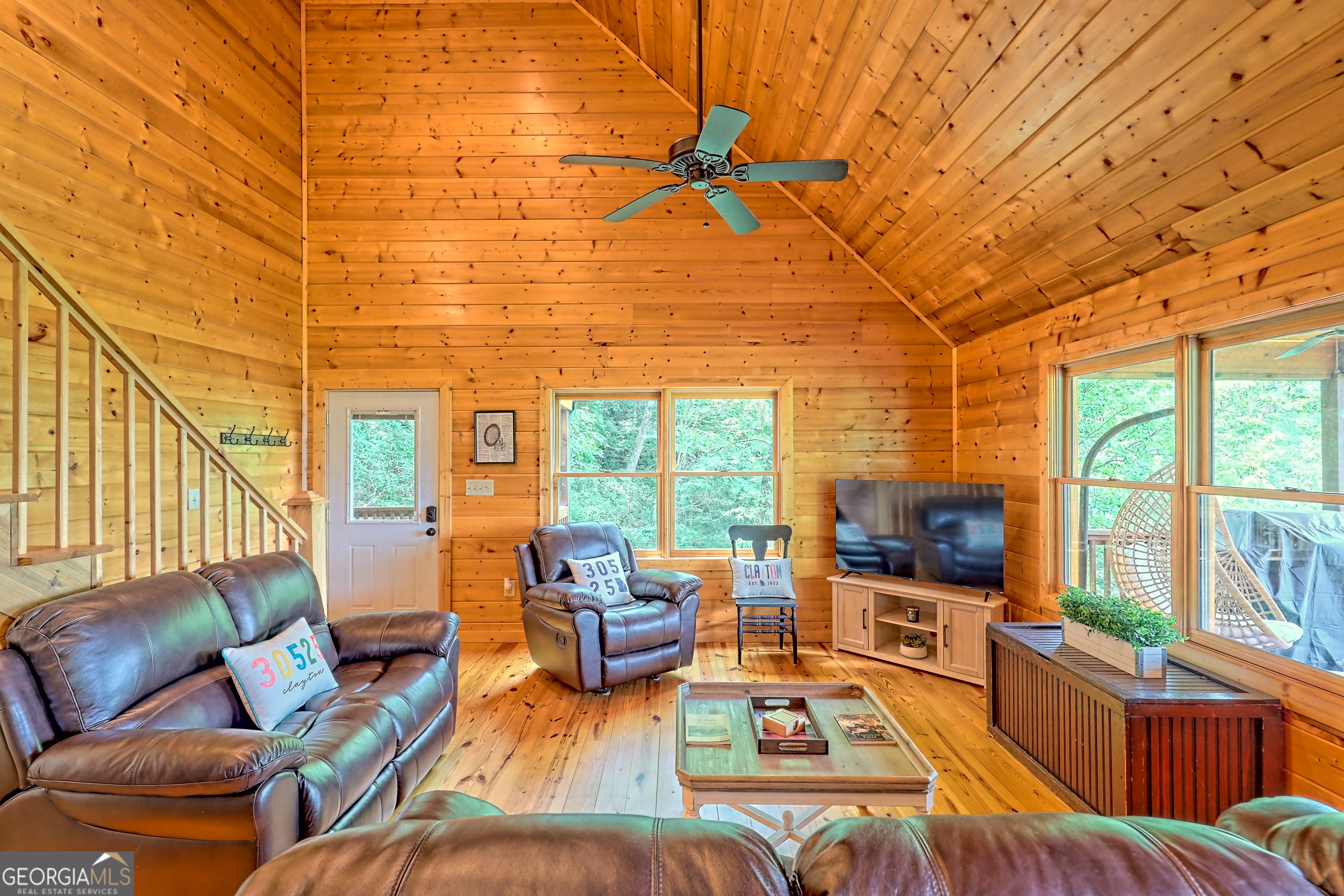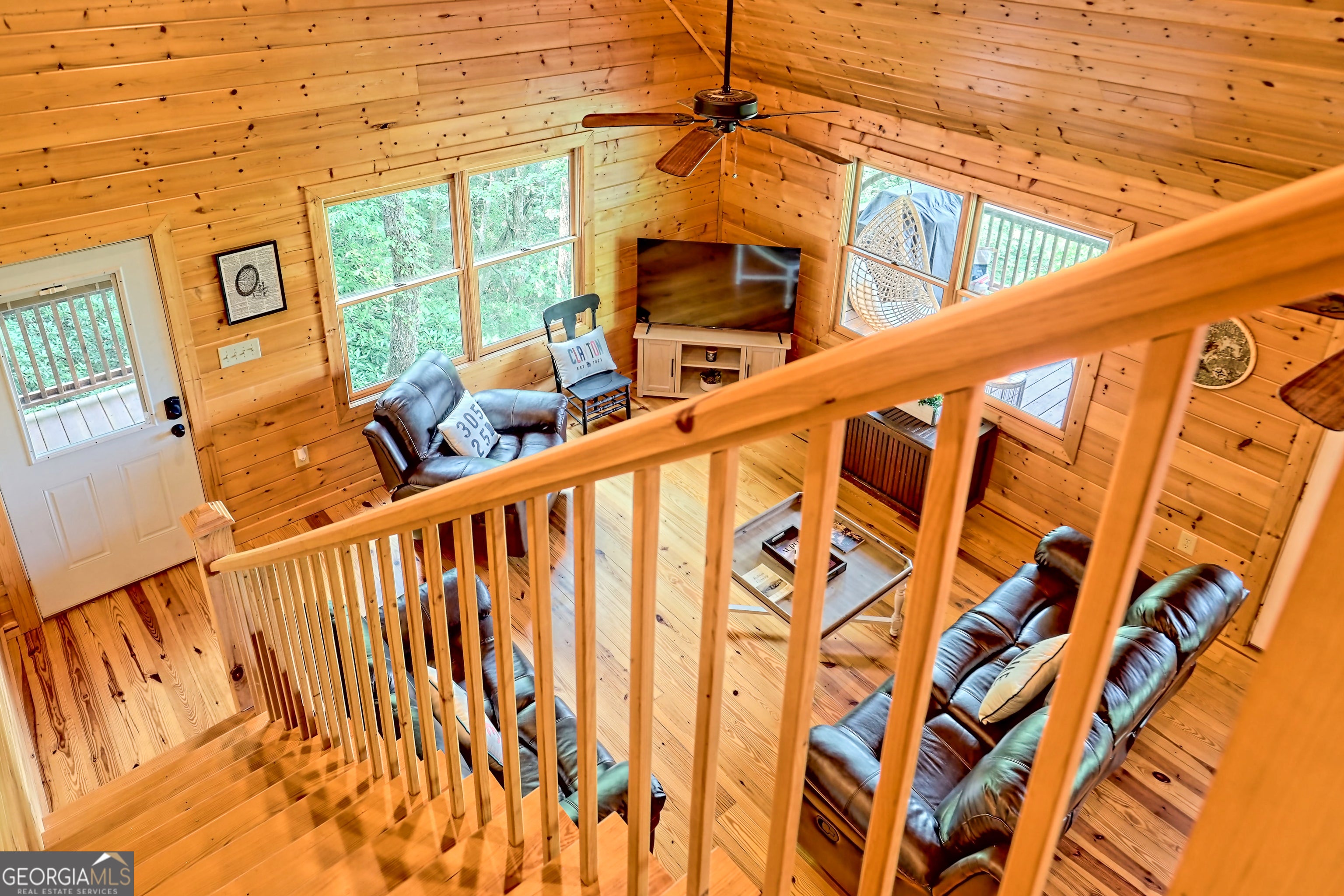 This beautifully maintained 3-bedroom, 3-bathroom [+ flex space for hobby room, office or game space] mountain cabin with a VIEW is ideally located less than 10 minutes from downtown Clayton, offering the perfect balance of convenience and tranquility. While just minutes from the heart of downtown shops, galleries and restaurants, you'll also enjoy easy access to the area's renowned outdoor attractions, including hiking trails, waterfalls, horseback riding, whitewater rafting and more. The cabin is also within close proximity to top-rated Rabun County School District, adding to its appeal for families. Custom built in 2007, this four-story cabin has been meticulously maintained and offers a warm, inviting atmosphere. As you approach the home, you'll be greeted by scenic views of both the surrounding mountains and downtown Clayton, best enjoyed from one of three expansive covered decks or the quiet side porch. The main living area features an impressive custom stone fireplace with a gas insert and a beautifully crafted concrete hearth, creating a warm focal point. The living room boasts a soaring two-story ceiling and a custom staircase with a balcony, providing a sense of openness during gatherings. On the main floor, you'll find a comfortable bedroom and a full bath, complete with a custom-tiled shower, double vanities, hard surface countertops, and custom cabinetry. For added convenience, there is also a stackable washer/dryer. Upstairs, the second floor offers two additional spacious bedrooms and a full bath, also featuring custom tile work, double vanities, and high-end finishes. If you're in need of additional space, the lower level provides a full daylight basement, perfect for a game room and entertaining space, as well as another room for flex space. This level also includes a full bath with a tiled shower and bathtub combination. With its prime location, just a 2-hour drive from Atlanta and proximity to Highlands, NC, this cabin is ideal for those seeking a retreat with easy access to both nature and nearby towns. Rabun County's beautiful lakes-Rabun, Seed, and Burton-are also within a 20-40 minute drive. This one-of-a-kind cabin is a must-see for anyone looking to experience the best of mountain living in the North Georgia area. Please make plans to schedule appts to view, as this is an active ST rental.