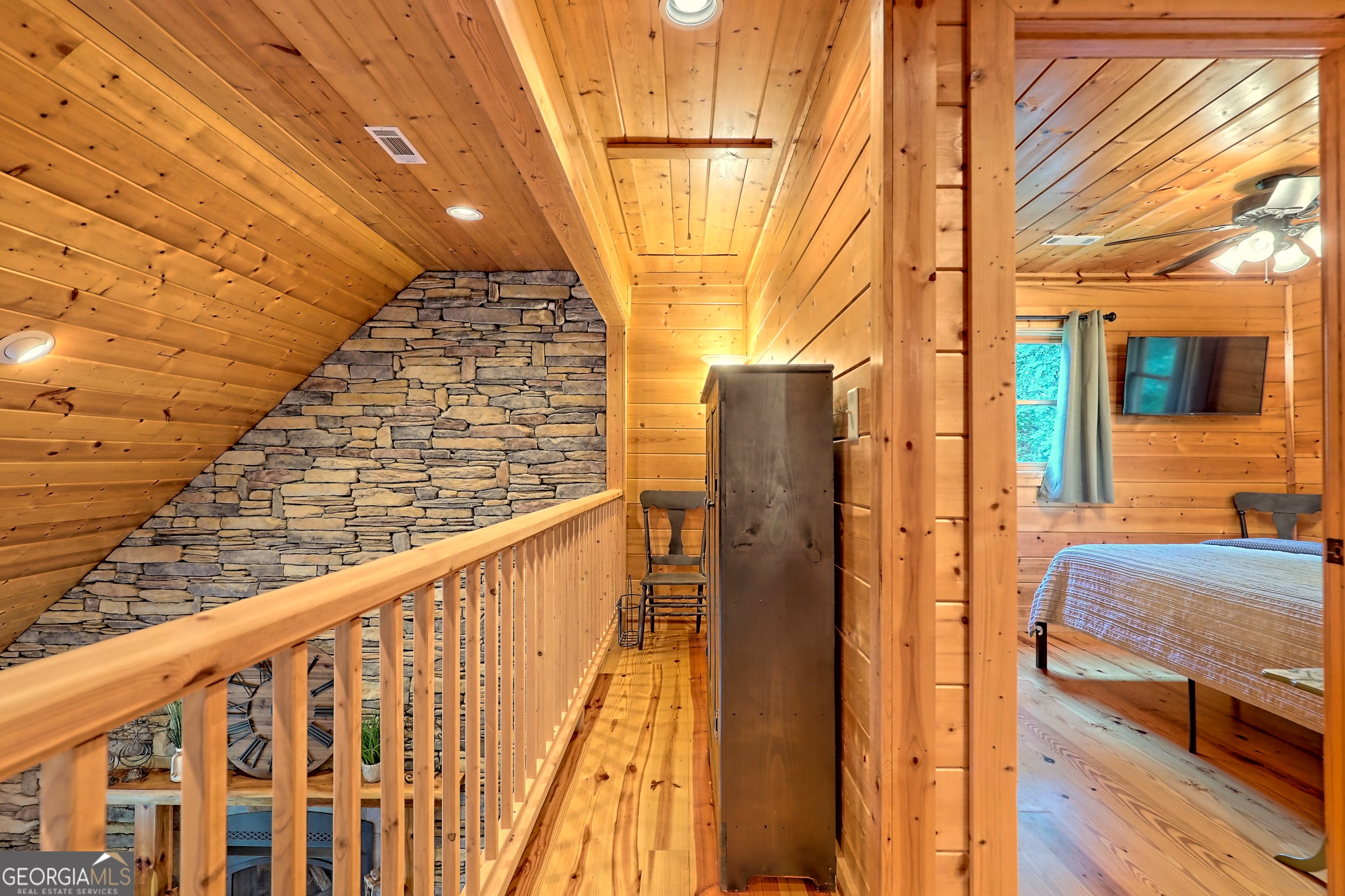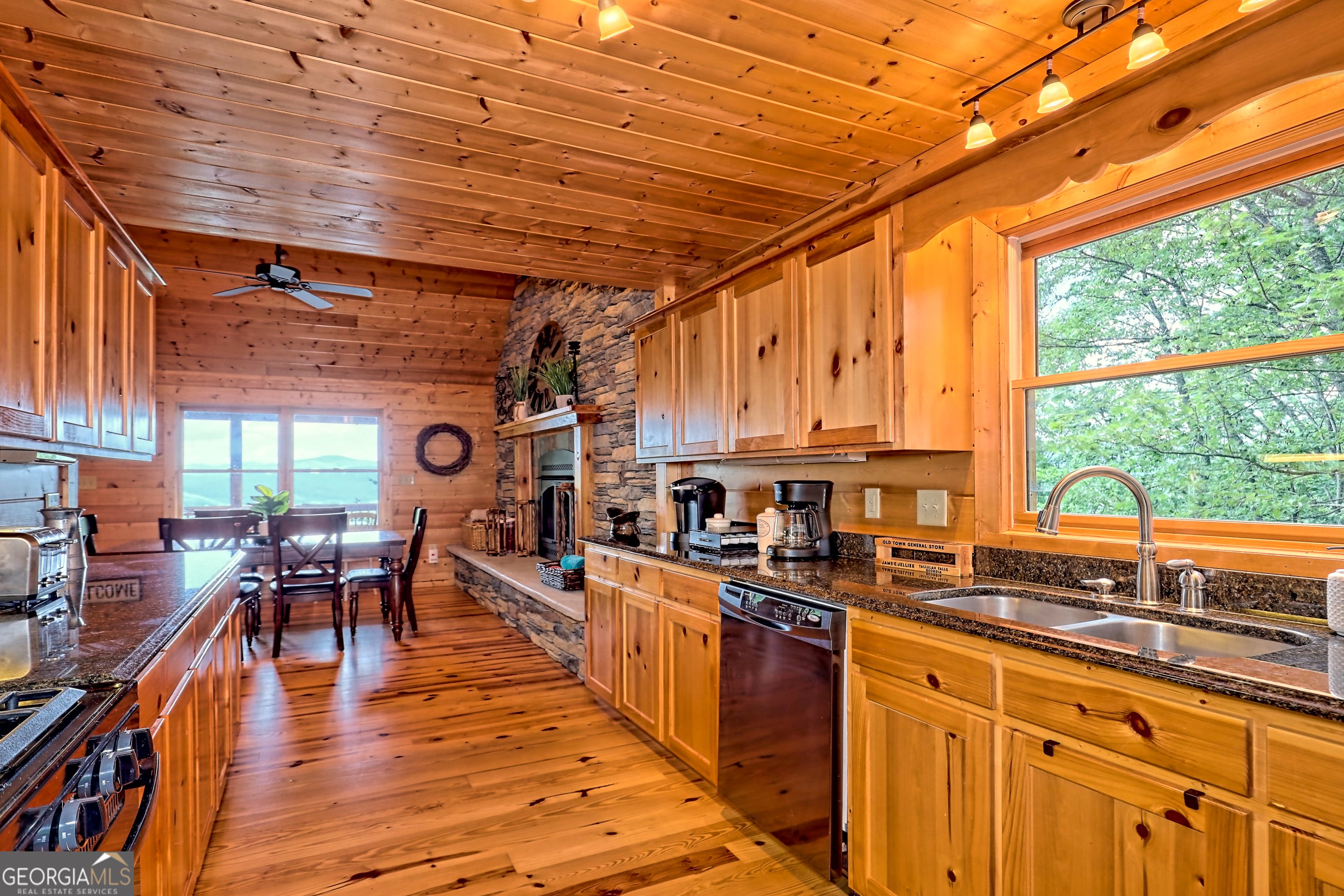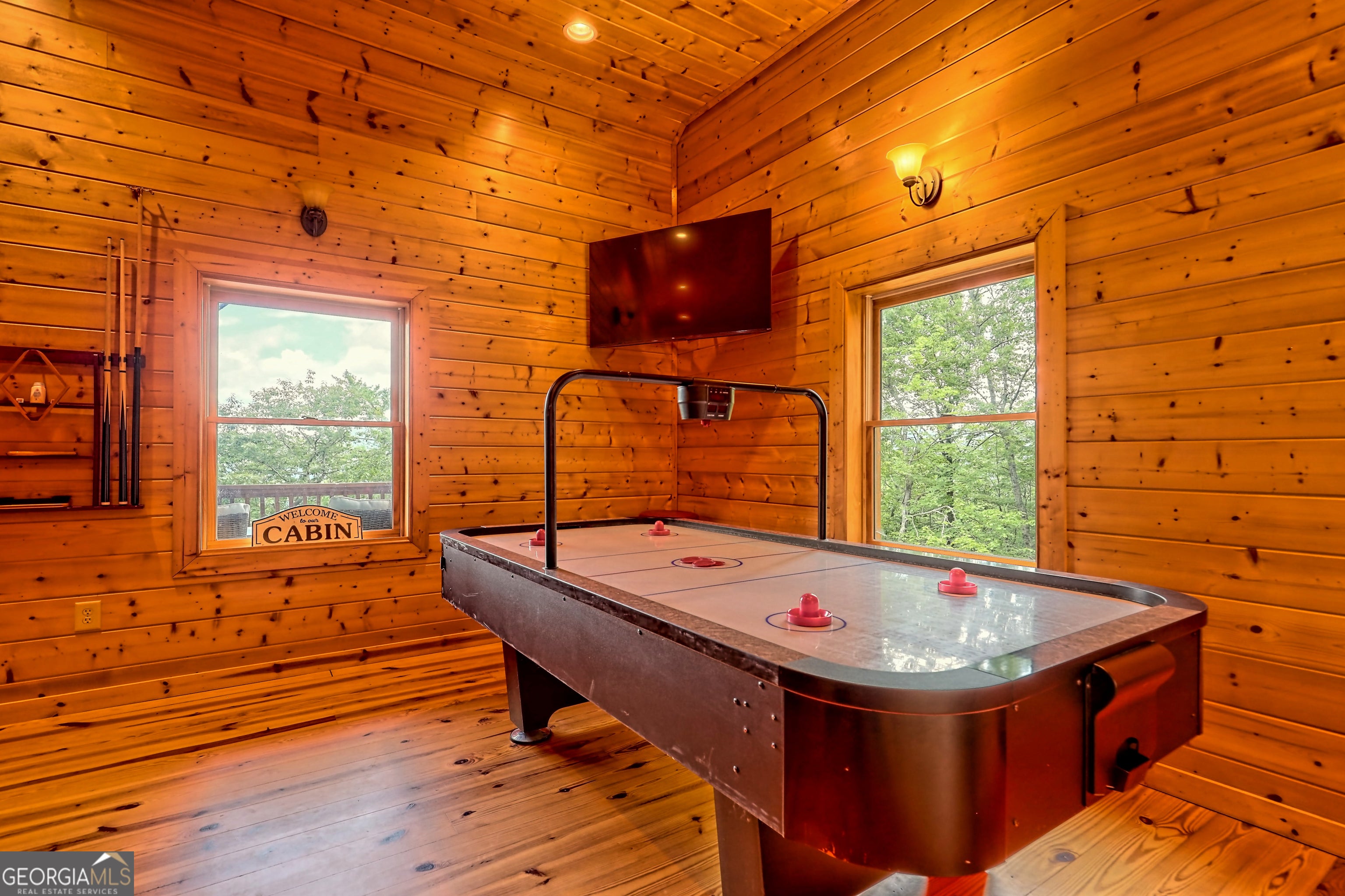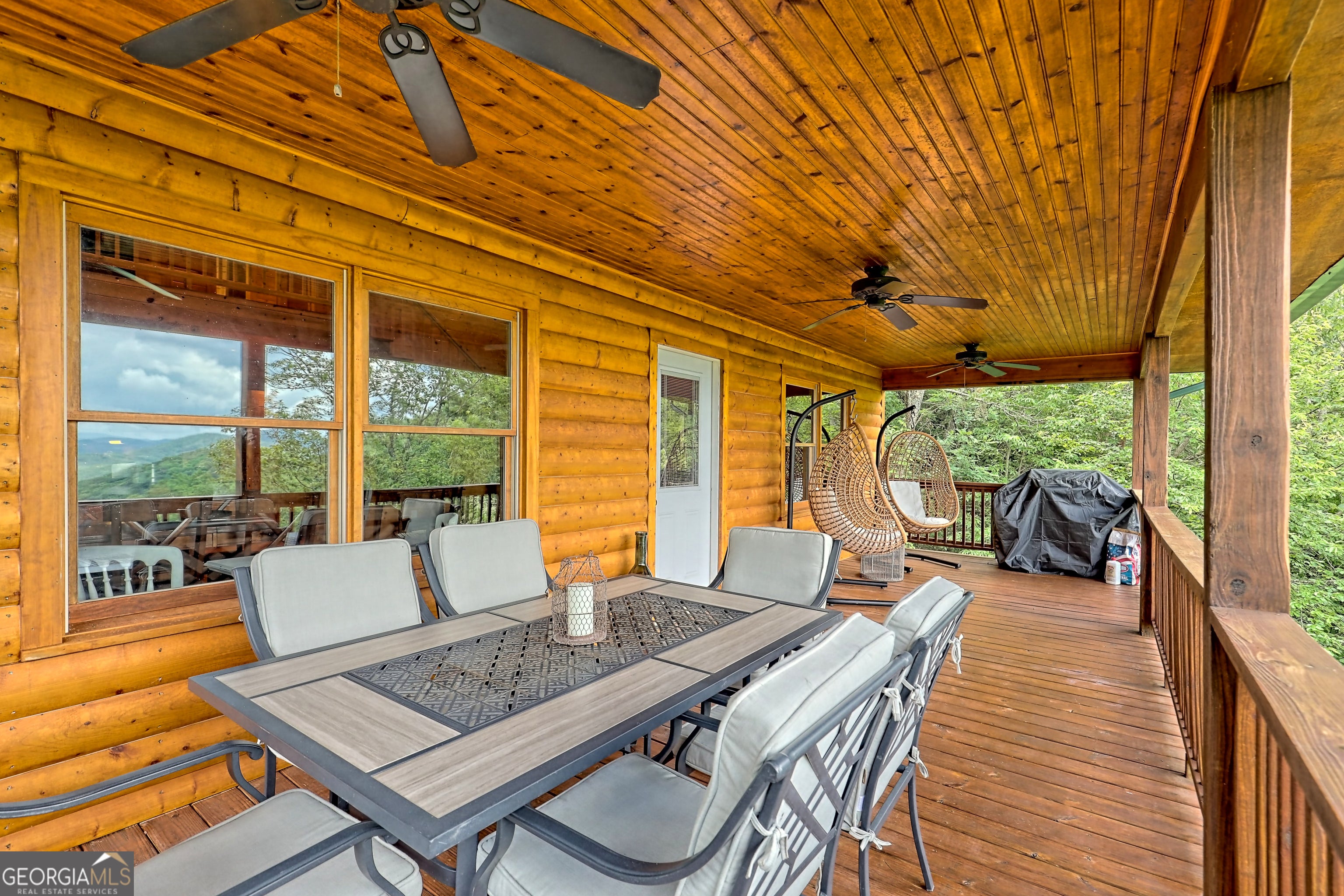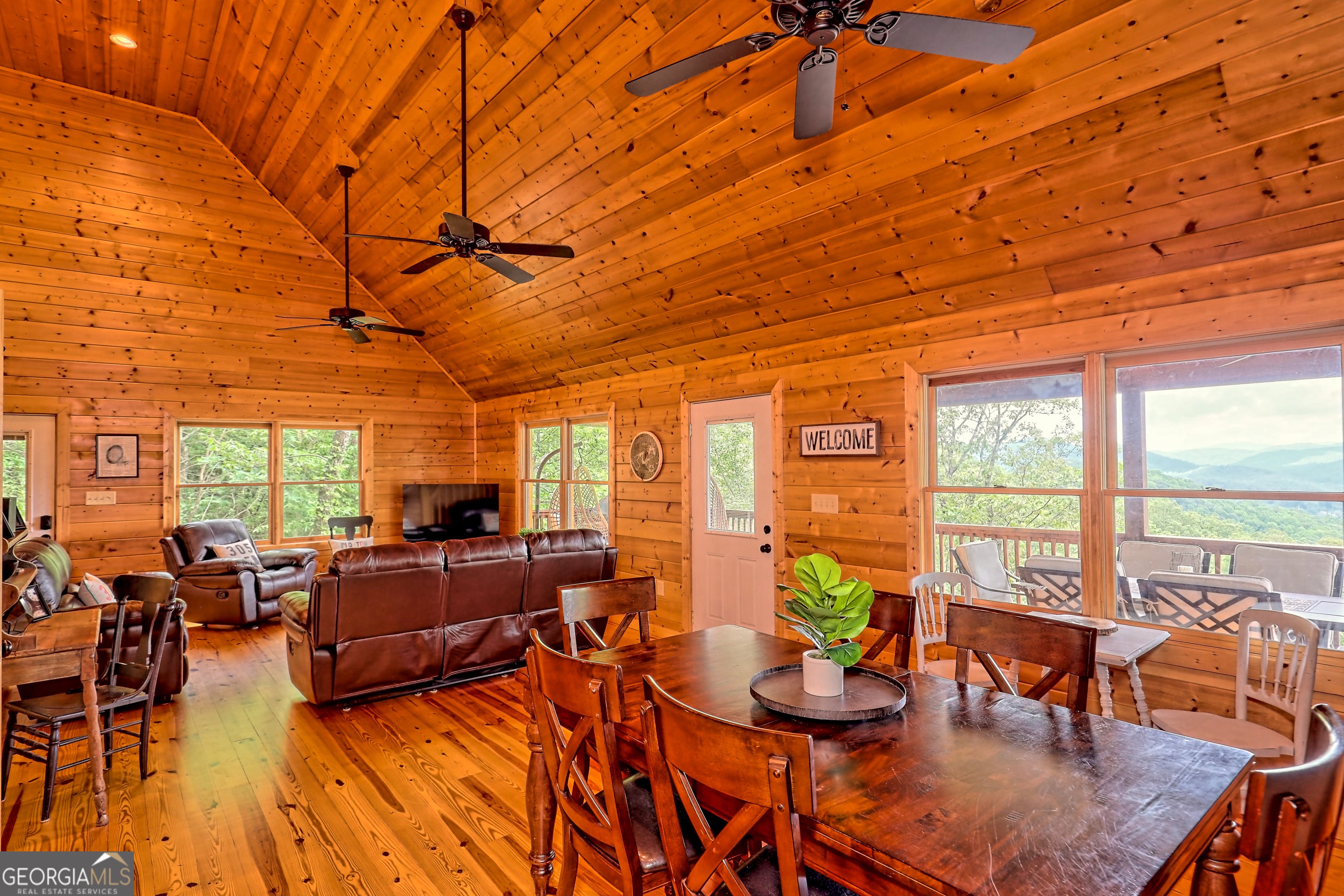 This beautifully maintained 3-bedroom, 3-bathroom [+ flex space for hobby room, office or game space] mountain cabin with a VIEW is ideally located less than 10 minutes from downtown Clayton, offering the perfect balance of convenience and tranquility. While just minutes from the heart of downtown shops, galleries and restaurants, you'll also enjoy easy access to the area's renowned outdoor attractions, including hiking trails, waterfalls, horseback riding, whitewater rafting and more. The cabin is also within close proximity to top-rated Rabun County School District, adding to its appeal for families. Custom built in 2007, this four-story cabin has been meticulously maintained and offers a warm, inviting atmosphere. As you approach the home, you'll be greeted by scenic views of both the surrounding mountains and downtown Clayton, best enjoyed from one of three expansive covered decks or the quiet side porch. The main living area features an impressive custom stone fireplace with a gas insert and a beautifully crafted concrete hearth, creating a warm focal point. The living room boasts a soaring two-story ceiling and a custom staircase with a balcony, providing a sense of openness during gatherings. On the main floor, you'll find a comfortable bedroom and a full bath, complete with a custom-tiled shower, double vanities, hard surface countertops, and custom cabinetry. For added convenience, there is also a stackable washer/dryer. Upstairs, the second floor offers two additional spacious bedrooms and a full bath, also featuring custom tile work, double vanities, and high-end finishes. If you're in need of additional space, the lower level provides a full daylight basement, perfect for a game room and entertaining space, as well as another room for flex space. This level also includes a full bath with a tiled shower and bathtub combination. With its prime location, just a 2-hour drive from Atlanta and proximity to Highlands, NC, this cabin is ideal for those seeking a retreat with easy access to both nature and nearby towns. Rabun County's beautiful lakes-Rabun, Seed, and Burton-are also within a 20-40 minute drive. This one-of-a-kind cabin is a must-see for anyone looking to experience the best of mountain living in the North Georgia area. Please make plans to schedule appts to view, as this is an active ST rental.