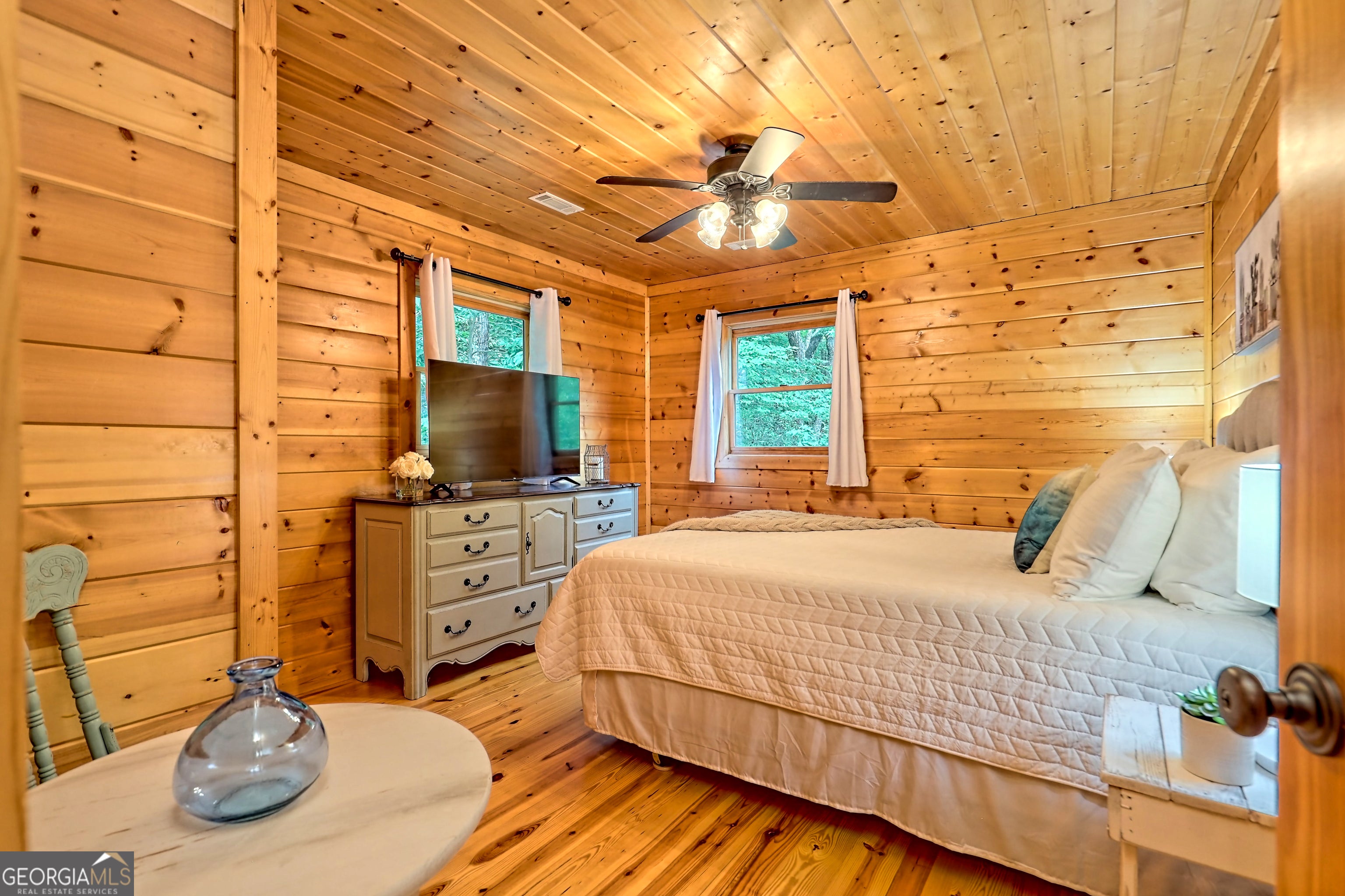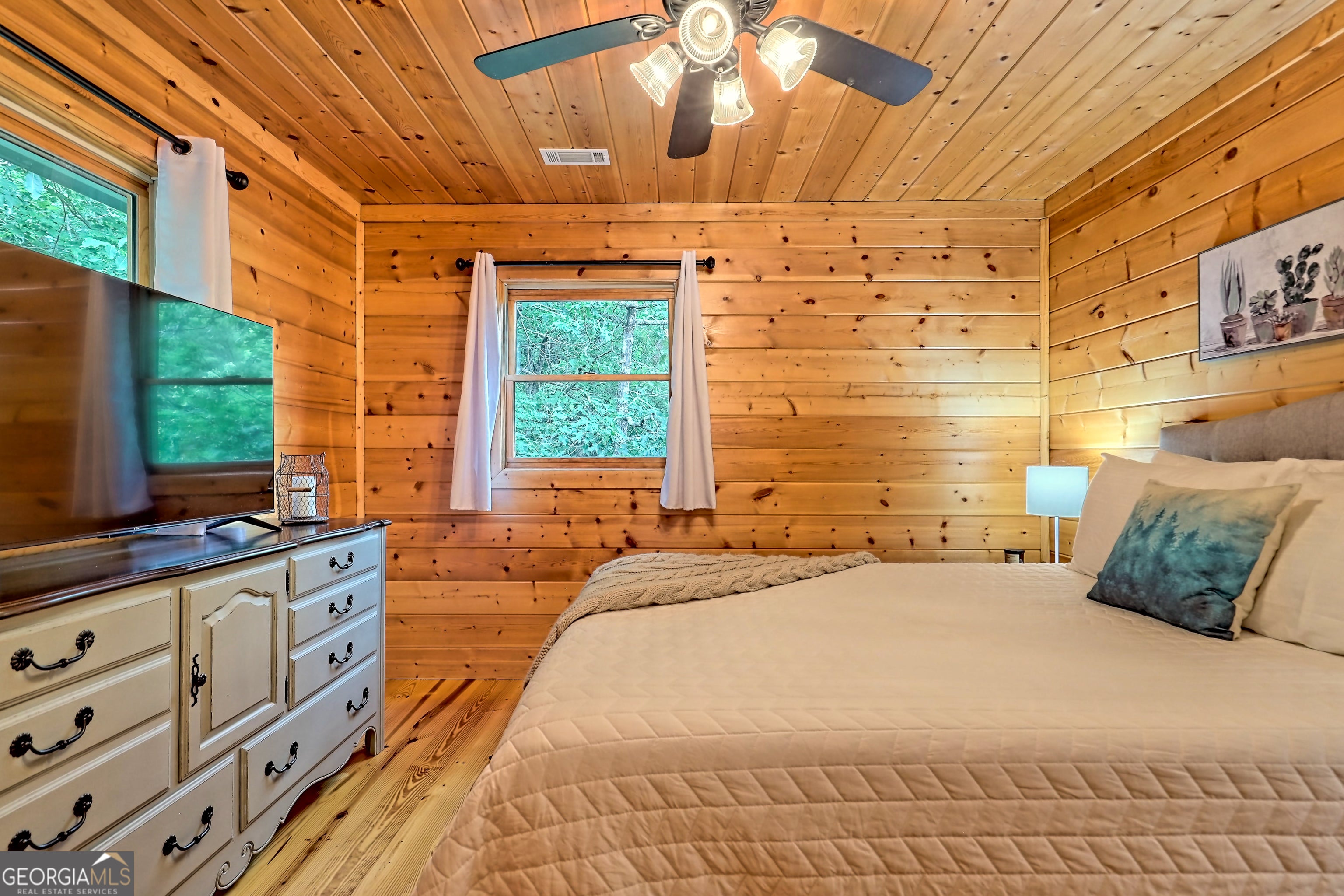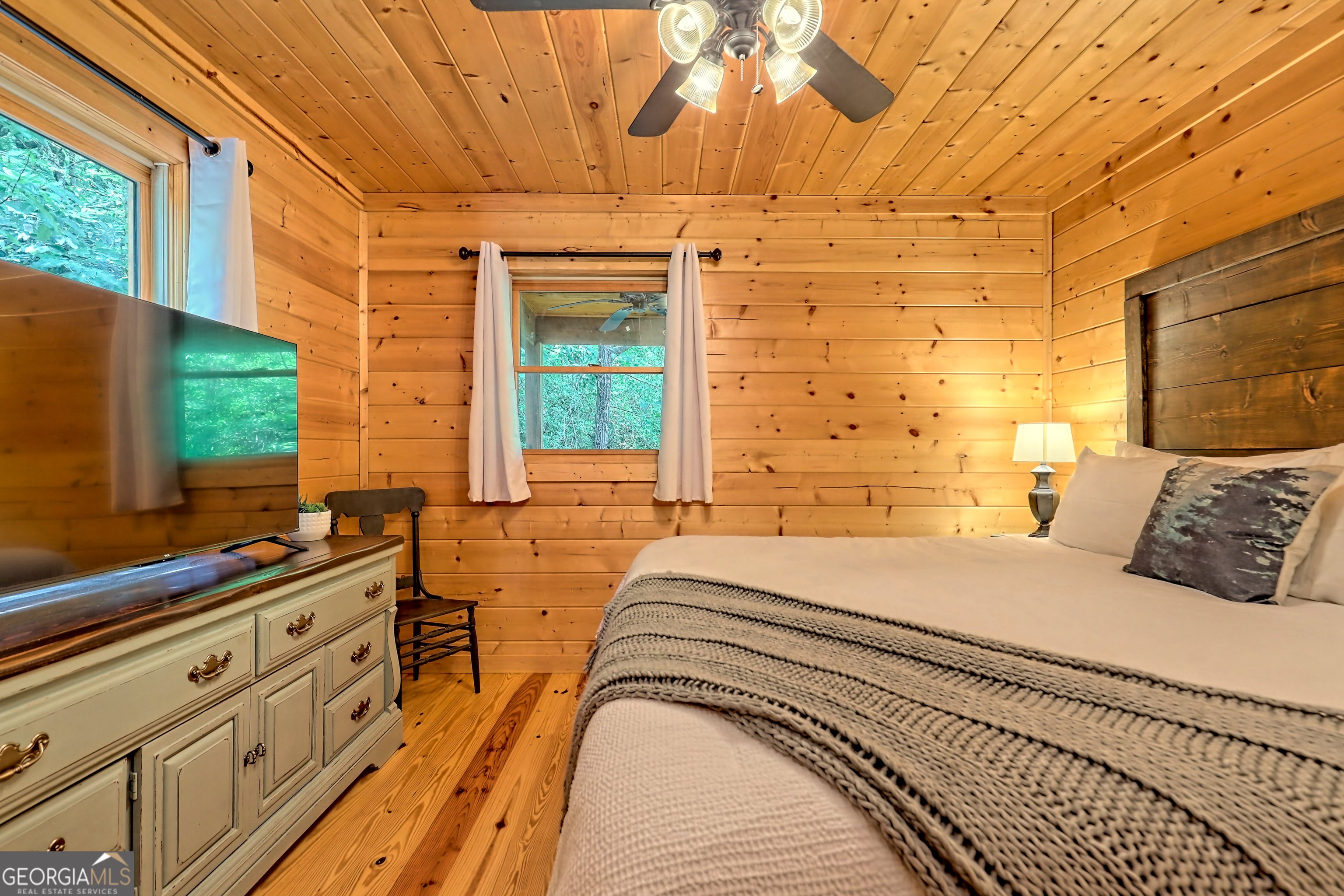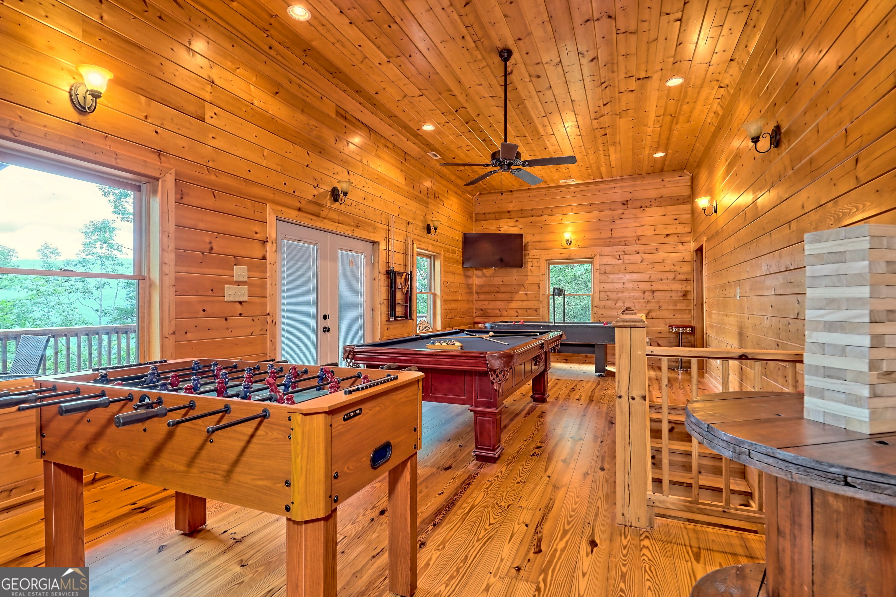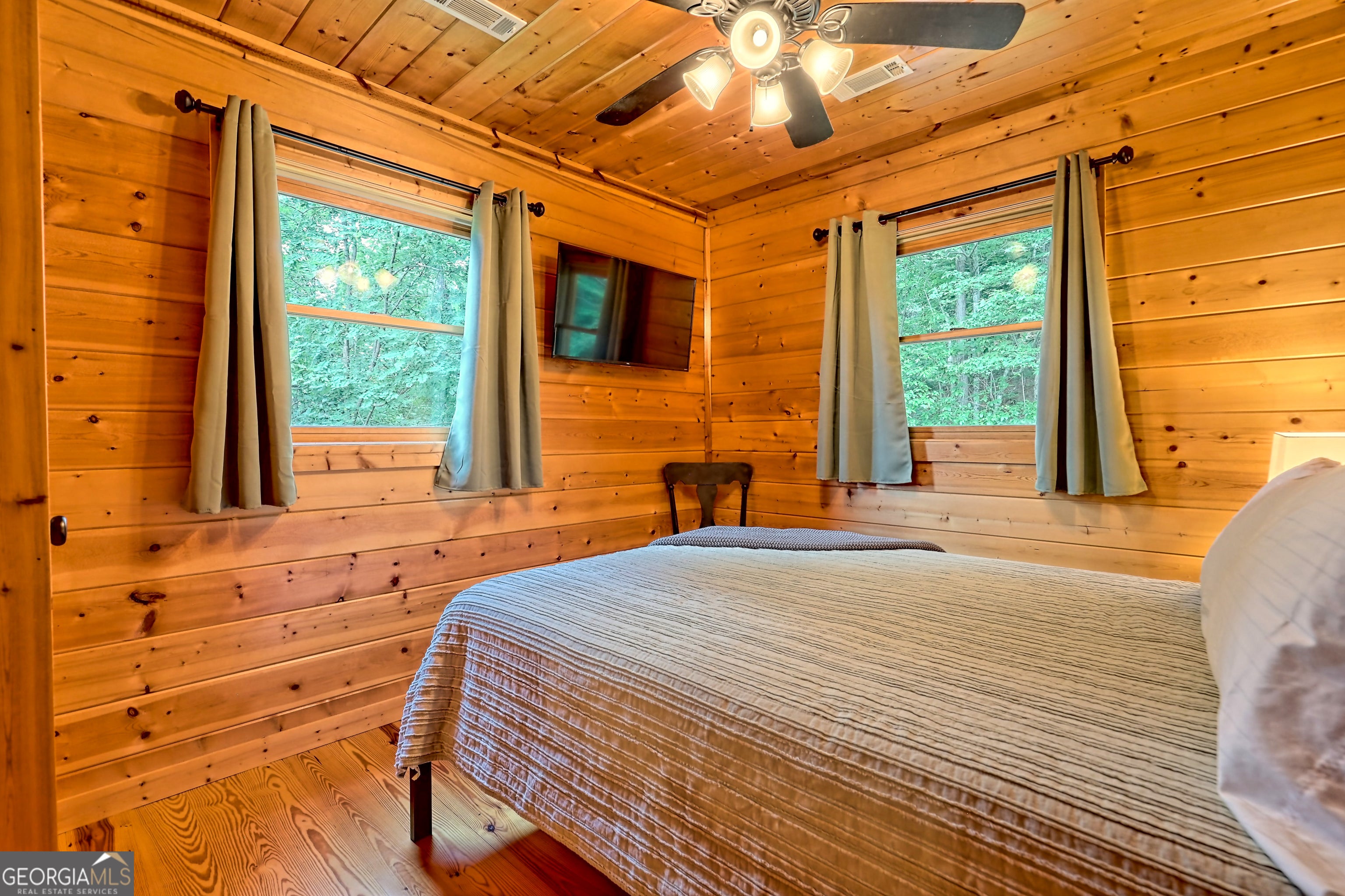 This beautifully maintained 3-bedroom, 3-bathroom [+ flex space for hobby room, office or game space] mountain cabin with a VIEW is ideally located less than 10 minutes from downtown Clayton, offering the perfect balance of convenience and tranquility. While just minutes from the heart of downtown shops, galleries and restaurants, you'll also enjoy easy access to the area's renowned outdoor attractions, including hiking trails, waterfalls, horseback riding, whitewater rafting and more. The cabin is also within close proximity to top-rated Rabun County School District, adding to its appeal for families. Custom built in 2007, this four-story cabin has been meticulously maintained and offers a warm, inviting atmosphere. As you approach the home, you'll be greeted by scenic views of both the surrounding mountains and downtown Clayton, best enjoyed from one of three expansive covered decks or the quiet side porch. The main living area features an impressive custom stone fireplace with a gas insert and a beautifully crafted concrete hearth, creating a warm focal point. The living room boasts a soaring two-story ceiling and a custom staircase with a balcony, providing a sense of openness during gatherings. On the main floor, you'll find a comfortable bedroom and a full bath, complete with a custom-tiled shower, double vanities, hard surface countertops, and custom cabinetry. For added convenience, there is also a stackable washer/dryer. Upstairs, the second floor offers two additional spacious bedrooms and a full bath, also featuring custom tile work, double vanities, and high-end finishes. If you're in need of additional space, the lower level provides a full daylight basement, perfect for a game room and entertaining space, as well as another room for flex space. This level also includes a full bath with a tiled shower and bathtub combination. With its prime location, just a 2-hour drive from Atlanta and proximity to Highlands, NC, this cabin is ideal for those seeking a retreat with easy access to both nature and nearby towns. Rabun County's beautiful lakes-Rabun, Seed, and Burton-are also within a 20-40 minute drive. This one-of-a-kind cabin is a must-see for anyone looking to experience the best of mountain living in the North Georgia area. Please make plans to schedule appts to view, as this is an active ST rental.