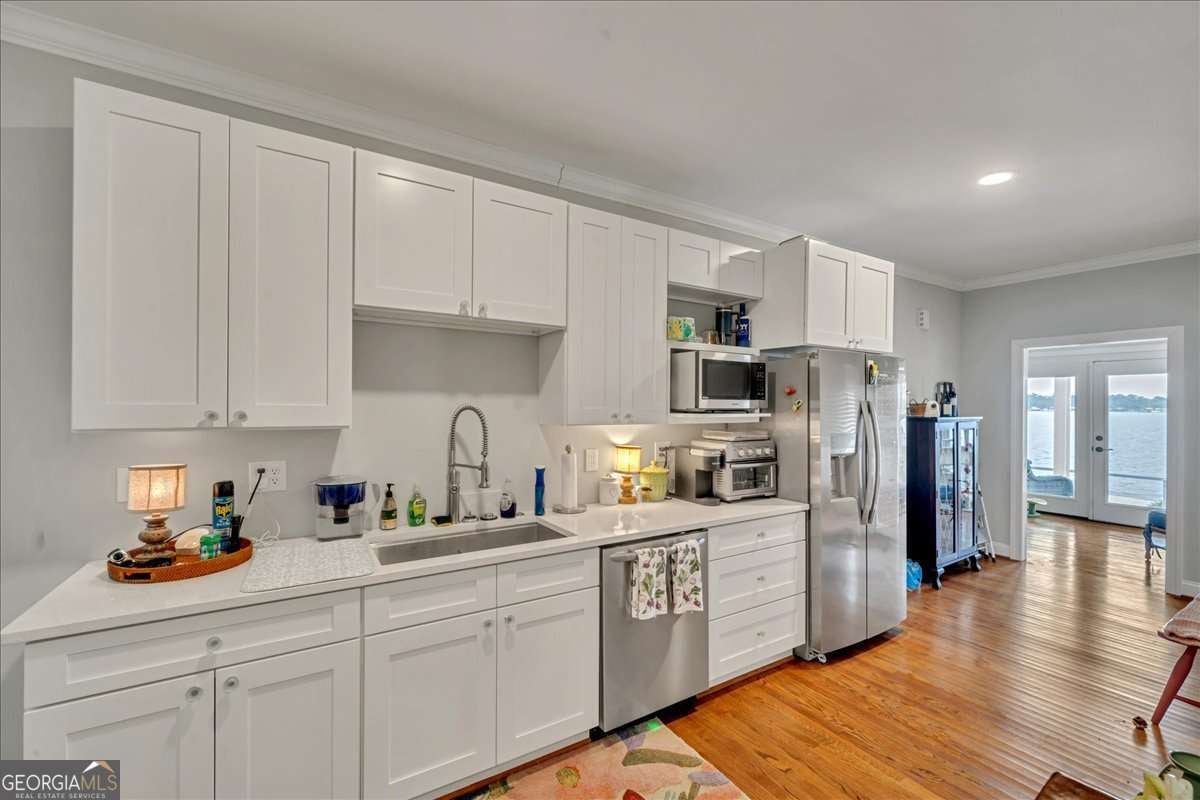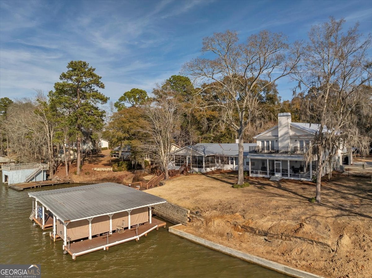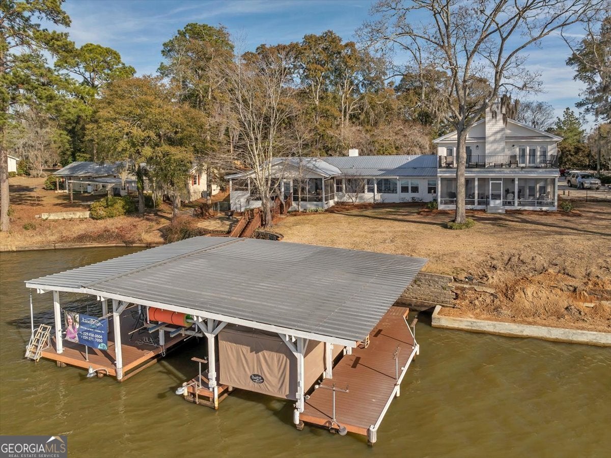Lake Blackshear's Luxury Grand Lake Home, 984 Scenic Rt, is Truly Remarkable! With over an apprx. 9200 total sq. ft. & 7000 heated, this 7 bed/5 bath remodeled home with the BEST Views of the LAKE has over 190 ft. of water frontage on .73 acres & will host the entire extended family! Fully Remodeled in 2023 the home features 4 beds/4 baths downstairs including the elegant primary room with fireplace & an office, 3 beds/1 bath upstairs, 2 full kitchens, 2 laundry areas, 2 living rooms, 3 screened in porch areas, a sunroom, & a cook house. Upper balcony, double boathouse/garage, seawall, & more!