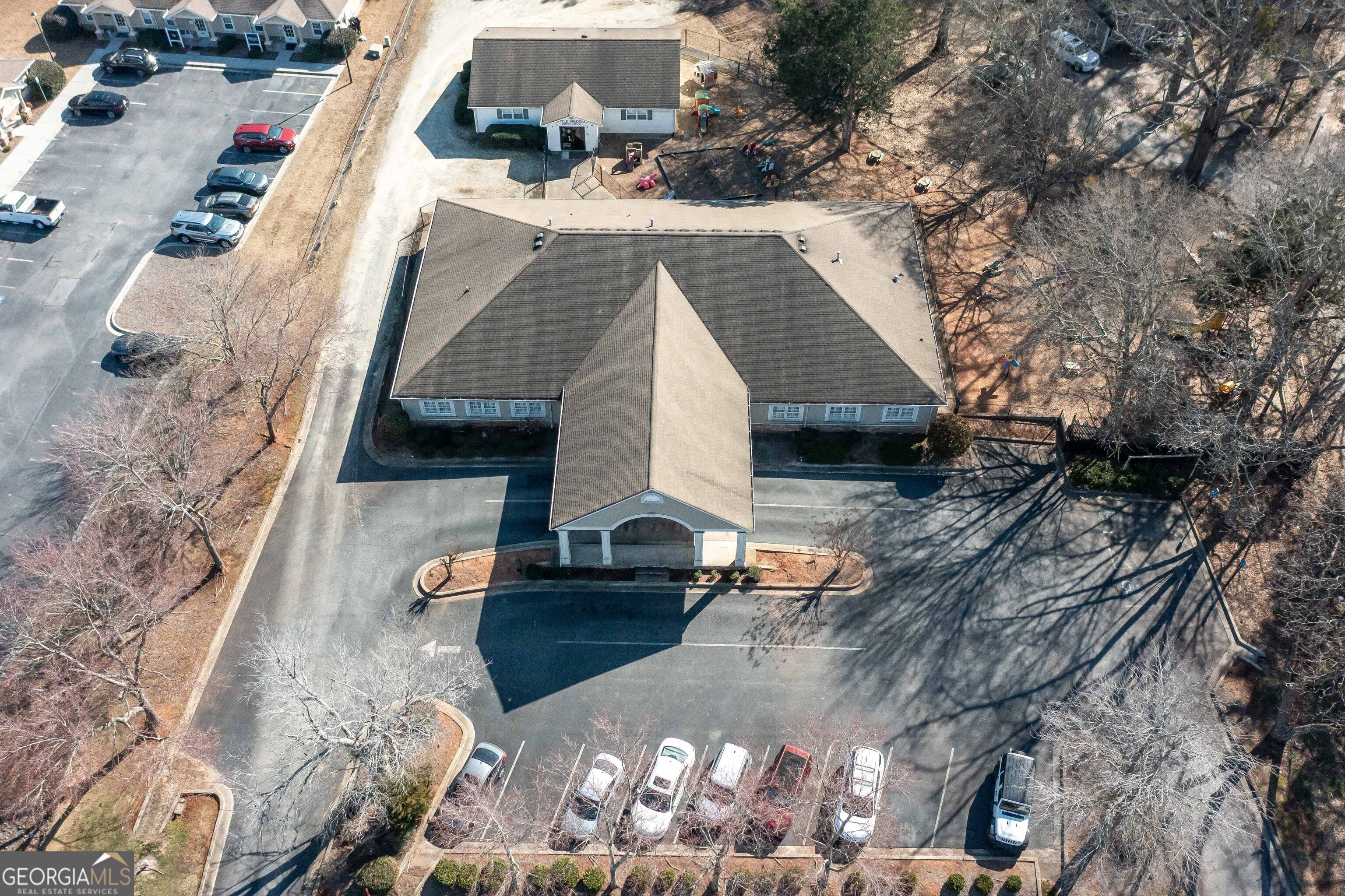 Unlimited possibilities in a great location is available for a new owner. This commercial building has no interior load bearing walls and can be customized to suit your business needs. Business is not included in list price. Currently operating as a daycare licensed for 146 children. Current layout includes a lobby, reception area, private office with bathroom, classrooms with bathrooms and access to playground areas and full kitchen are in the main building. Second detached building has lobby area, classrooms with bathroom, storage closet and access to playground. Two fenced playroom areas. Private paved parking with 12 parking spots, covered drop out/pickup for customers and clients, additional gravel parking located in rear of main building. Easy access to I-20, Highway 61 and Highway 101. Directly across from Villa Rica City Hall, Post Office, banking and more.