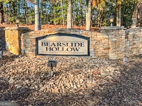 Price Reduced! Beautiful 2.38 acre lot located in fabulous BEARSLIDE HOLLOW is available for you right now!!! If you've been waiting for the perfect property to build your dream home on, the wait is OVER! This "double lot" is overflowing with hardwoods and pines on a very buildable lot. A quiet stream borders the property on the back side. Conveniently located in Bearslide Hollow, on a quiet cul de sac, this property is perfect for your mountain home. This lot is one of the last available in this beautiful, established neighborhood located conveniently between Dahlonega and Dawsonville. Bring your builder! The owner has survey and soil tests to share with buyers. Call today for your private showing.