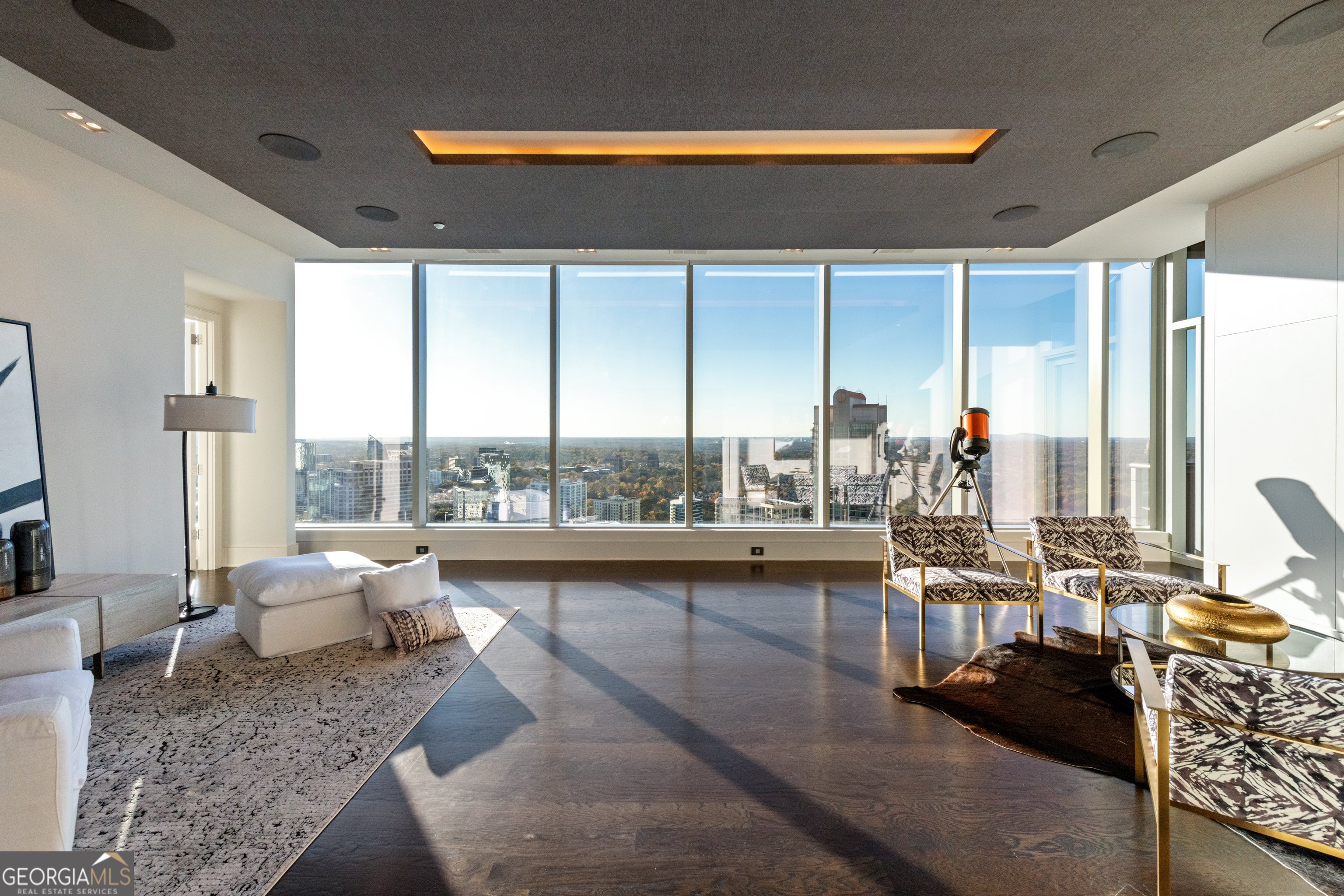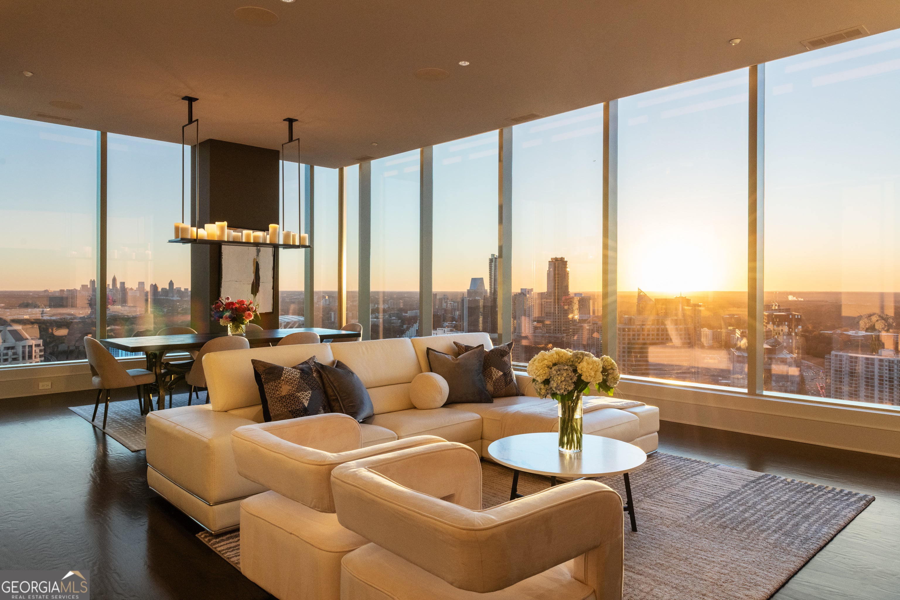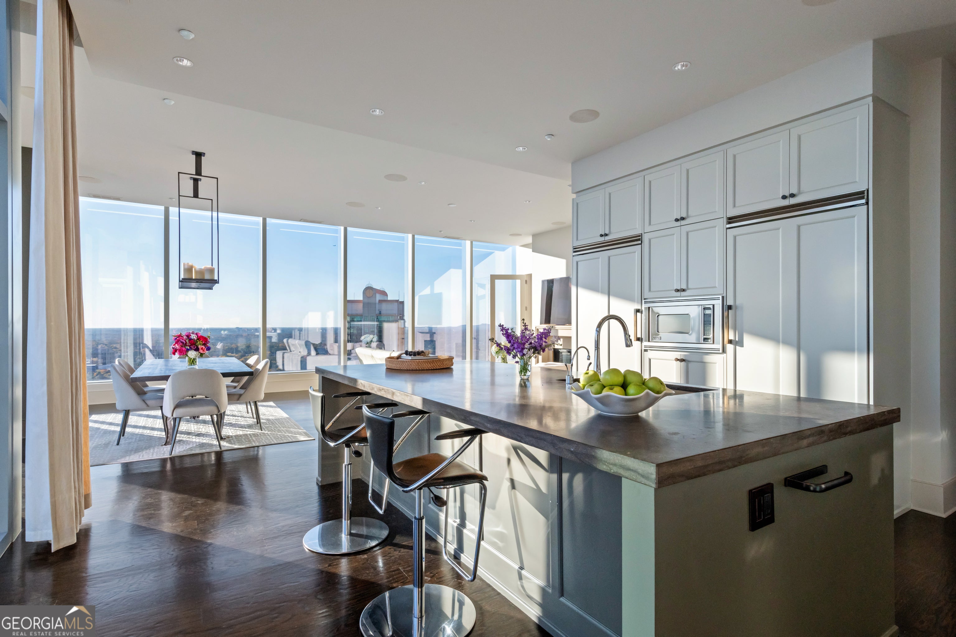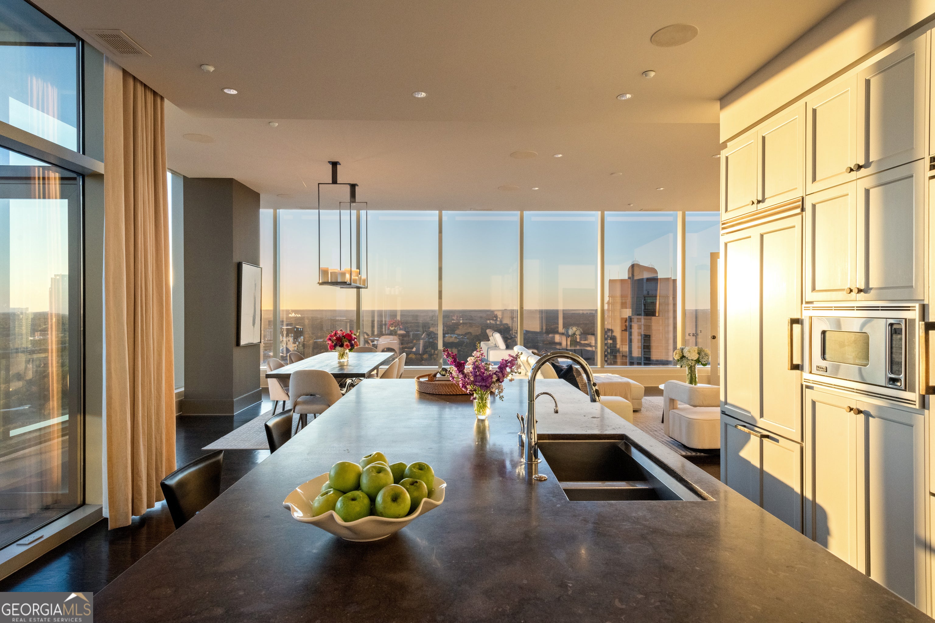 Sophisticated Buckhead Penthouse with Unrivaled Privacy, Views, and Entertaining Spaces. Experience a haven of opulence where the legendary Ritz-Carlton service defines your daily life. This extraordinary residence showcases the masterful interior design of Robert Brown, one of Atlanta's most celebrated designers whose sophisticated aesthetic and timeless vision have earned him Veranda magazine's Southeastern Designer of the Year and over twenty American Society of Interior Designers (ASID) awards. From attentive concierge assistance to in-residence dining and a dedicated residential management team, every detail is curated to ensure unparalleled privacy, comfort, and convenience. Step into a world of timeless luxury perched on the prestigious 34th floor. This exclusive penthouse-one of only two residences on this top level-offers a sanctuary above the city. With 3 bedrooms, an office, and 3.5 bathrooms, this elevated retreat redefines elegance and sophistication. Expansive, unobstructed 270-degree panoramic views capture Atlanta's diverse beauty, including sweeping vistas of the Perimeter Area, Brookhaven, Buckhead, Midtown and Downtown Skylines, Stone Mountain, and iconic landmarks like Kennesaw Mountain. Each sunset casts a masterpiece of color across your windows, drawing you into a moment of awe and reflection at the breathtaking spectacle. The primary suite is a serene sanctuary, complete with a private seating area and elegant fireplace. Enveloped in tranquility, the spa-like ensuite bathroom boasts heated marble floors and luxurious finishes. Dual vanity areas and two expansive walk-in closets create an indulgent, personal retreat that whispers comfort and sophistication. Each additional bedroom is designed as a private oasis, offering en-suite bathrooms with exquisite marble finishes. Every corner of this home radiates with warmth and refined detail, providing unparalleled comfort for family and guests. A private office with rich wood-paneled walls offers an inspiring workspace framed by stunning skyline views. Feel the luxury of seamlessly connecting to your home through a premier Savant home automation, allowing effortless control of blinds, drapes, lighting, thermostats, and entertainment systems. At the touch of a button, transform the atmosphere to match your mood, whether it's a cozy evening in or a vibrant gathering of friends. Designed with entertaining in mind, the residence boasts an expansive gathering space. A stylish bar with a large wine fridge complements the floor-to-ceiling windows, which frame spectacular views. Two private balconies provide the perfect escape to enjoy a morning coffee or unwind with a glass of wine beneath the stars. The open-concept living area harmoniously blends a welcoming living room with a fireplace and a chef's kitchen outfitted with top-tier Viking appliances. Every detail elevates your hosting experience-a celebration of taste, style, and connection. Further amenities include: o A resort-style pool, updated fitness center, massage room, and outdoor grilling and gathering areas for unparalleled relaxation. o Two private guest suites for visitors, ensuring their stay is as luxurious as yours. o Four secure parking spaces with valet service and two private, climate-controlled storage rooms for added convenience. Situated in the heart of Buckhead, this penthouse offers unmatched proximity to fine dining, luxury retail, and Atlanta's most coveted attractions. More than just a residence, this home is a testament to the art of living well. From the award-winning design sensibilities of Robert Brown to the legendary Ritz-Carlton service, every moment in this extraordinary space feels like a masterpiece of urban luxury. Discover the life you deserve. Let this penthouse redefine what home means to you-where breathtaking beauty, unrivaled privacy, and world-class service converge into an experience that transcends the ordinary.