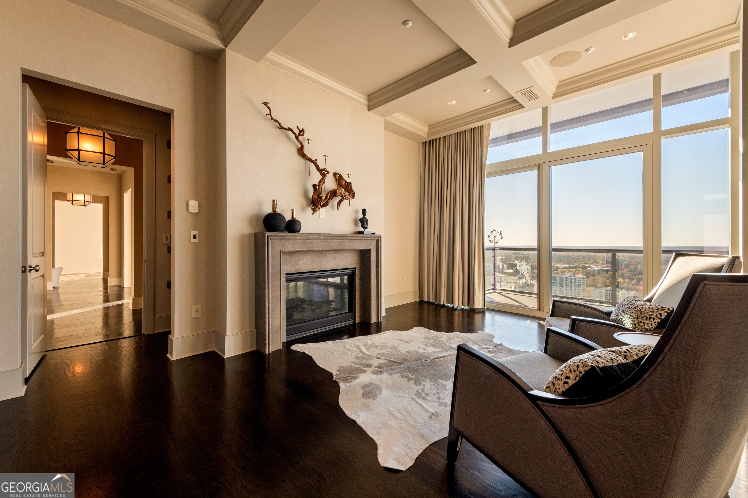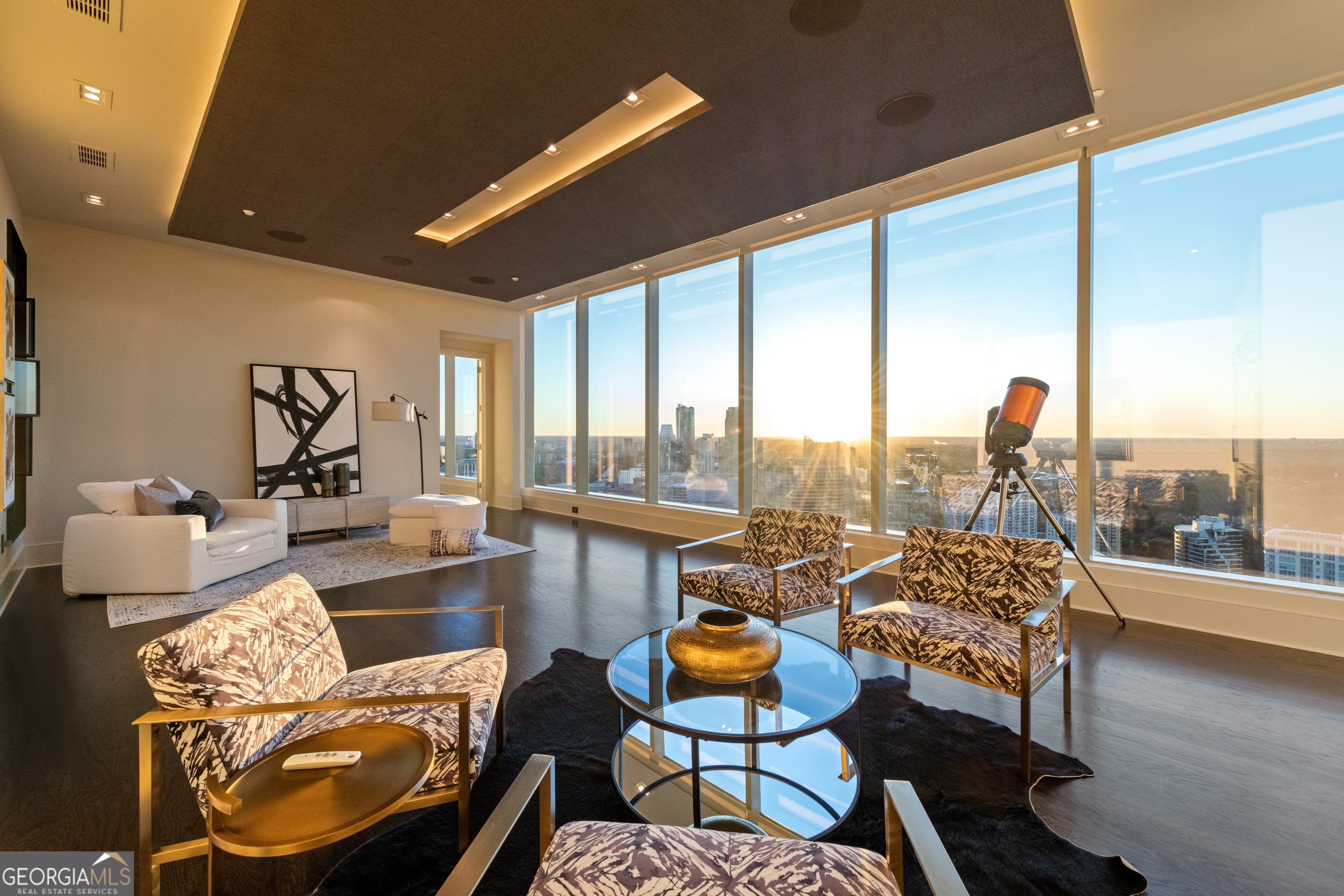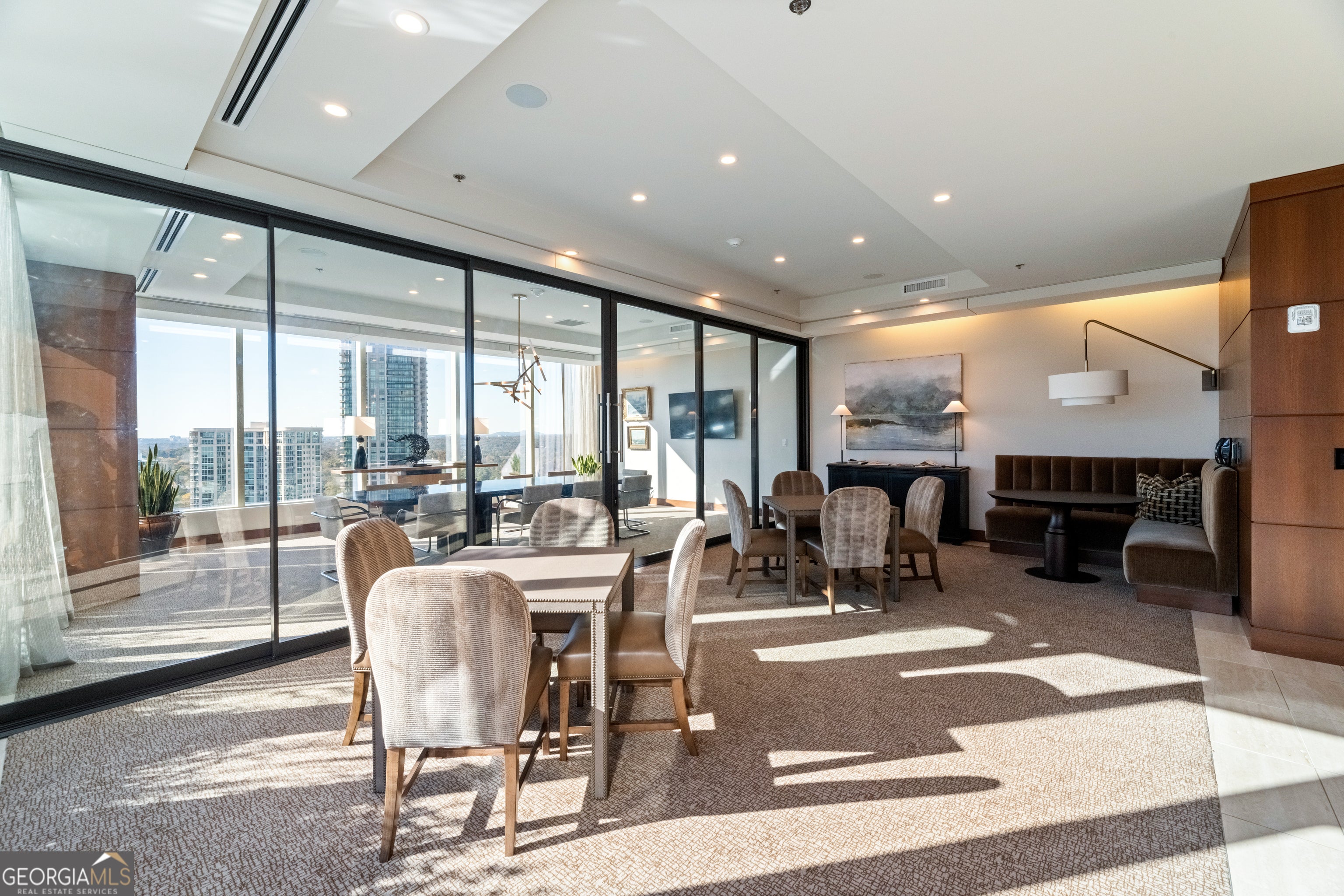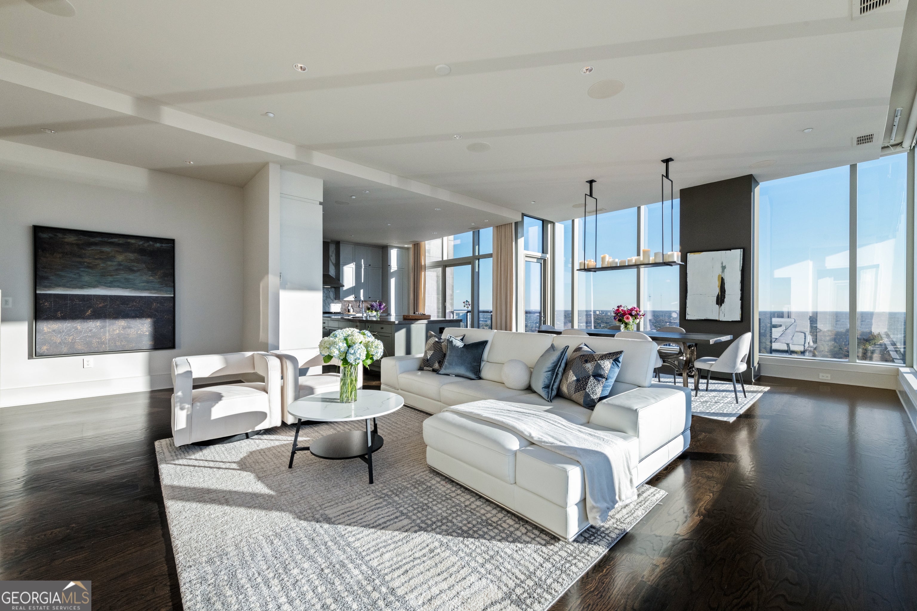 Sophisticated Buckhead Penthouse with Unrivaled Privacy, Views, and Entertaining Spaces. Experience a haven of opulence where the legendary Ritz-Carlton service defines your daily life. This extraordinary residence showcases the masterful interior design of Robert Brown, one of Atlanta's most celebrated designers whose sophisticated aesthetic and timeless vision have earned him Veranda magazine's Southeastern Designer of the Year and over twenty American Society of Interior Designers (ASID) awards. From attentive concierge assistance to in-residence dining and a dedicated residential management team, every detail is curated to ensure unparalleled privacy, comfort, and convenience. Step into a world of timeless luxury perched on the prestigious 34th floor. This exclusive penthouse-one of only two residences on this top level-offers a sanctuary above the city. With 3 bedrooms, an office, and 3.5 bathrooms, this elevated retreat redefines elegance and sophistication. Expansive, unobstructed 270-degree panoramic views capture Atlanta's diverse beauty, including sweeping vistas of the Perimeter Area, Brookhaven, Buckhead, Midtown and Downtown Skylines, Stone Mountain, and iconic landmarks like Kennesaw Mountain. Each sunset casts a masterpiece of color across your windows, drawing you into a moment of awe and reflection at the breathtaking spectacle. The primary suite is a serene sanctuary, complete with a private seating area and elegant fireplace. Enveloped in tranquility, the spa-like ensuite bathroom boasts heated marble floors and luxurious finishes. Dual vanity areas and two expansive walk-in closets create an indulgent, personal retreat that whispers comfort and sophistication. Each additional bedroom is designed as a private oasis, offering en-suite bathrooms with exquisite marble finishes. Every corner of this home radiates with warmth and refined detail, providing unparalleled comfort for family and guests. A private office with rich wood-paneled walls offers an inspiring workspace framed by stunning skyline views. Feel the luxury of seamlessly connecting to your home through a premier Savant home automation, allowing effortless control of blinds, drapes, lighting, thermostats, and entertainment systems. At the touch of a button, transform the atmosphere to match your mood, whether it's a cozy evening in or a vibrant gathering of friends. Designed with entertaining in mind, the residence boasts an expansive gathering space. A stylish bar with a large wine fridge complements the floor-to-ceiling windows, which frame spectacular views. Two private balconies provide the perfect escape to enjoy a morning coffee or unwind with a glass of wine beneath the stars. The open-concept living area harmoniously blends a welcoming living room with a fireplace and a chef's kitchen outfitted with top-tier Viking appliances. Every detail elevates your hosting experience-a celebration of taste, style, and connection. Further amenities include: o A resort-style pool, updated fitness center, massage room, and outdoor grilling and gathering areas for unparalleled relaxation. o Two private guest suites for visitors, ensuring their stay is as luxurious as yours. o Four secure parking spaces with valet service and two private, climate-controlled storage rooms for added convenience. Situated in the heart of Buckhead, this penthouse offers unmatched proximity to fine dining, luxury retail, and Atlanta's most coveted attractions. More than just a residence, this home is a testament to the art of living well. From the award-winning design sensibilities of Robert Brown to the legendary Ritz-Carlton service, every moment in this extraordinary space feels like a masterpiece of urban luxury. Discover the life you deserve. Let this penthouse redefine what home means to you-where breathtaking beauty, unrivaled privacy, and world-class service converge into an experience that transcends the ordinary.