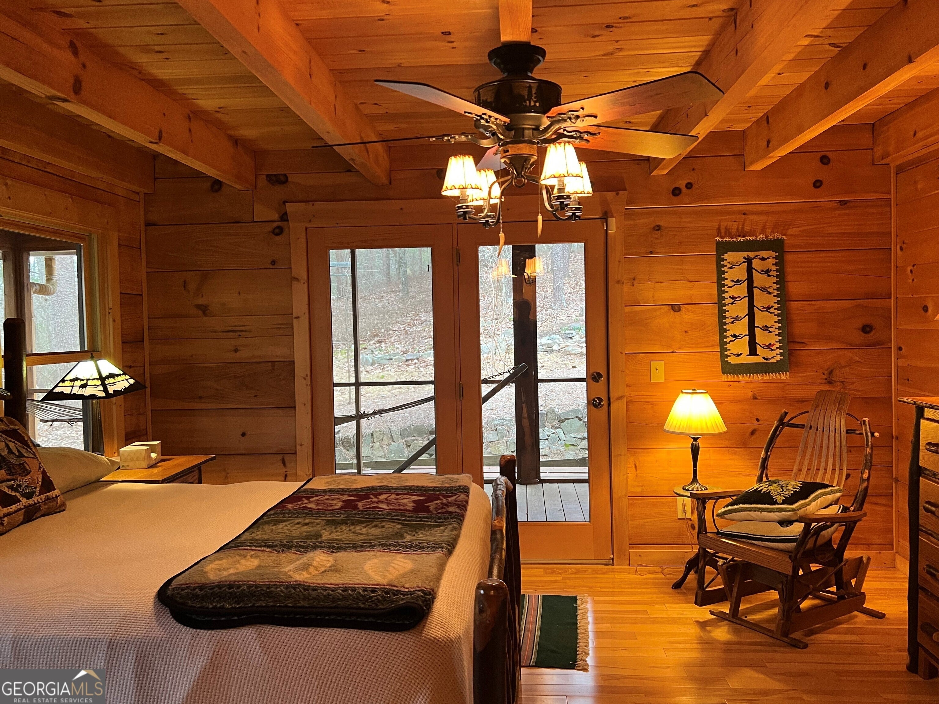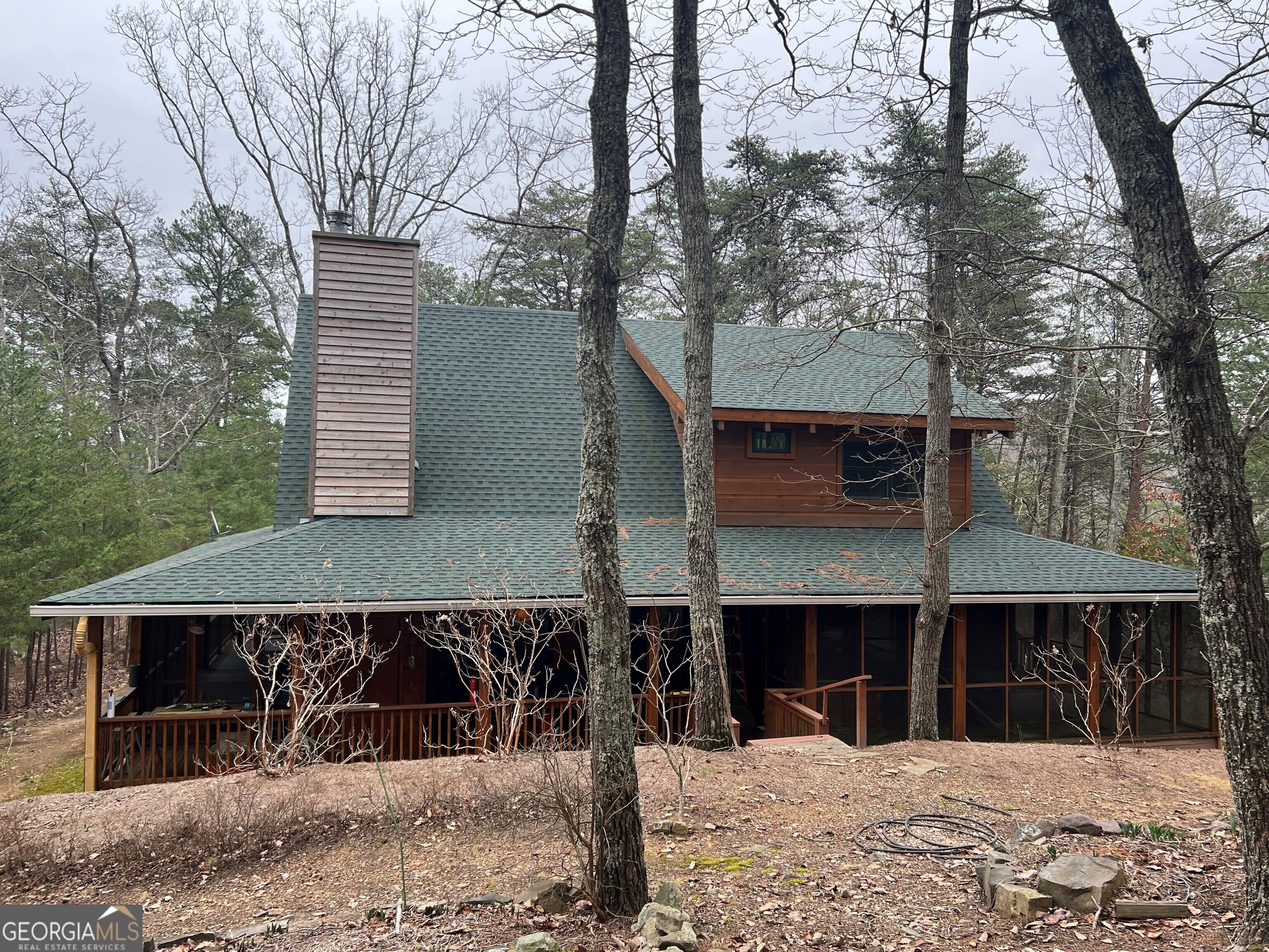 Beautiful log home in Big Texas Valley, situated on 73 acres of gorgeous hardwood timber. 1974 sq ft of heated and cooled living area, with a covered wrap-around porch on all four sides, with two screened areas. Built in 2006, this home is all wood interior and offers 3 bedrooms, 2 1/2 baths, with a large kitchen and family room with a fireplace and vaulted ceiling. There's also a spacious finished loft for games, reading or just relaxing. All inside furnishings remain with the property. This property is situated on both sides of Simms Mountain, with 73 acres in Floyd County. There is an additional 95 acres on the west side of Simms Mountain in Chattooga County that is available to purchase. The three parcels in Floyd County are Map D10-002, D10-003 & D11-002A.