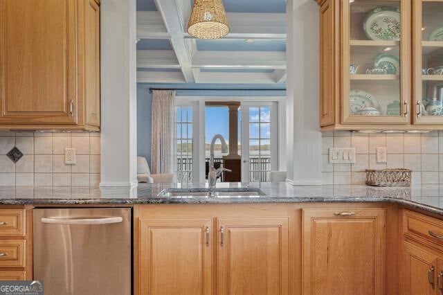 - Interior FeaturesBeamed Ceilings, Double Vanity, High Ceilings, Master On Main Level, Roommate Plan, Separate Shower, Tile Bath, Vaulted Ceiling(s), Walk-In Closet(s), Wet Bar, Soaking Tub, Rear Stairs, Split Bedroom Plan, Tray Ceiling(s), Whirlpool Bath