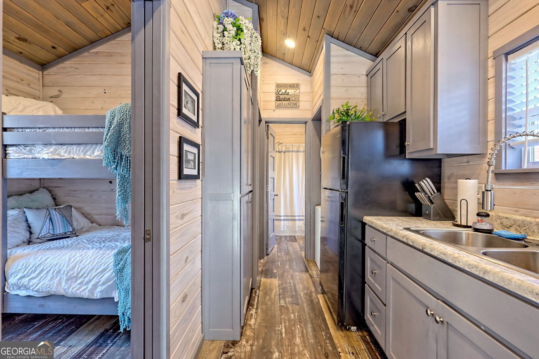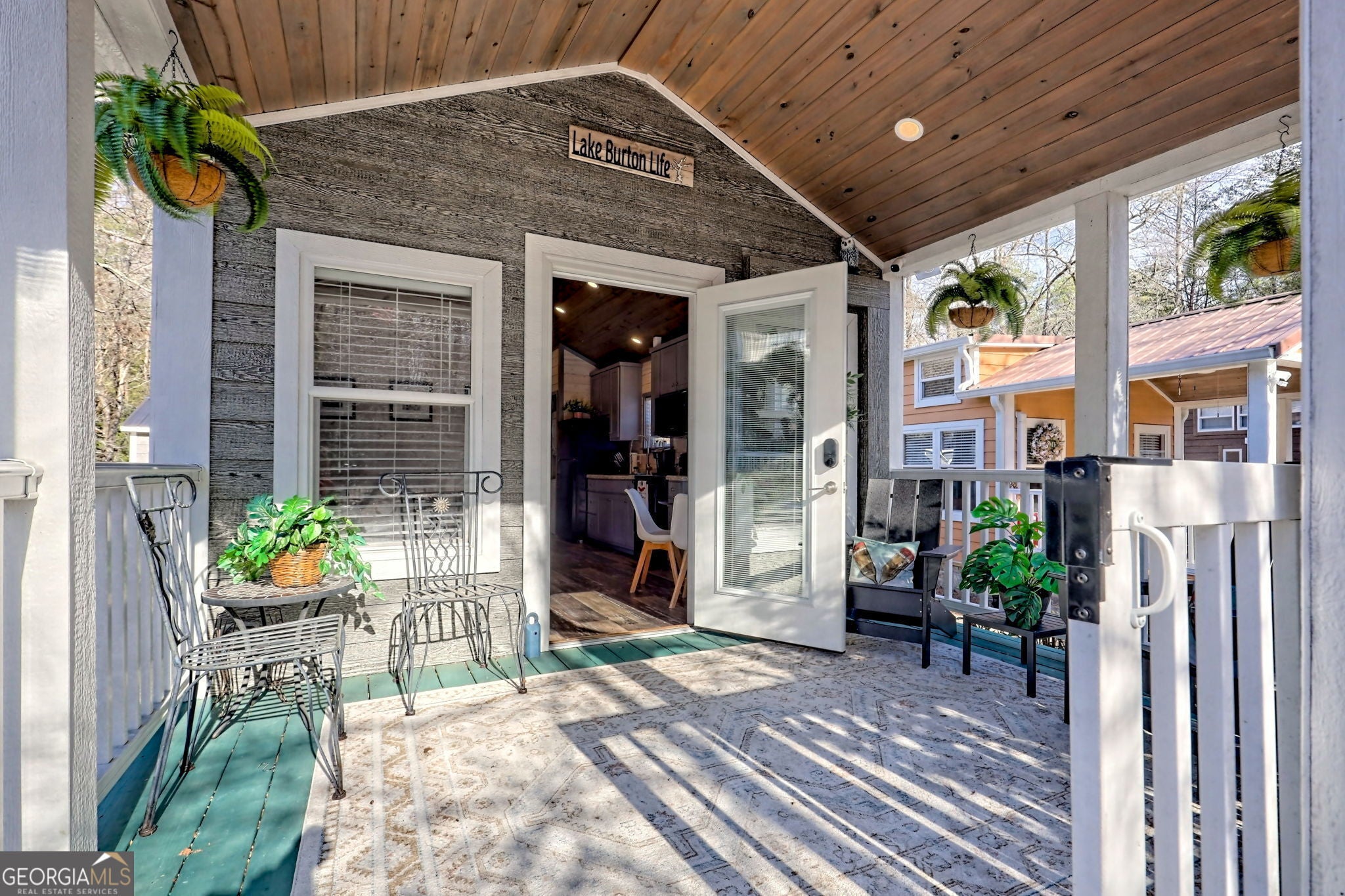 Charming tiny home at the upscale, gated Sugar Mill Creek community located minutes from Lake Burton. This coveted 2bed/1bath floor plan also features a covered front porch and a near-finished shed with new LVP floor, lighting, shelving, and ceiling fan. Shed would make a perfect workshop, art/yoga studio. This home is located on a premium lot within the community with a large backyard overlooking the creek and is across from the gorgeous clubhouse featuring an outdoor bar, pool table, lounge areas, firepits. You will be amazed by the spacious feel created by the thoughtfully designed floor plan and impressed with the modern touches of the finishes and accents throughout. Active surveillance/camera system, keypad entry. All furnishings/patio furniture are included. The community is pet-friendly with a dog run on the premises. This would make a great investment property, Airbnb, full-time, or vacation home. Owner financing available. Water, septic, trash, grounds maintenance and more included in monthly fees. Schedule a showing today and discover the possibilities of tiny living! Sugar Mill Creek at Lake Burton is a private, gated, resort-style community with 51 park model tiny home sites over the 12-acre property. The community is sure to impress, offering a Dog Park, a Clubhouse on the Property, Outside Fire Pits, Community-Sponsored Events, Streams Throughout the Property, Private Driveways and Parking, & and a Nearby Marina for Lake Access. Fiber Internet was recently installed throughout the community. It is conveniently located near Lake Burton, Laprades Marina, Moccasin Creek State Park, and several "local" restaurants, and is perfectly situated between Clayton, Helen, and Clarkesville, Georgia. Agent must be present at all showings. Call for gate code.