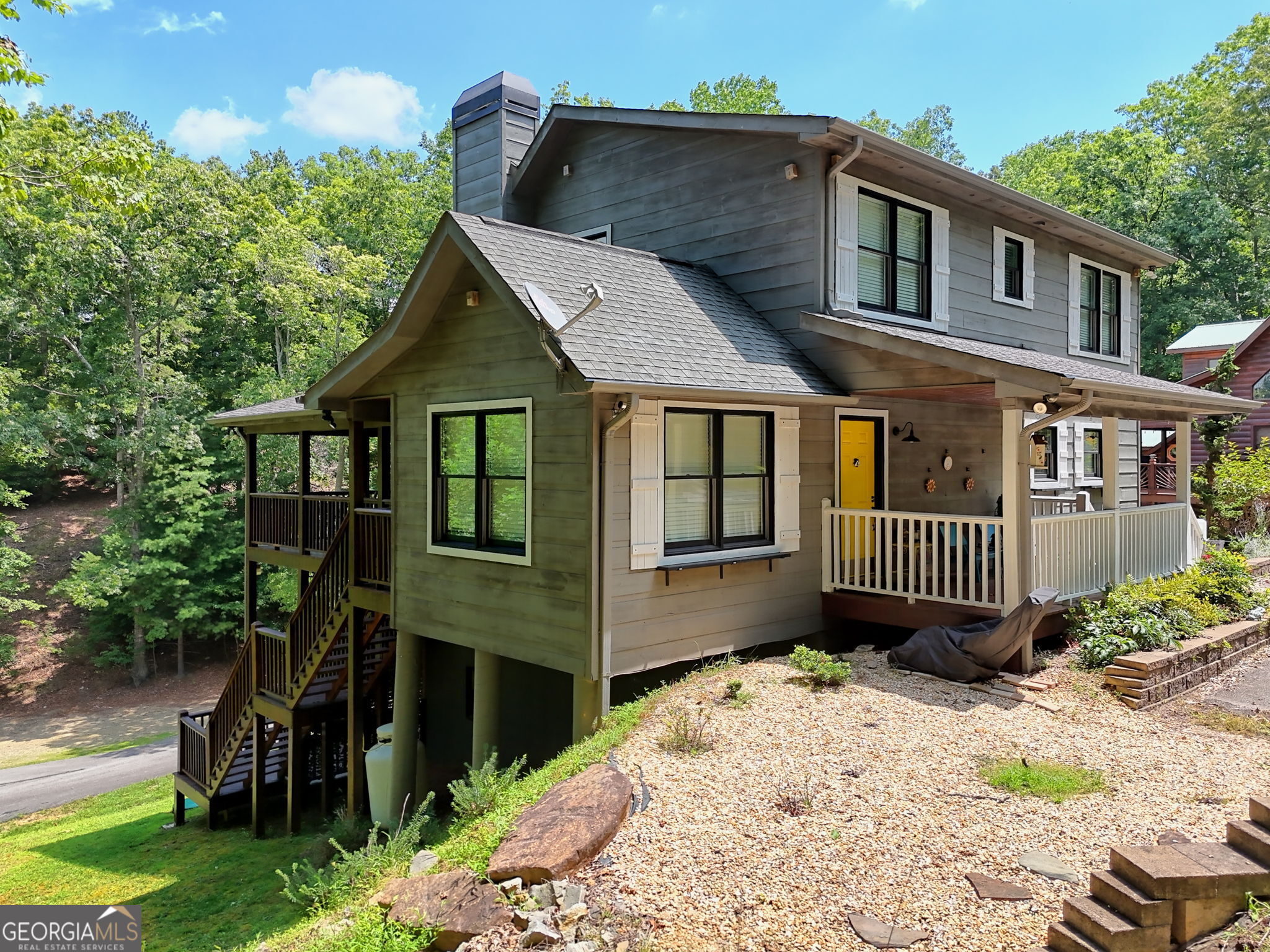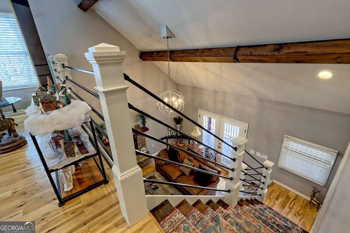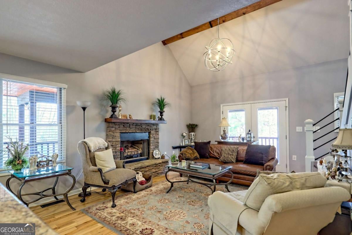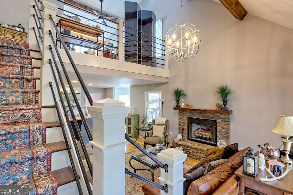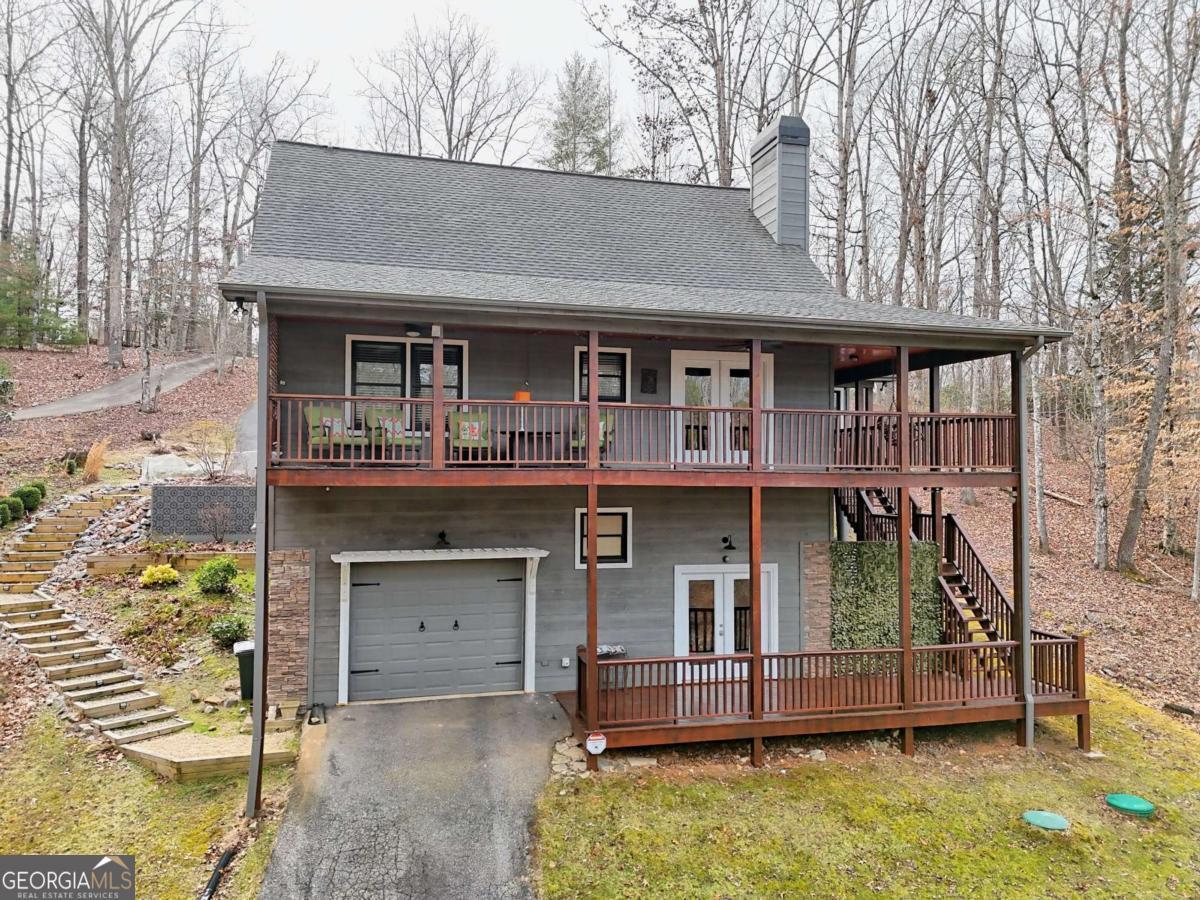 Significant Price Adjustment-Schedule Your Showing Today! Perched on a picturesque hillside as close to the lake as you can get, this stunning cottage-chic home in the desirable Eagle Bend community offers effortless access for canoes, kayaks, and easy boat launching on Lake Nottely. With breathtaking water views, this home perfectly blends rustic charm with modern elegance. Thoughtfully designed with soaring exposed-beam ceilings, crisp white shiplap, and stylish barn door accents, it creates a warm and inviting atmosphere. The beautifully appointed kitchen features sleek open shelving, a dedicated coffee bar, and a spacious island-ideal for entertaining. The sun-drenched upstairs loft adds to the home's airy ambiance, while generously sized bathrooms on every level ensure comfort and convenience. The immaculate basement provides additional living and recreational space, seamlessly flowing into the expansive outdoor entertaining areas. Whether enjoying peaceful mornings on the porch or hosting gatherings with friends and family, this home embraces the sought-after lakeside lifestyle. Note: The third bedroom is a flexible space, ideal for an office, guest room, or additional living area.