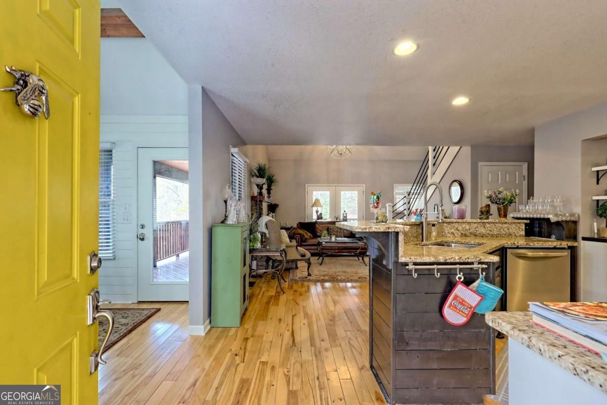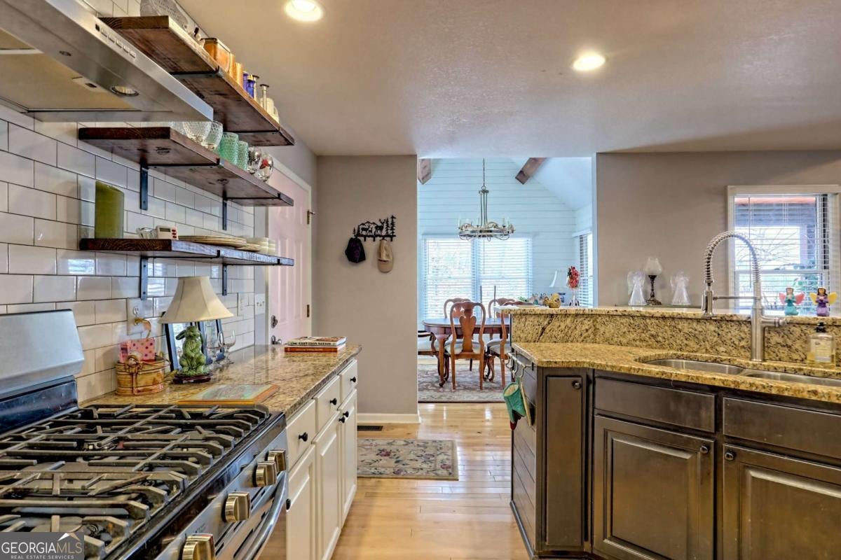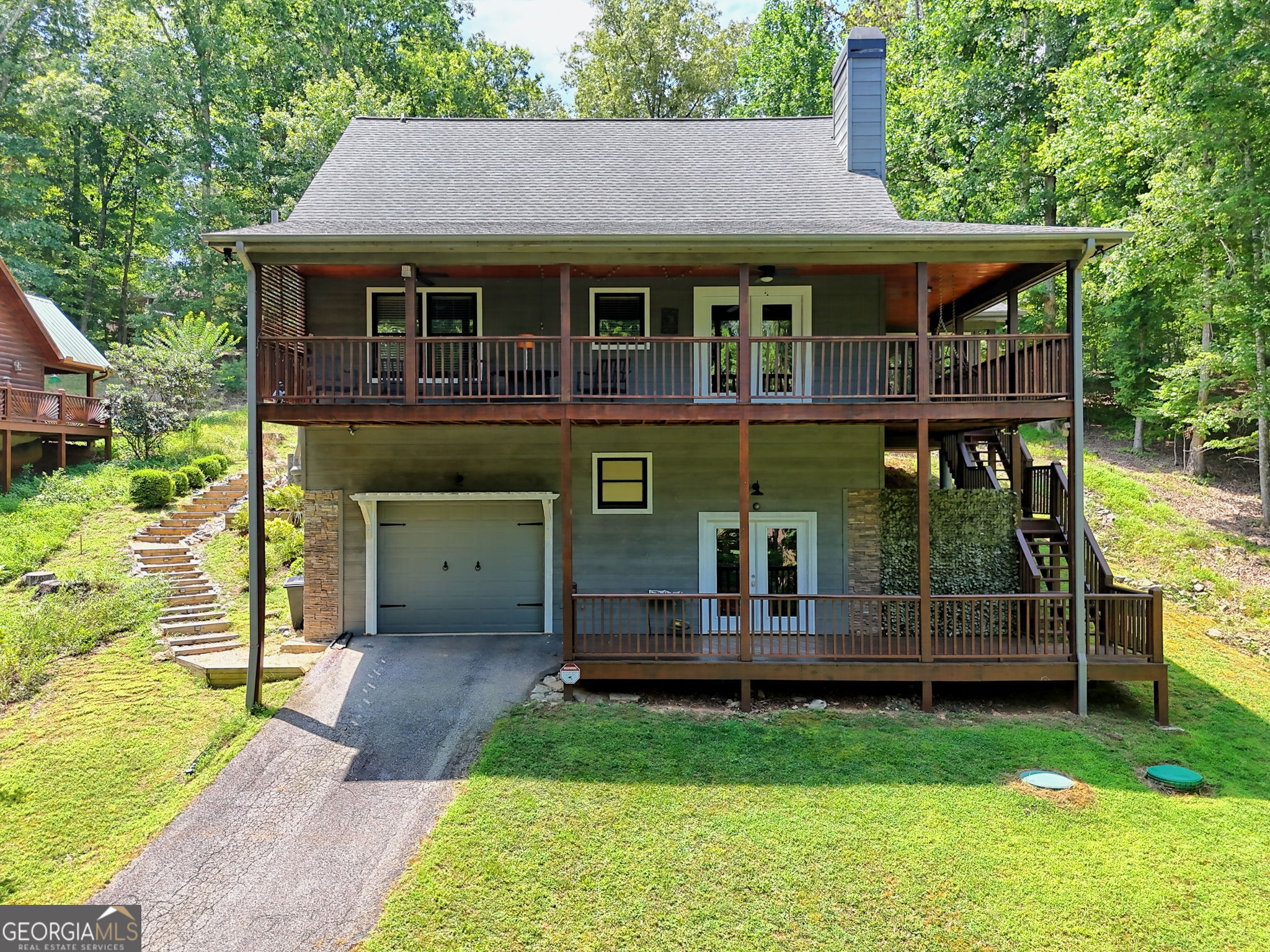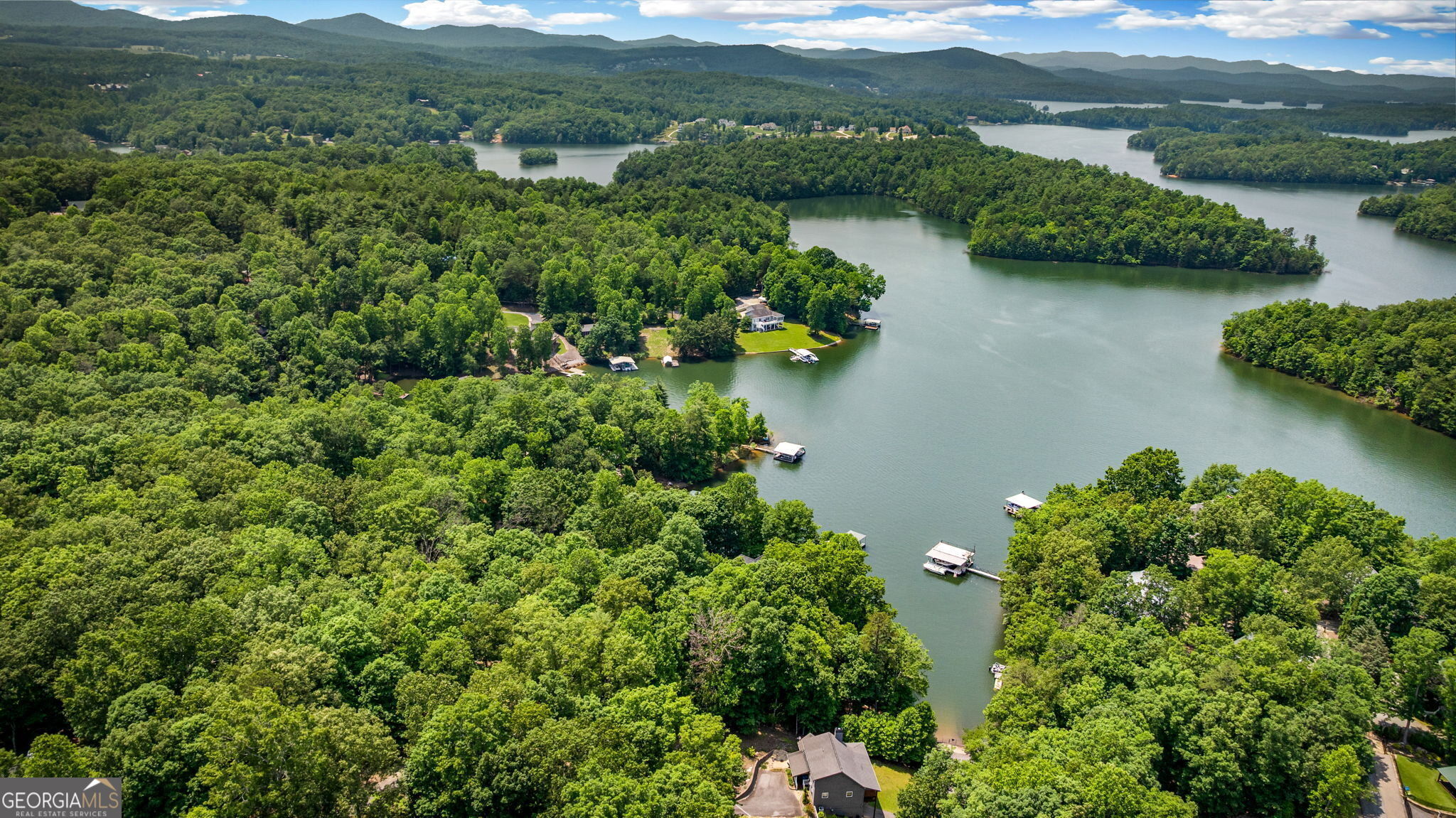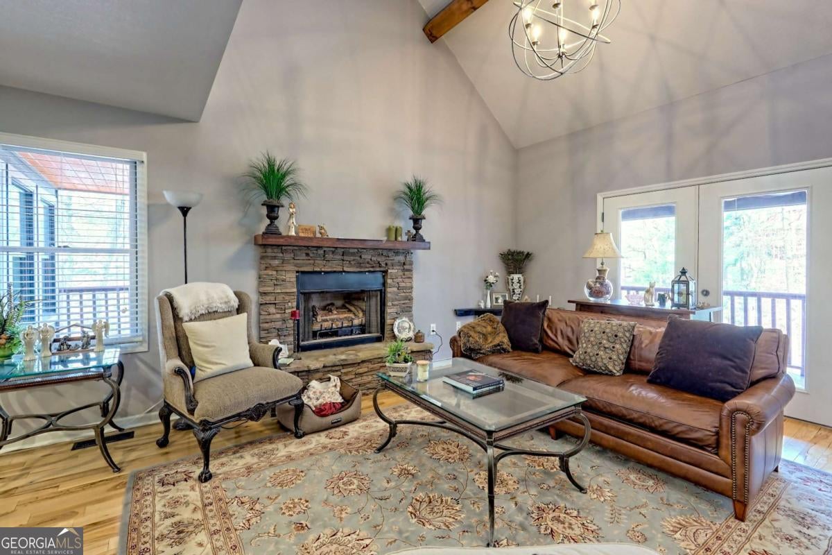 Significant Price Adjustment-Schedule Your Showing Today! Perched on a picturesque hillside as close to the lake as you can get, this stunning cottage-chic home in the desirable Eagle Bend community offers effortless access for canoes, kayaks, and easy boat launching on Lake Nottely. With breathtaking water views, this home perfectly blends rustic charm with modern elegance. Thoughtfully designed with soaring exposed-beam ceilings, crisp white shiplap, and stylish barn door accents, it creates a warm and inviting atmosphere. The beautifully appointed kitchen features sleek open shelving, a dedicated coffee bar, and a spacious island-ideal for entertaining. The sun-drenched upstairs loft adds to the home's airy ambiance, while generously sized bathrooms on every level ensure comfort and convenience. The immaculate basement provides additional living and recreational space, seamlessly flowing into the expansive outdoor entertaining areas. Whether enjoying peaceful mornings on the porch or hosting gatherings with friends and family, this home embraces the sought-after lakeside lifestyle. Note: The third bedroom is a flexible space, ideal for an office, guest room, or additional living area.