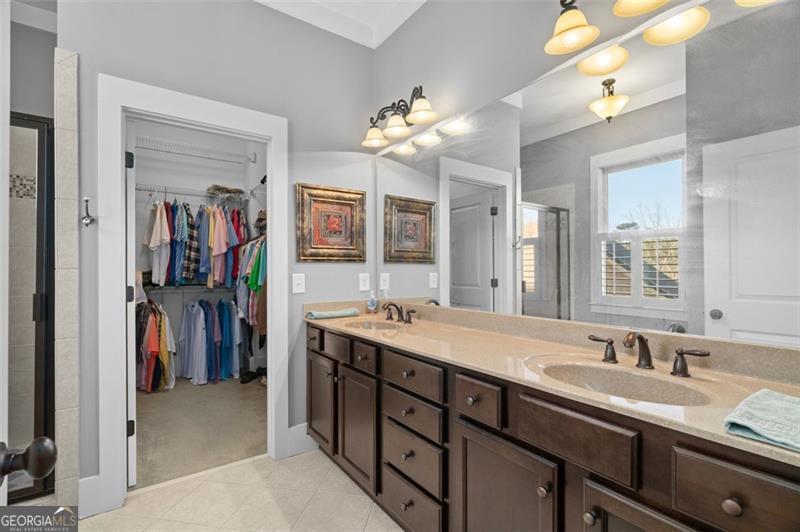 - Interior FeaturesHigh Ceilings, Pulldown Attic Stairs, Double Vanity, Master On Main Level, Split Bedroom Plan, Tile Bath, Walk-In Closet(s)