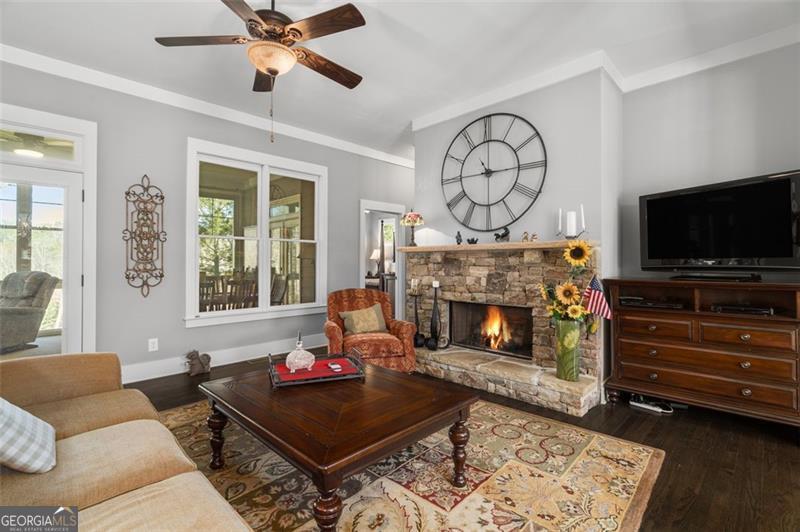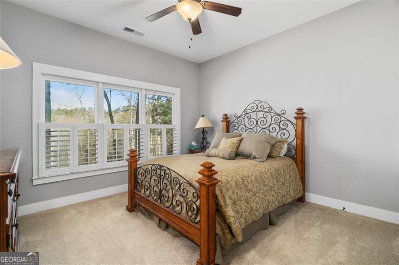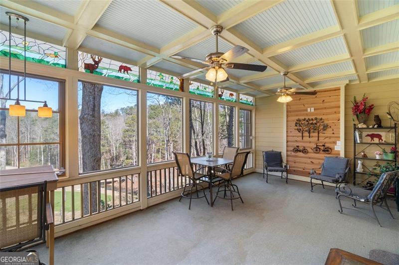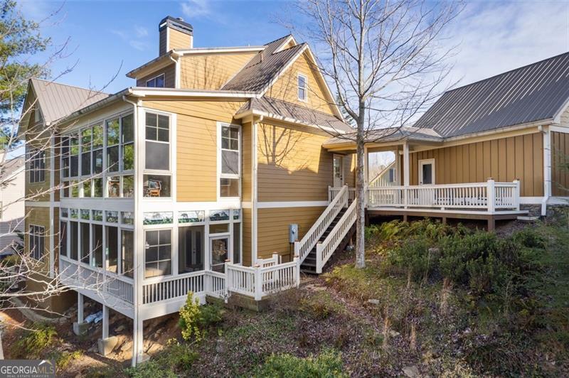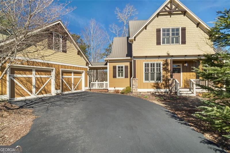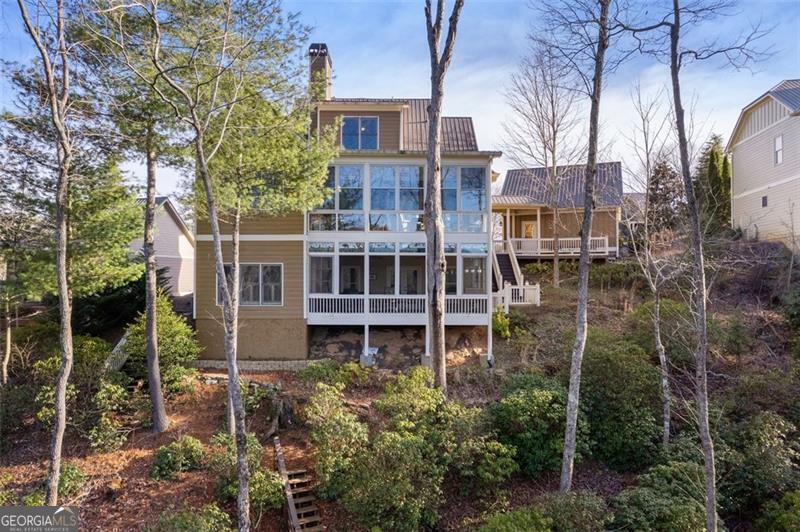 Welcome to this spectacular home, perfectly positioned to offer breathtaking views of the lush golf course, serene Disharoon Creek, and majestic mountains. As you enter the main level, you'll find a cozy living room with a fireplace, dining room, and a well-appointed kitchen, all designed for both comfort and elegance. This level also features the primary suite, a powder room, convenient laundry room, and a large sunroom with a gas log stove that overlooks the fairway, with the mountains providing a stunning backdrop. Upstairs, the loft area offers additional living space, along with a guest bedroom and a full bath, ensuring privacy and comfort for visitors. The terrace level provides a casual living space, another guest bedroom and full bath, a large, screened porch, and a generous storage room-ideal for all your needs. Step outside to the deck off the garage, where you can enjoy the peaceful beauty of your backyard oasis. The professionally landscaped backyard, filled with flowering shrubs, leads to steps that take you directly to the golf course, making it easy to enjoy the outdoors. Nestled in the charming Twin Creeks community within Big Canoe, this home is one of just 13 residences, creating a close-knit neighborhood with friendly neighbors. The community features a gazebo and creek side bench in the cul-de-sac, and is just minutes from the main gate, clubhouse, and all the incredible amenities Big Canoe has to offer. This is truly an opportunity you don't want to miss! *Buyer to verify all information and dimensions deemed important.