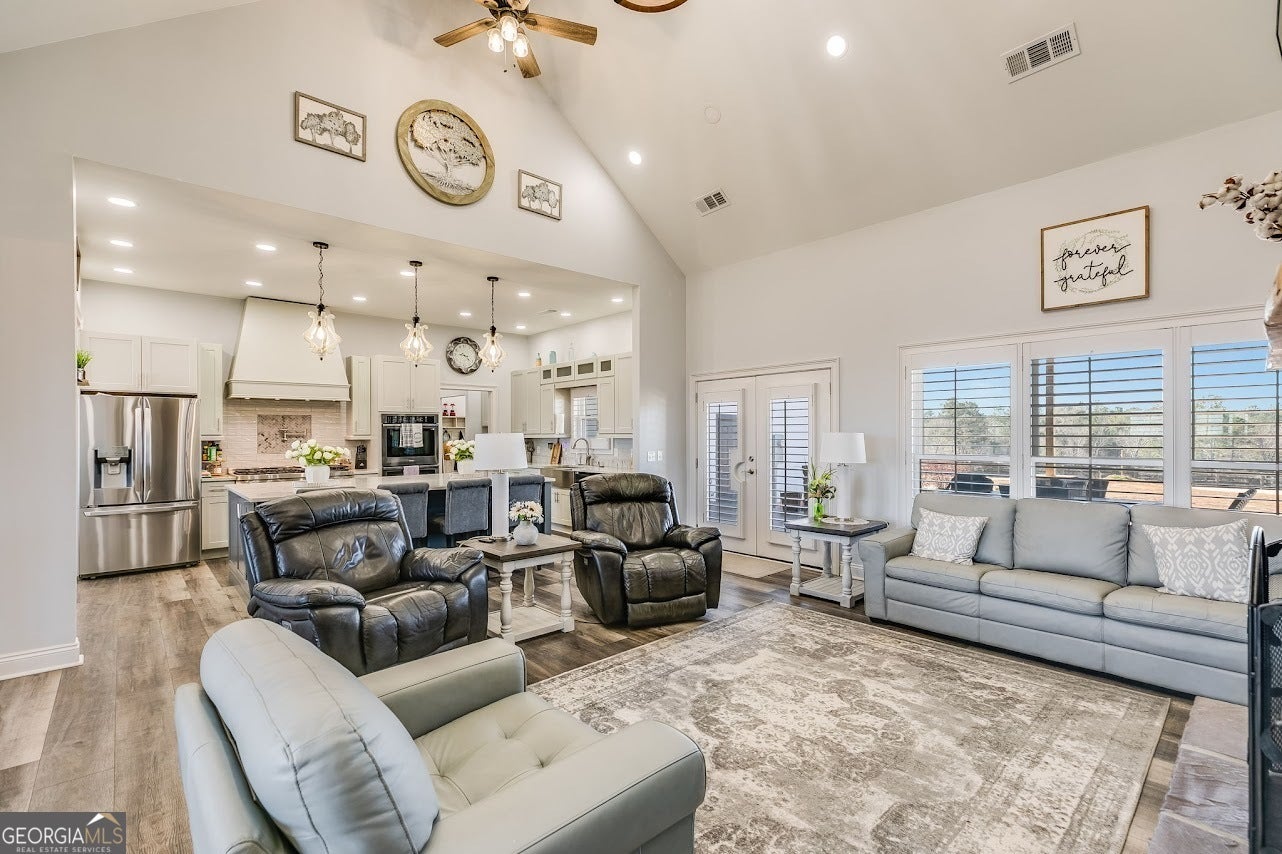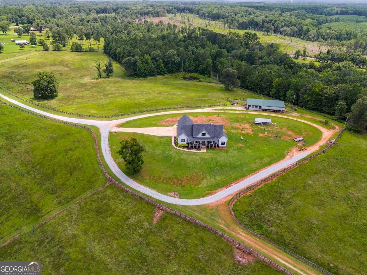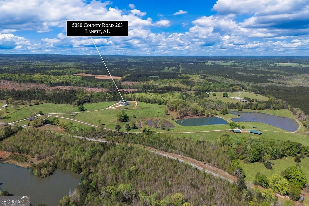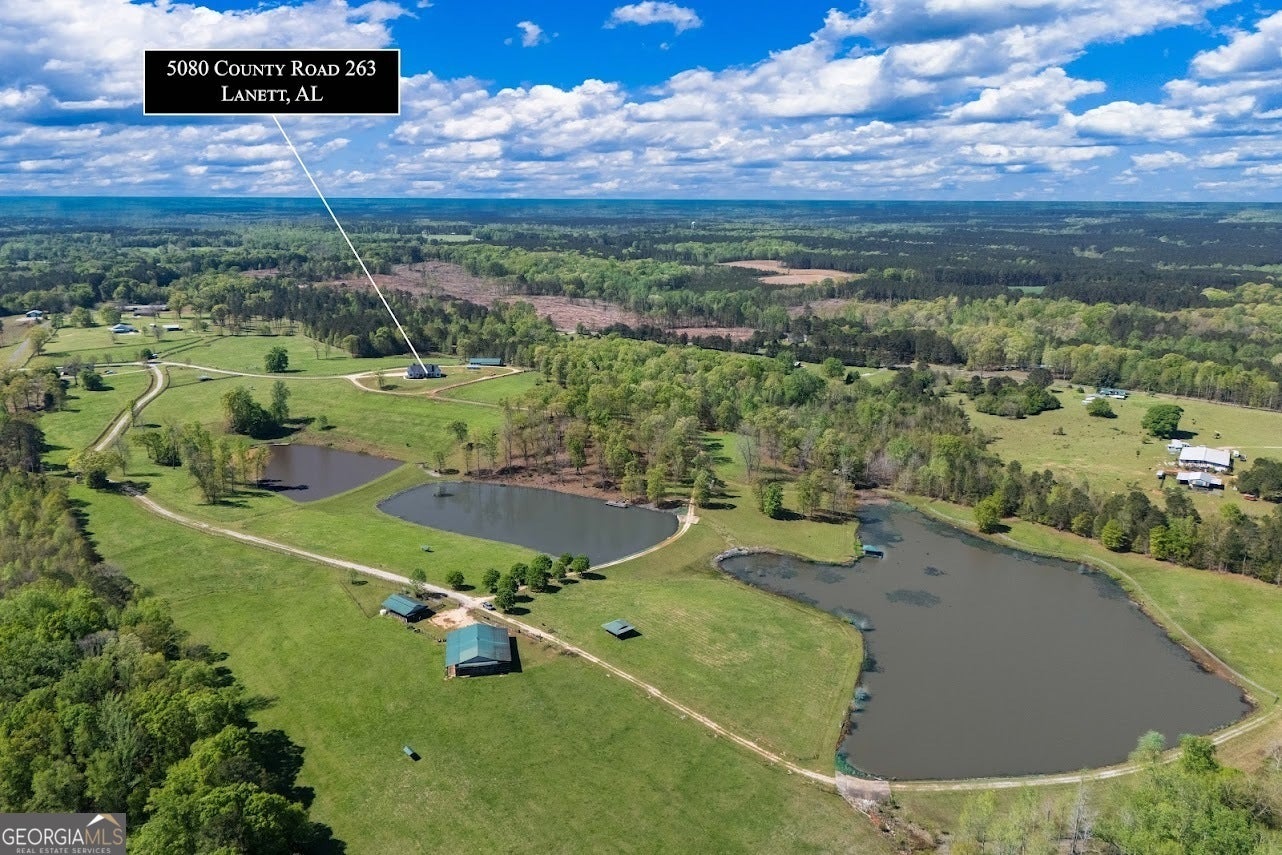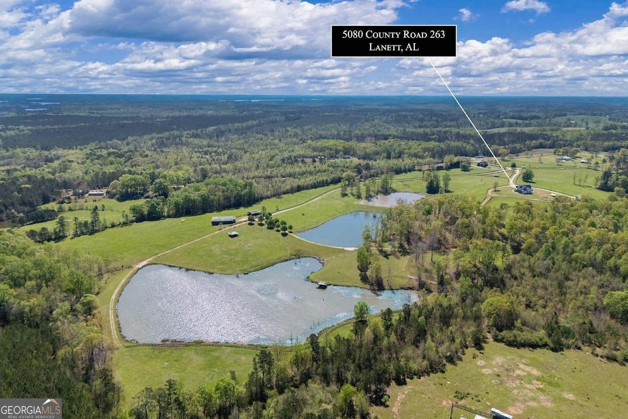 Check out the property video: https://vimeo.com/1075463593?share=copy#t=0. Welcome to 5080 County Road 263 in Lanett, Alabama- an incredible 82-acre property perfect for those seeking a luxury working hobby farm or a sprawling equestrian estate. The entire property is fenced and cross-fenced, with multiple barns thoughtfully designed for ease and efficiency in handling livestock. No detail was overlooked in the construction of the custom-built 4-bedroom, 3-bathroom home, completed in 2022. Boasting over 2,600 square feet of magazine-worthy craftsmanship, this home features Hardie siding, spray foam insulation, architectural shingles, composite decking, and endless high-end materials throughout- ensuring a low-maintenance, worry-free investment for years to come. Step through the front door and take in the stunning 360-degree views framed by numerous large windows, all adorned with custom plantation shutters. The living room showcases a soaring vaulted ceiling and a floor-to-ceiling stone fireplace, creating a warm and inviting atmosphere. Designed for entertaining, the gourmet chef's kitchen is equipped with double ovens, a 4-foot gas range, an oversized island with seating, a spacious walk-in pantry, and a designated coffee station. Adjacent to the kitchen, the cozy dining area is the perfect space to bring family and friends together. A dedicated office with dual built-in desks is ideal for those who work from home. The private primary suite, tucked away on one side of the home, features tray ceilings, a luxurious ensuite bathroom with a freestanding tub, dual vanities, a tiled shower, a water closet, and a large walk-in closet. On the opposite side of the home, you'll find three additional spacious bedrooms and two full bathrooms--offering a functional floor plan that accommodates large families or guests while maintaining privacy. Step outside onto the rocking chair front porch and take in breathtaking views of the pastures and three stocked fishing lakes, teeming with trophy bass, catfish, and bream--perfect for the avid outdoorsman. Wildlife, including deer, turkey, and ducks, frequent the property, adding to its natural beauty. Several fruit trees and garden sites, along with a large chicken coop, make this property a dream for serious homesteaders. The property features two main barns. The first, located near the home, includes a 1-bedroom, 1-bathroom bunkhouse complete with a laundry room. The second barn, situated toward the back of the property, is a blank slate that can easily be converted into a horse barn with multiple stalls. It also includes two enclosed storage rooms and a half-bath. Nearby, you'll find covered cattle working pens complete with a head catch and loading lane. With 14 total pastures, each offering shade trees or shade structures, this setup is ready for immediate use. If additional property is needed, options are available. Enjoy low property taxes, mild weather, and no restrictions--the possibilities are endless! Located in Eastern Alabama near West Point Lake and the Georgia state line, this property sits conveniently between Atlanta, GA, and Montgomery, AL, each about 1.5 hours away.