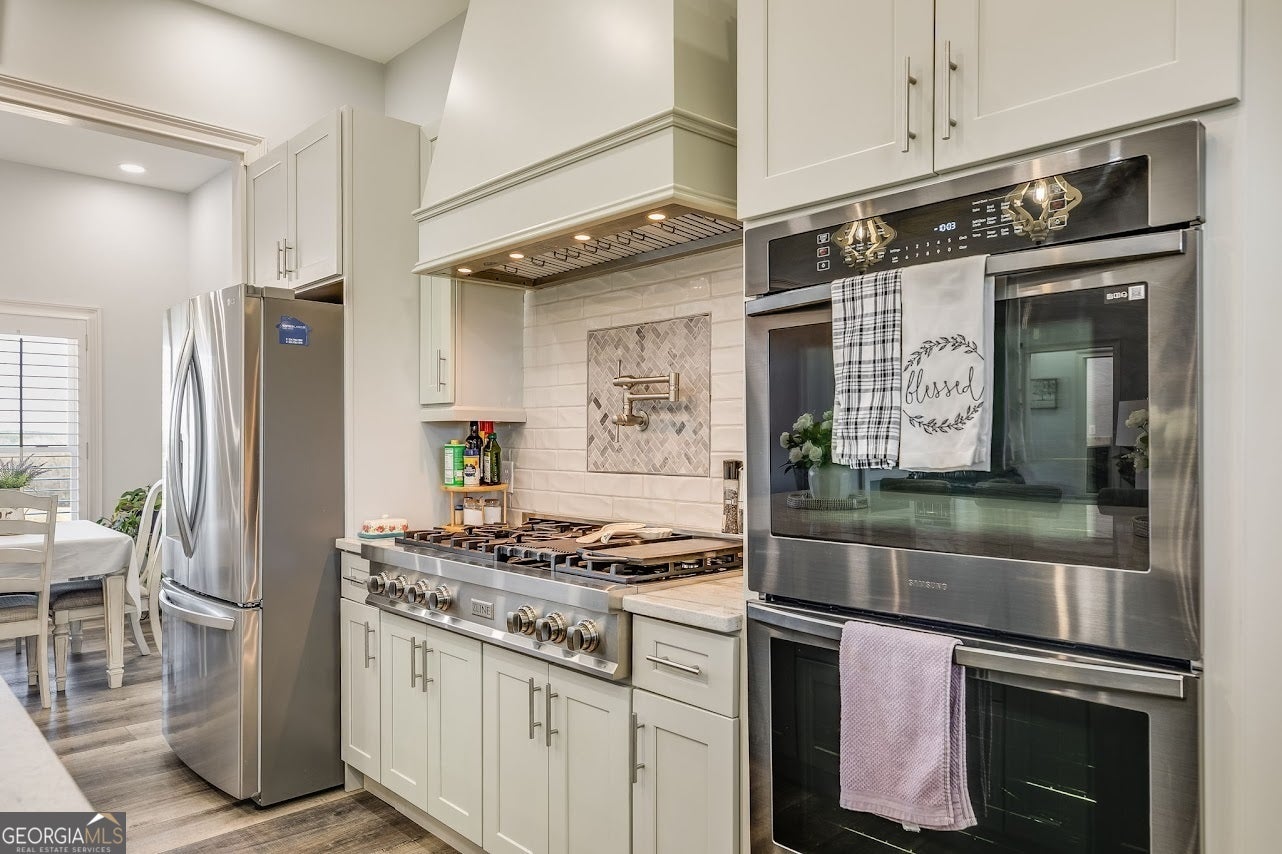 - AppliancesDouble Oven, Dishwasher, Refrigerator, Gas Water Heater, Microwave, Cooktop, Stainless Steel Appliance(s), Tankless Water Heater, Oven (Wall)