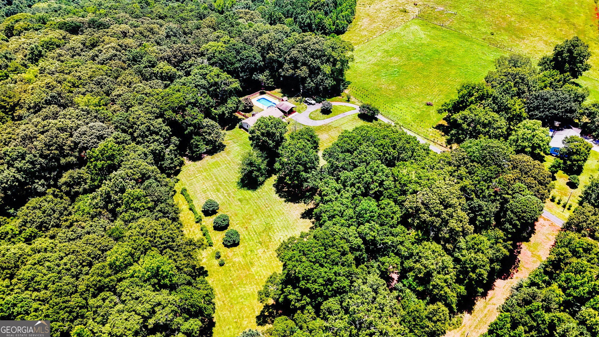 31.65 +/- private acres! Awesome sprawling one level ranch offering 4 bedrooms and 3 full baths with awesome outdoor space, including multiple porches, an inground pool, great patio space, covered grilling area, and a huge barn/shop with room for your future mini-hobby farm! Wind down your drive to a beautiful setting - the home is not visible from the road! Living areas include a formal foyer entrance, a large family room with fireplace that opens to the dining area, and a spacious kitchen. The spacious 480 +/- square foot master suite features a private deck, where you can enjoy gorgeous views of your property. The suite also boasts a luxurious in-room jacuzzi tub for ultimate relaxation, an ensuite bath with tile floor, an oversized tile shower, large vanity, and a big walk-in closet. One of the secondary bedrooms includes a private bath, making it ideal for a teenager or second master suite. On the opposite end of the home, there's a secluded 4th bedroom that's perfect for a private home office if needed. The home showcases stunning hardwood floors and updated tiled bathrooms throughout. The updated kitchen is equipped with solid surface countertops, plentiful cabinetry, and stainless-steel appliances. In addition there's a full size laundry room and an additional mudroom coming off the pool/outdoor area. The inground pool area is a dream for entertaining, with a pergola area, plentiful concrete patio space, and a covered space off the backside of the carport that faces the pool that's perfect for grilling and gathering. The pool area & immediate backyard area is fenced in. There's a small firepit and homemade wood fire pizza area too. A charming 6x8 pool pump house offers convenient storage for pool supplies. The front of the home offers a huge deck and a separate private deck from the master suite. Additional features include a 16x24 barn with concrete floors and electricity, numerous chicken pens/livestock areas, and a 12x24 storage building with power. A secluded loop asphalt driveway leads to a carport with parking for two. The acreage is absolutely gorgeous and has trails for riding and enjoying. Quiet rural location just outside of Thomaston. This rare property is a must-see!