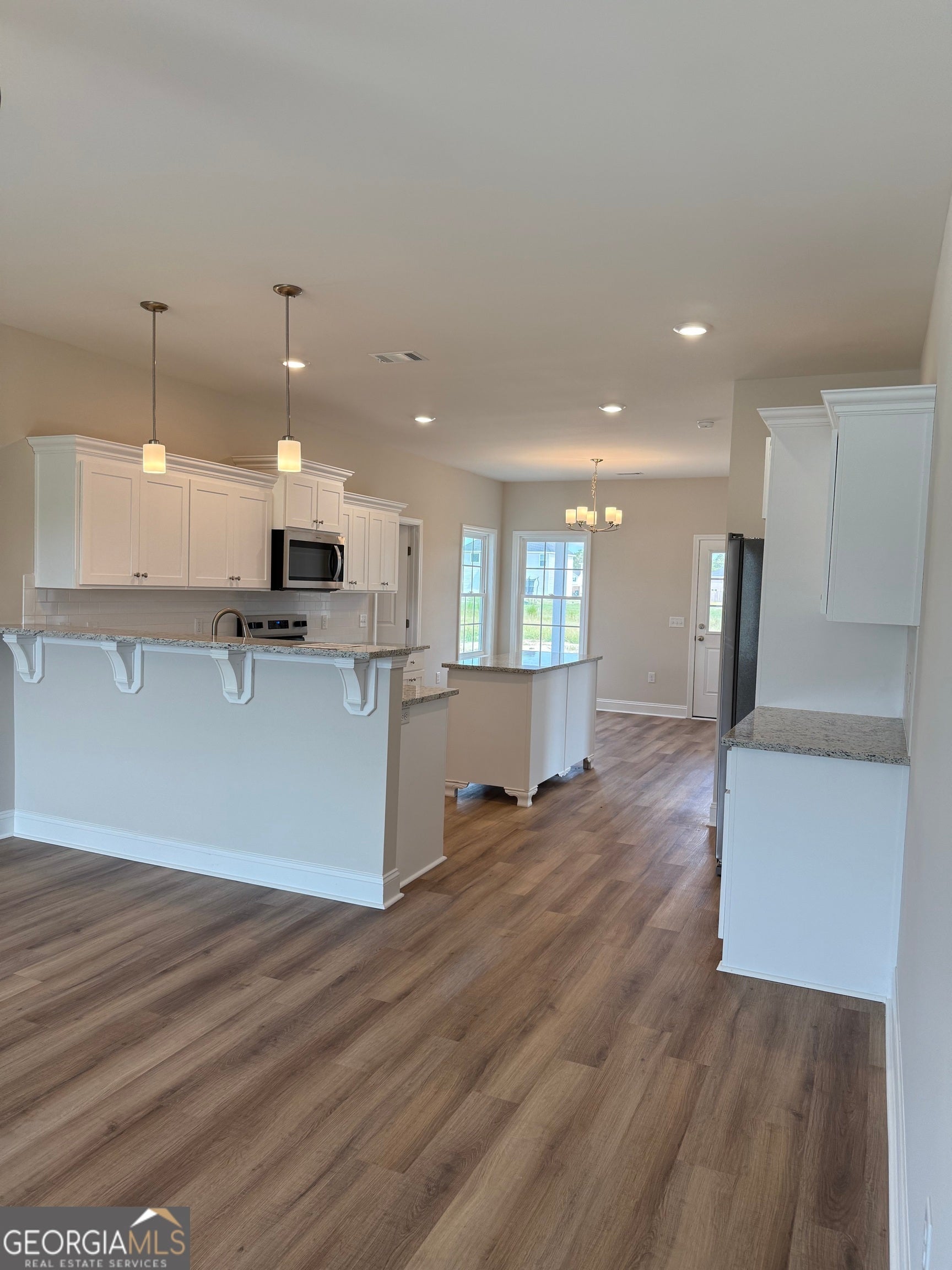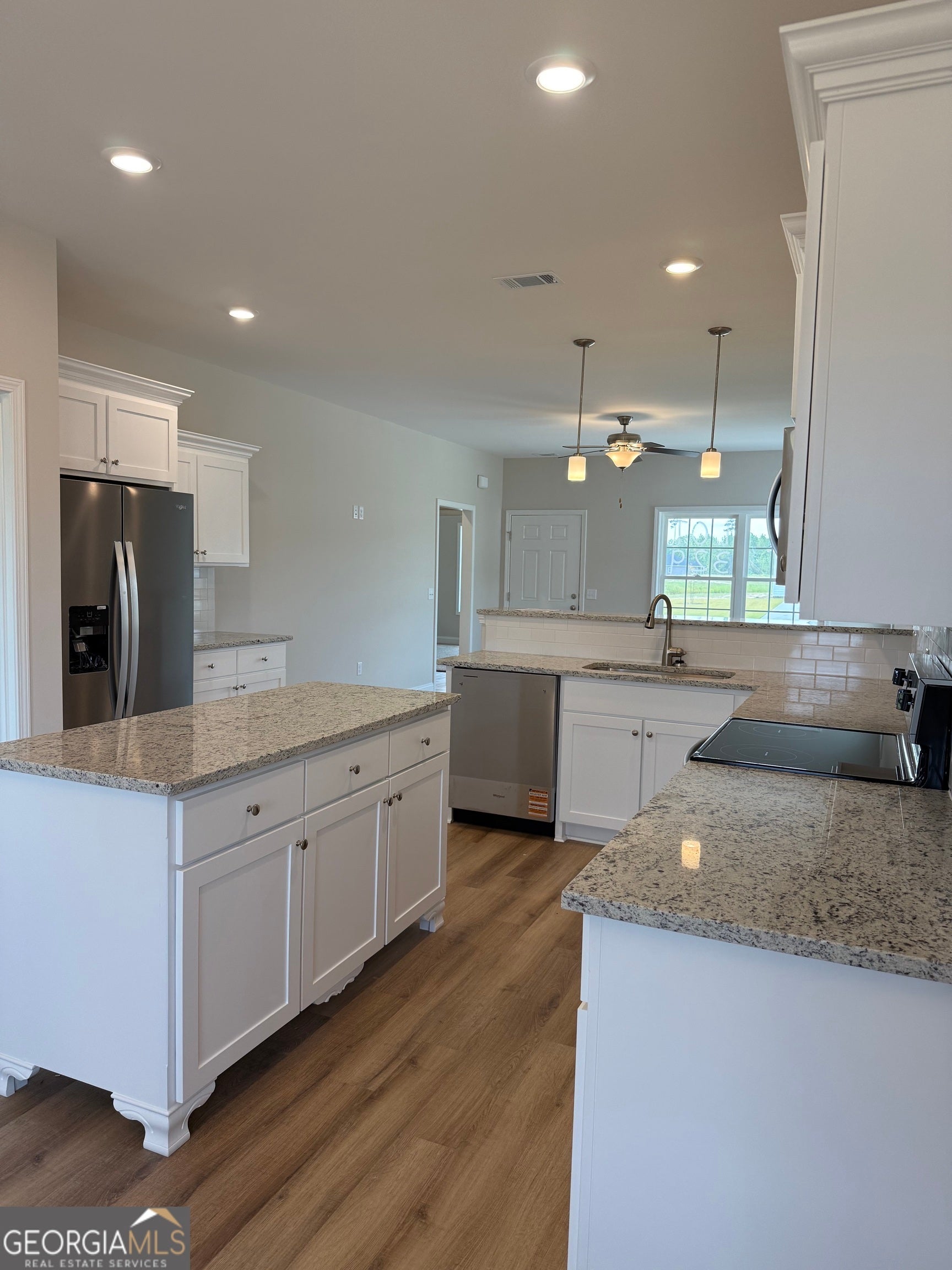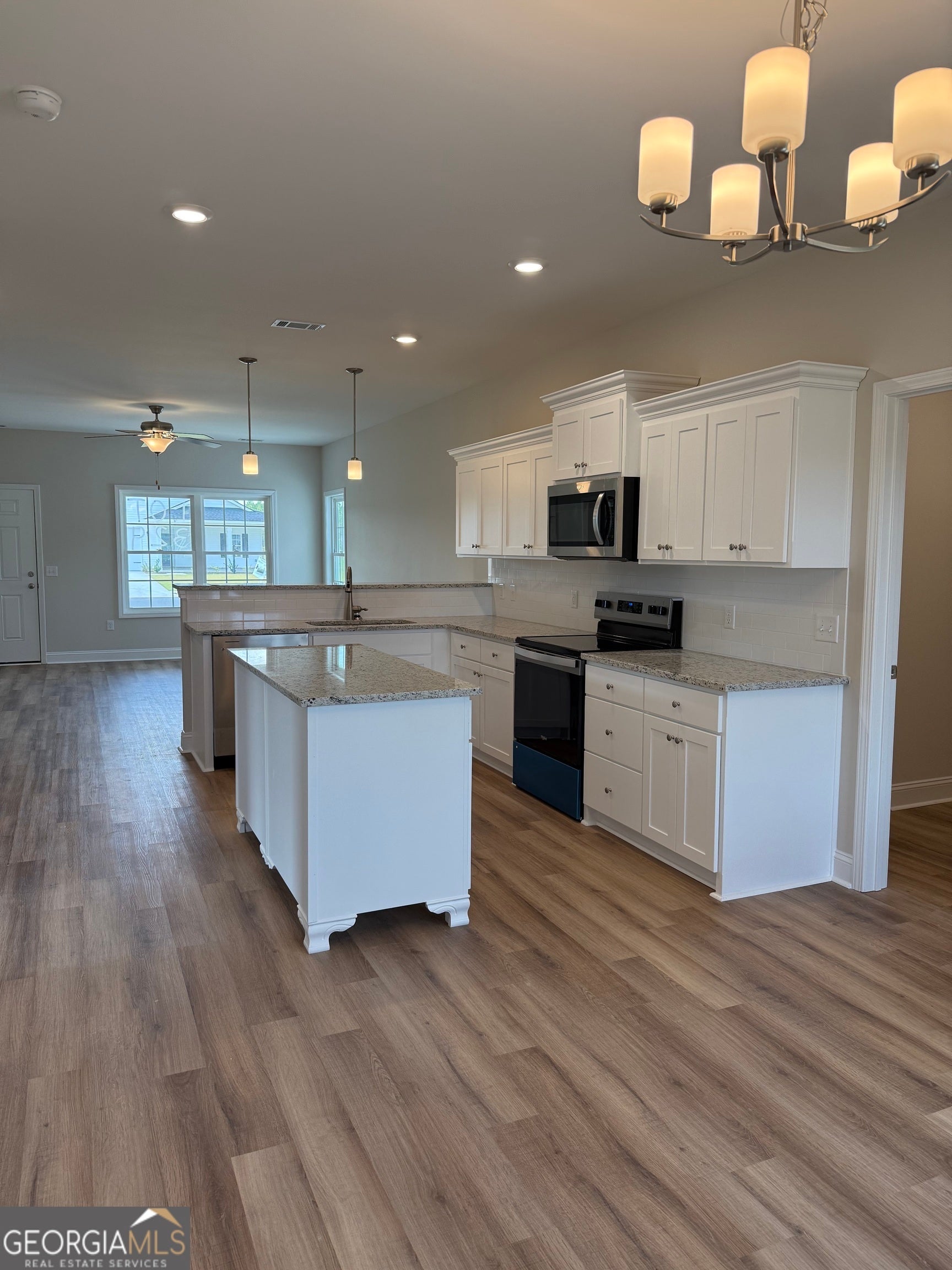 Brand new construction in newly developed Lanier Ridge subdivision. This beautiful one story home features a front living room with kitchen and dining that leads to the back patio offering an ideal space for entertaining. The plan contains 9 ft. ceilings throughout with 3 bedrooms and 2 full baths. The master suite is spacious with a bath featuring dual vanity sinks, garden tub, and separate shower. Kitchen has stainless steel appliances with granite countertops. Living areas are floored with luxury vinyl plank; carpet in bedrooms. Yard is landscaped and includes front irrigation. Community amenities include common area maintenance, street lighting, and mailbox kiosks. The home is located in Ludowici within a mile of Long County schools and only a short drive to Hinesville.