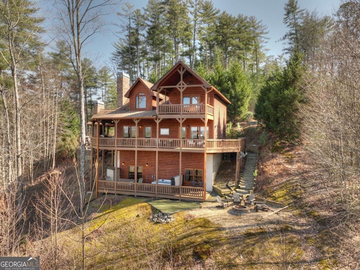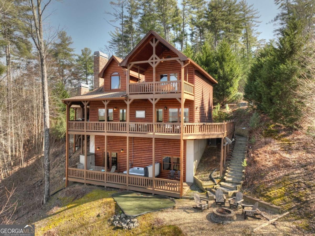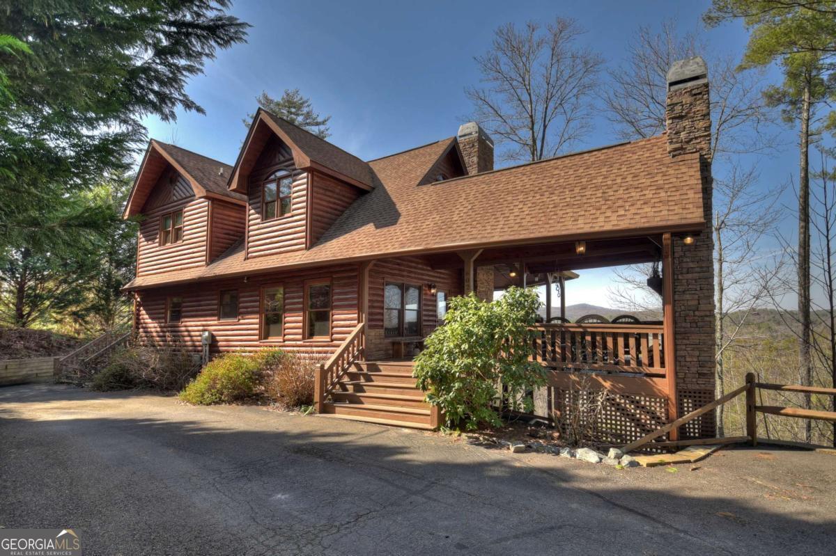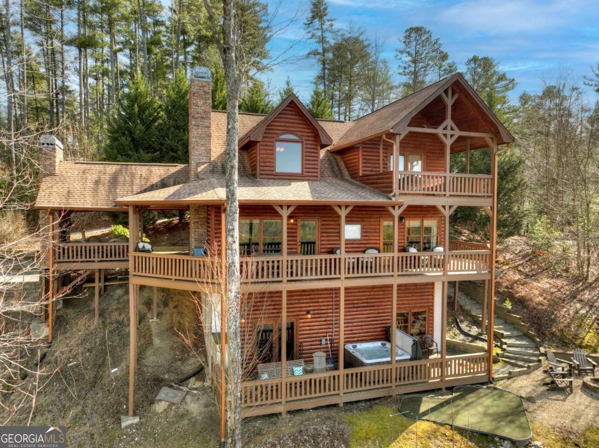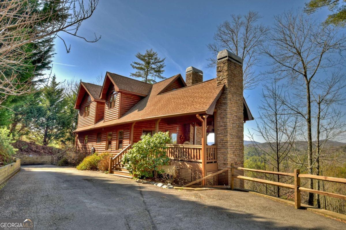 Discover your dream escape in this stunning 3-bedroom, 3-full bath cabin-style home, nestled in the premier gated community of Crockett Mountain just minutes from downtown Blue Ridge. Designed for ultimate enjoyment, the lower level features a dedicated theater room and a full wet bar. Outside, expansive decks boast unparalleled long-range, layered mountain views, while a charming porch offers an outdoor fireplace for cozy evenings. Enjoy the privacy of a gated community, with close proximity to the Benton MacKaye Trail for outdoor adventures. This lodge home offers the perfect blend of secluded mountain serenity and convenient access to Blue Ridge's vibrant shops and restaurants. Offered fully furnished and turn key! Your luxurious North Georgia lifestyle awaits