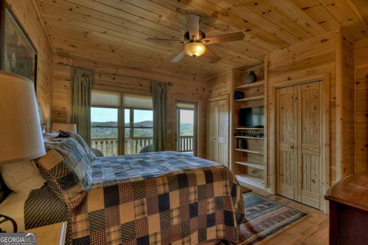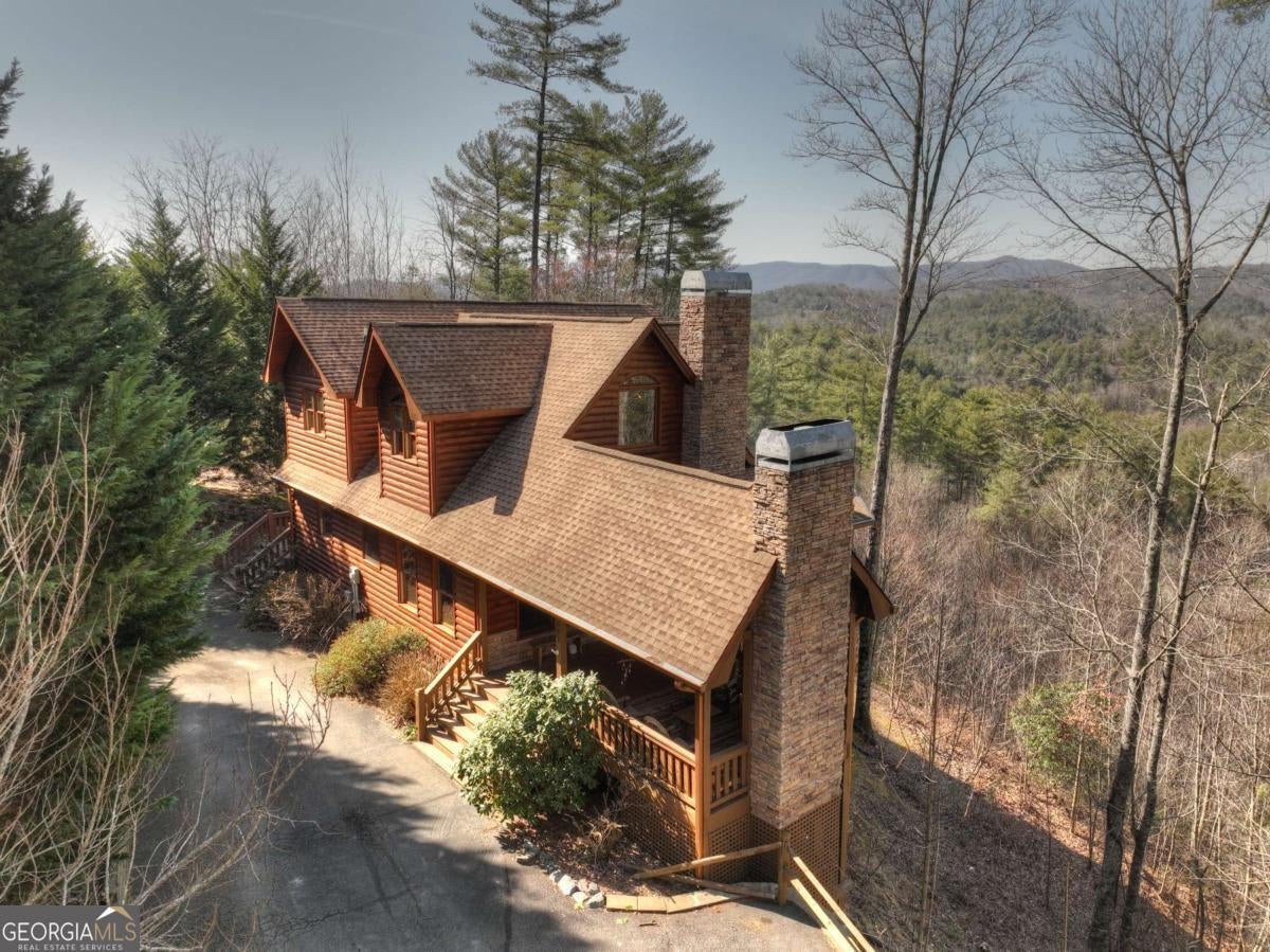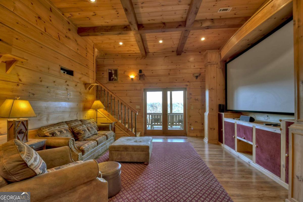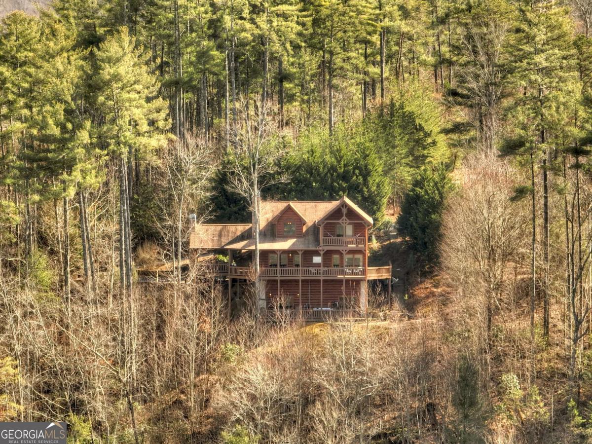 Discover your dream escape in this stunning 3-bedroom, 3-full bath cabin-style home, nestled in the premier gated community of Crockett Mountain just minutes from downtown Blue Ridge. Designed for ultimate enjoyment, the lower level features a dedicated theater room and a full wet bar. Outside, expansive decks boast unparalleled long-range, layered mountain views, while a charming porch offers an outdoor fireplace for cozy evenings. Enjoy the privacy of a gated community, with close proximity to the Benton MacKaye Trail for outdoor adventures. This lodge home offers the perfect blend of secluded mountain serenity and convenient access to Blue Ridge's vibrant shops and restaurants. Offered fully furnished and turn key! Your luxurious North Georgia lifestyle awaits