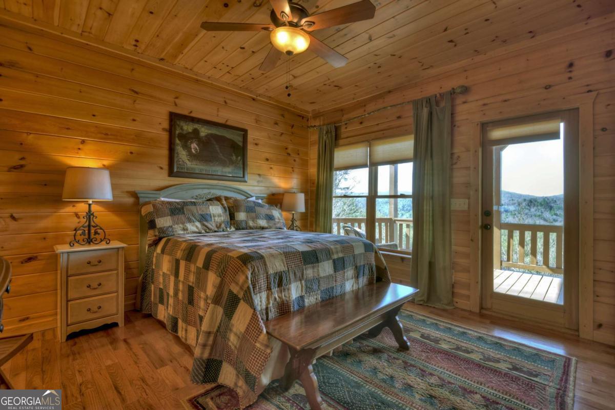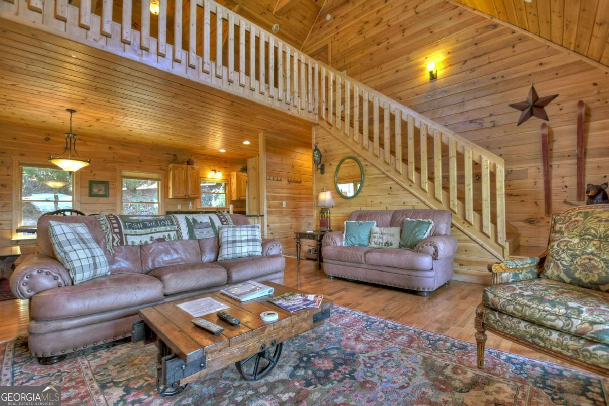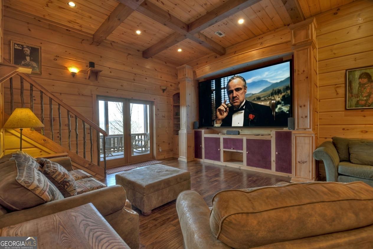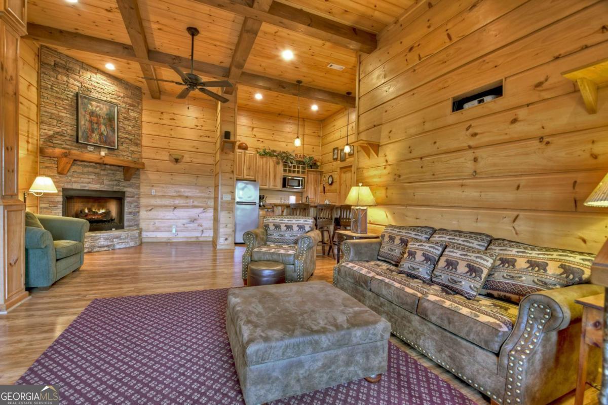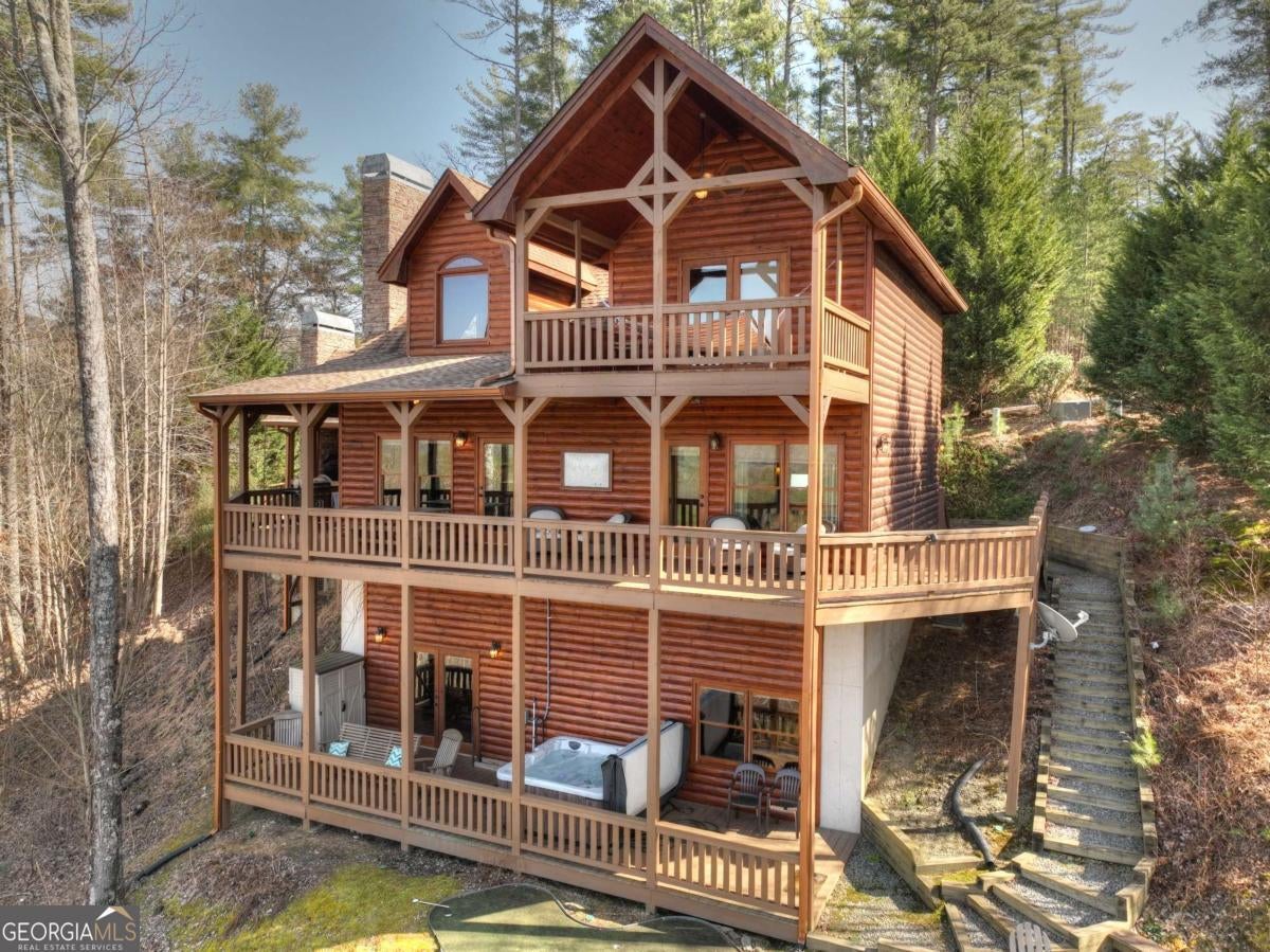 Discover your dream escape in this stunning 3-bedroom, 3-full bath cabin-style home, nestled in the premier gated community of Crockett Mountain just minutes from downtown Blue Ridge. Designed for ultimate enjoyment, the lower level features a dedicated theater room and a full wet bar. Outside, expansive decks boast unparalleled long-range, layered mountain views, while a charming porch offers an outdoor fireplace for cozy evenings. Enjoy the privacy of a gated community, with close proximity to the Benton MacKaye Trail for outdoor adventures. This lodge home offers the perfect blend of secluded mountain serenity and convenient access to Blue Ridge's vibrant shops and restaurants. Offered fully furnished and turn key! Your luxurious North Georgia lifestyle awaits