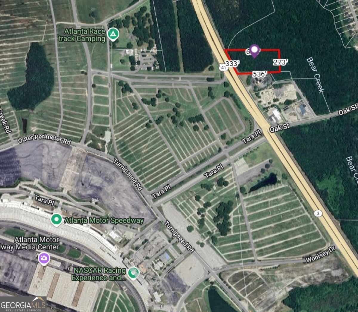 Incredible opportunity to own a 4.22-acre commercial lot in a high-visibility location with heavy traffic flow on Bear Creek Blvd (US-19 South). This C3-zoned commercial property boasts approximately 335 feet of road frontage on a busy highway, just 800 feet from the main entrance to Atlanta Motor Speedway. Positioned next to First National Bank of Griffin, this prime lot offers excellent exposure and potential for various commercial ventures.