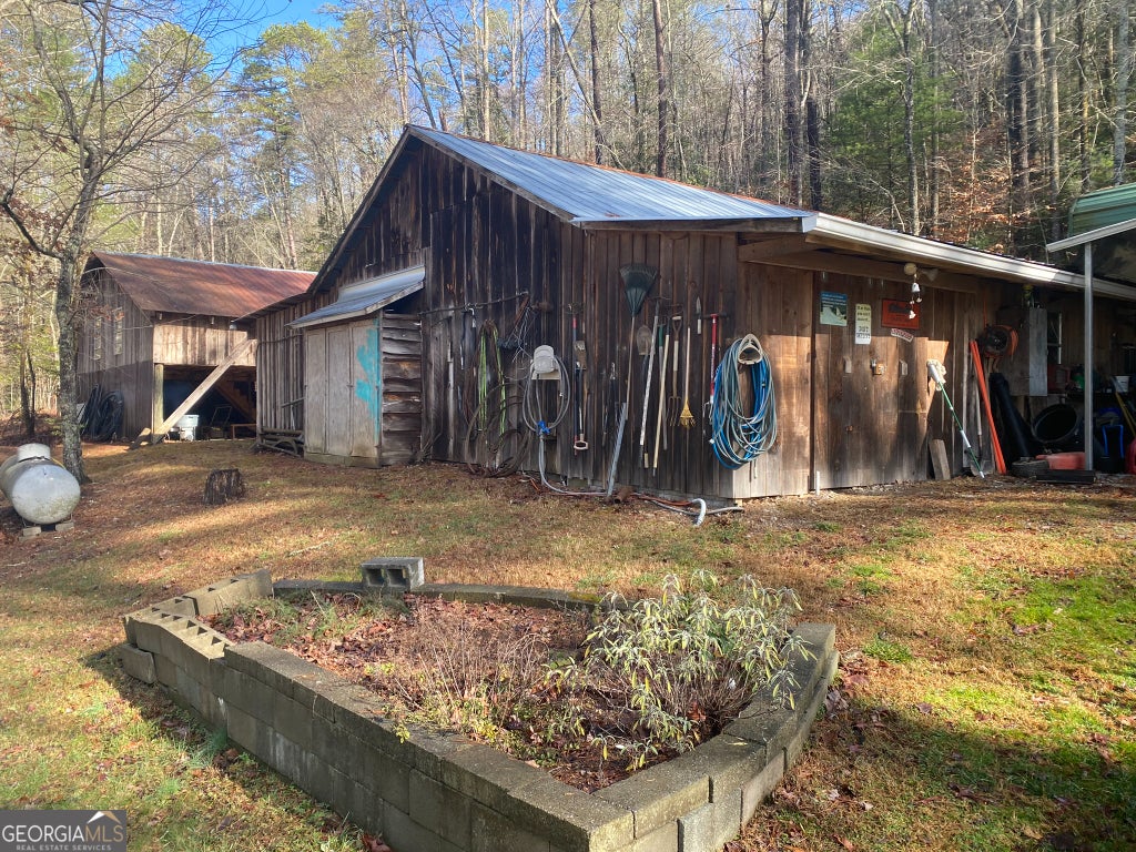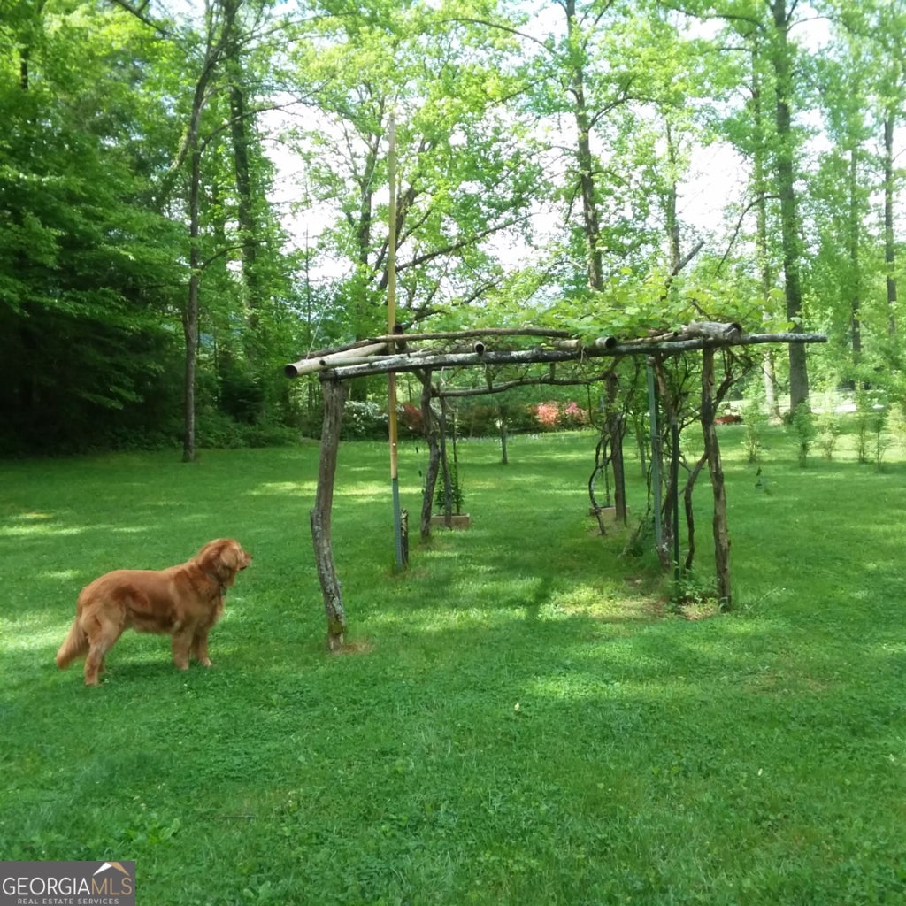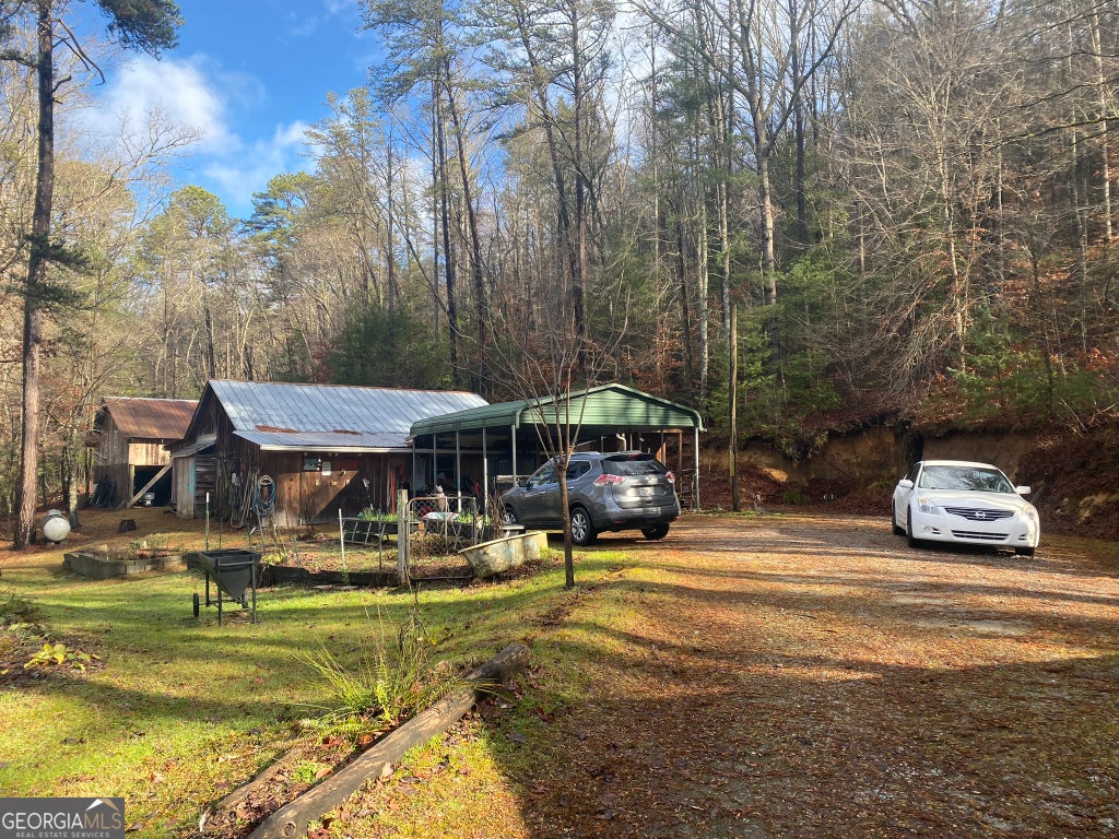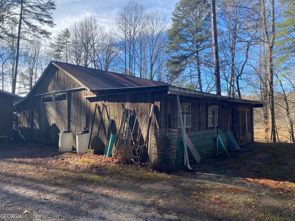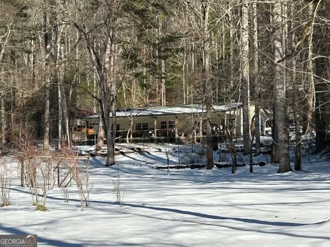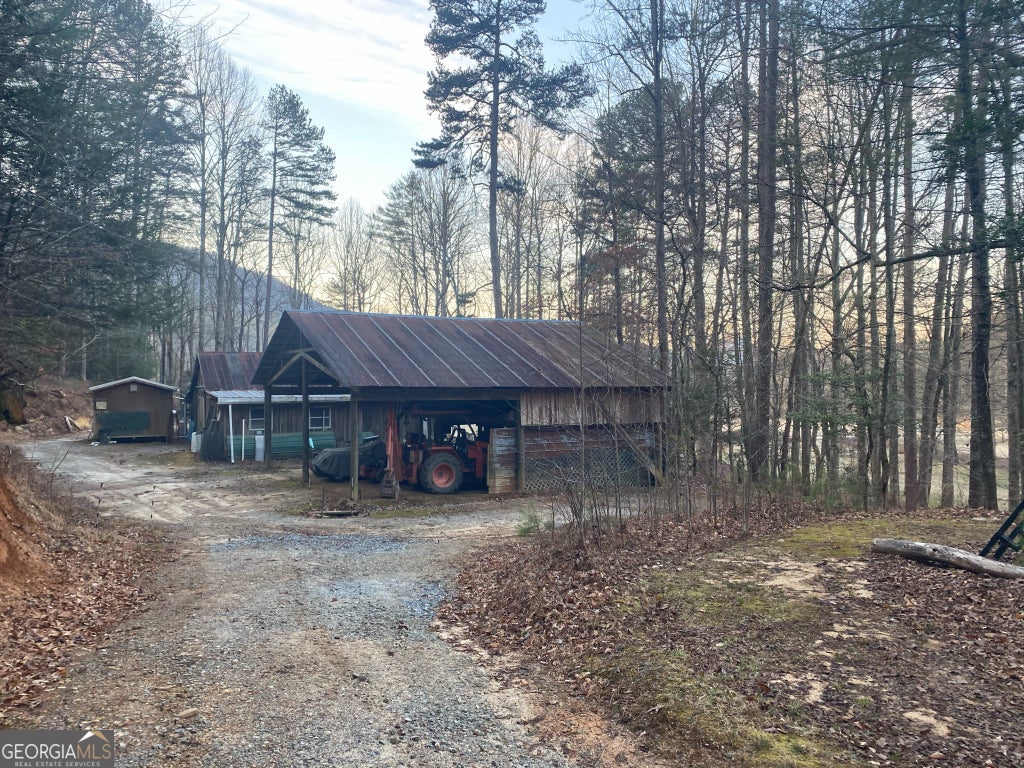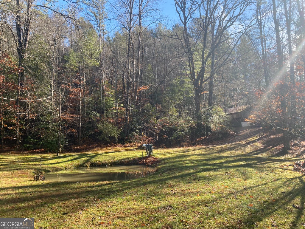 Hollman Hollow Farms is a 38.6 acre parcel located in unincorporated Rabun County Georgia. National Forest borders approx. 3/4 miles of the property north and east. Elevations range from about 2000 to 2500 feet. The NFS land is not easily accessed by the public and the location is private, but has paved road access. The western property boundary is the center of a year-round creek that separates the property from the neighbor's 48 acre parcel. The creek continues north approx 1700 feet where it first emerges from NFS land to the north. The southern boundary is relatively short and fronts Blue Ridge Gap Rd. There is a small corner of the land that was divided off and is a neighbor's property in the southeast corner. The home is a 1975 build, one story, tin roof, 2 bedroom (3rd bedroom has been converted to den adjoining main bedroom), 2 bath, with large covered porch. The home features updated windows, wood floors & ceilings in great room, central air & heat, wood stove heat, built in generator, distant creek views and panoramic forest views. There is a tall barn with concrete floor that is utilized as a workshop with car lift. A metal carport off the front of the barn provides covered parking. Behind the main barn is a large stilt barn. Some of the oversized beams were cut from timber on the property. The building is about 30' tall with a mezzanine level for storage. Currently this barn is used as parking for a front loader backhoe and other toys. There is a lush meadow at the front of the property which covers several acres and has an old grape arbor, blueberry bushes, terraced vegetation levels, a meandering creek along the western side & pond area. There is relatively flat land stretching along the creek to the rear of the property. The residence is just up the hill from the meadow & has excellent meadow views. The main homestead used to be on the knoll, a grassy raised patch of land that fronts the entry road with it's own driveway. There are still old foundation stones buried in this area! The current homestead area and buildings are all located between the knoll, the meadow and the ridge. The primary pond can be fed from an underground pipe which runs approximately 1000 feet up the main creek, providing sufficient elevation for a good waterfall at the pond and healthy oxygenation for stocked fish. There is a 2nd smaller water collection pond which is fed through land runoff and several small spring runoffs from around the property. The majority of the property is relatively steep land that forms the left/west side of the ridge. The longest property boundary is the spine of the ridge with NFS land located on the opposite side. The rear/north of the property also backs NFS land from the top of the ridge in the east to the edge of the stream in the west. The owners have grown many types of vegetables in the area surrounding the cabin and meadow over the years. The forest has large old growth trees. The owners actively wildcrafted the land for many years with medicinal plants in several areas. Current farming has been more focused on a smaller vegetable garden, greenhouse, and hops for brewing beer. The driveways are gravel with additional parking areas for vehicles in front of and behind the barn. The well-maintained drive gives way to a lesser maintained road system behind the barns. The NFS frontage is the Chattahoochee National Forest with over 850,000 acres and 850 miles of recreational trails. The Carter Gap Shelter off the Appalachian Trail is approx 5 miles north as the crow flies and could be directly hiked if desired, or the head of the trail is a very short drive away. The cabin is less than 8 miles from Clayton, Dillard, and Lake Burton. The Tallulah River is 4 miles away. Many more photos and info available on request. Popular local activities include white water rafting, scenic rivers & waterfalls, hiking, fishing, hunting and camping.