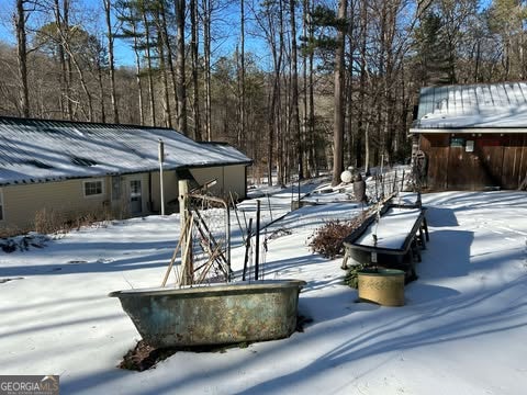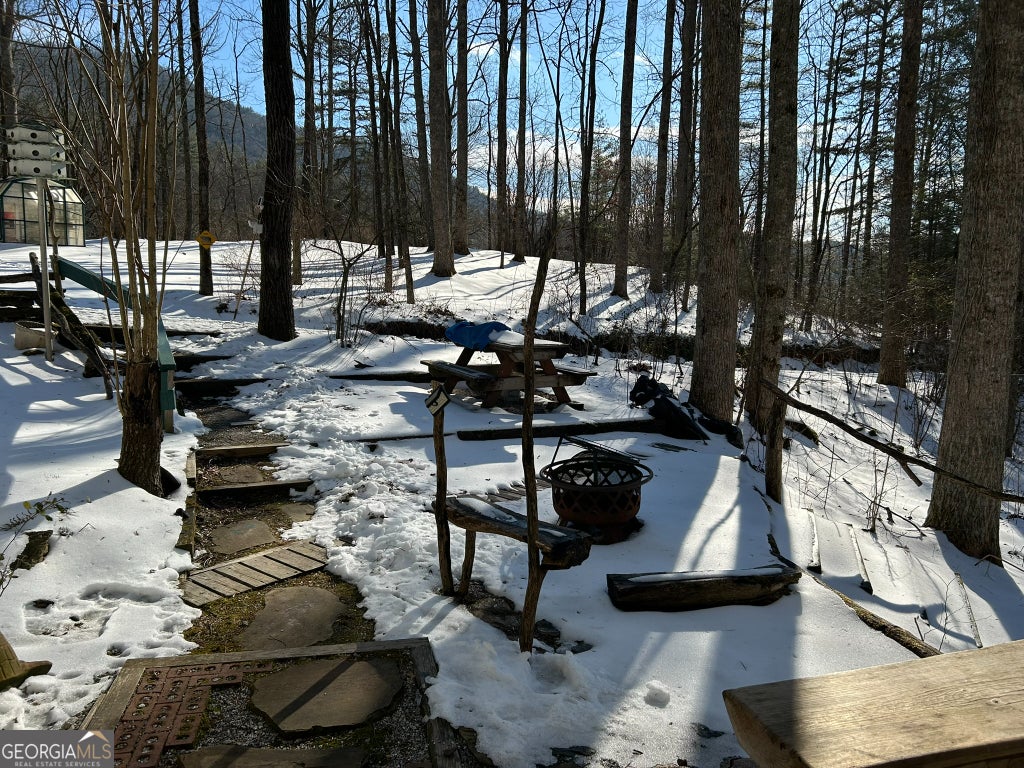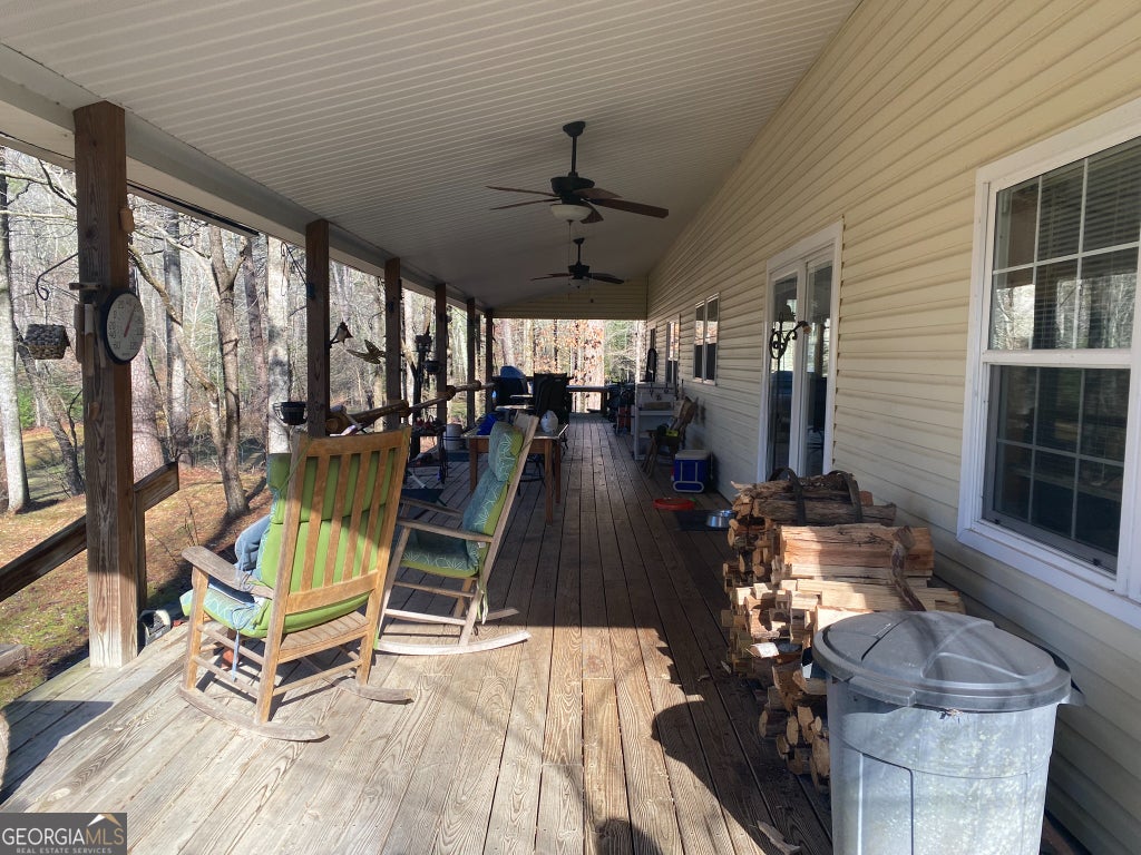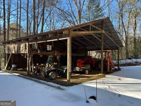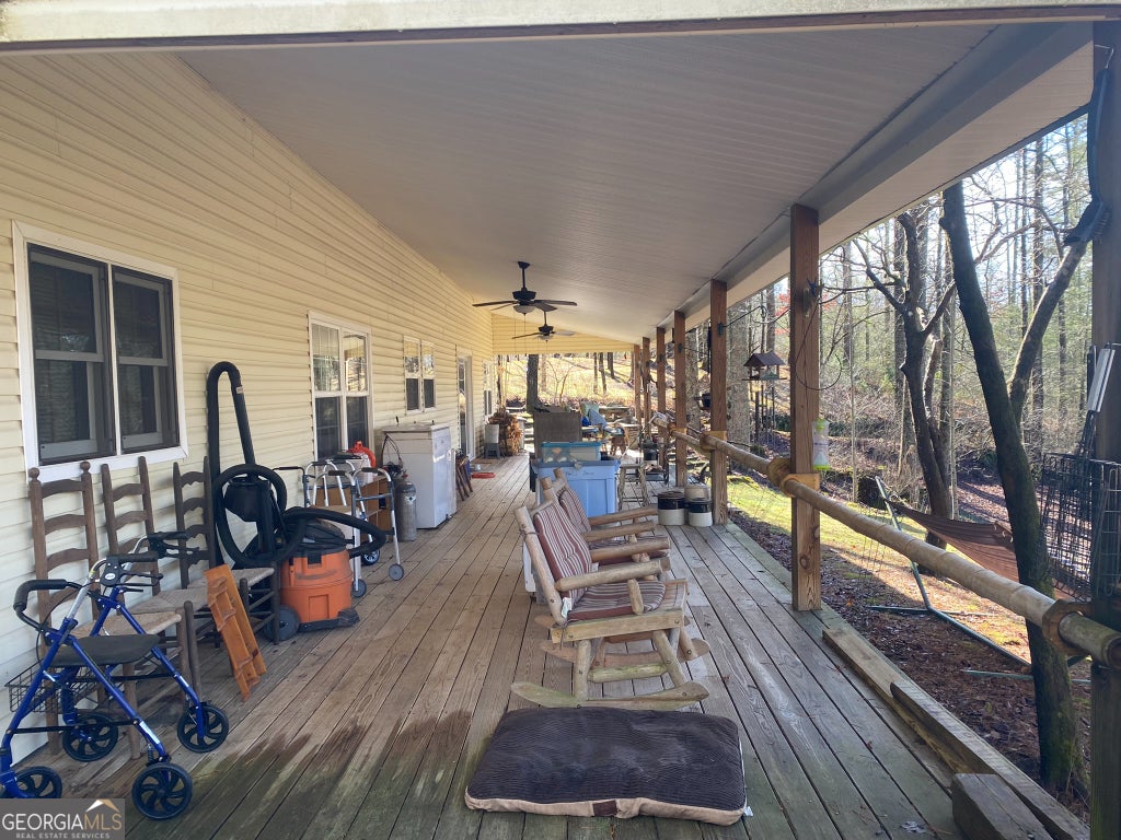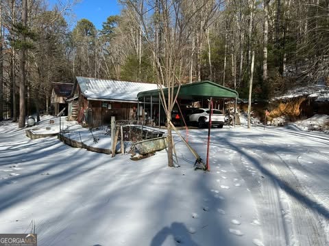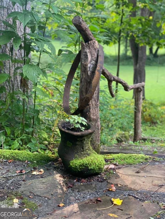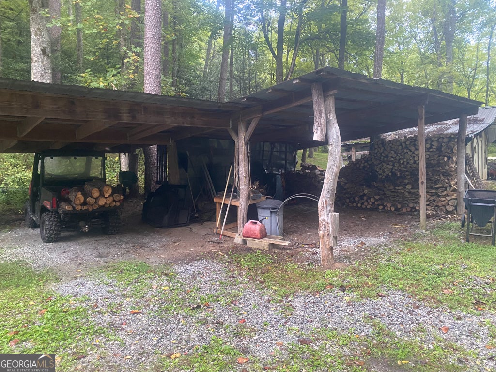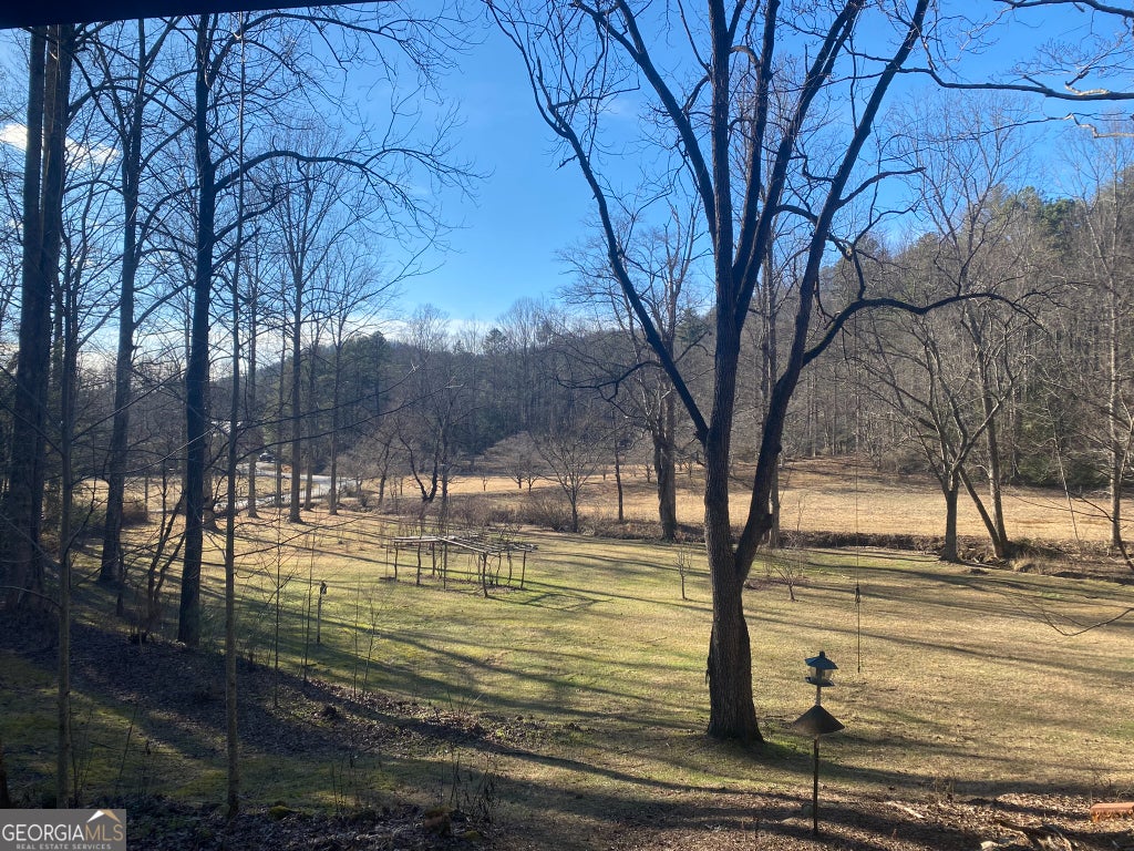 Hollman Hollow Farms is a 38.6 acre parcel located in unincorporated Rabun County Georgia. National Forest borders approx. 3/4 miles of the property north and east. Elevations range from about 2000 to 2500 feet. The NFS land is not easily accessed by the public and the location is private, but has paved road access. The western property boundary is the center of a year-round creek that separates the property from the neighbor's 48 acre parcel. The creek continues north approx 1700 feet where it first emerges from NFS land to the north. The southern boundary is relatively short and fronts Blue Ridge Gap Rd. There is a small corner of the land that was divided off and is a neighbor's property in the southeast corner. The home is a 1975 build, one story, tin roof, 2 bedroom (3rd bedroom has been converted to den adjoining main bedroom), 2 bath, with large covered porch. The home features updated windows, wood floors & ceilings in great room, central air & heat, wood stove heat, built in generator, distant creek views and panoramic forest views. There is a tall barn with concrete floor that is utilized as a workshop with car lift. A metal carport off the front of the barn provides covered parking. Behind the main barn is a large stilt barn. Some of the oversized beams were cut from timber on the property. The building is about 30' tall with a mezzanine level for storage. Currently this barn is used as parking for a front loader backhoe and other toys. There is a lush meadow at the front of the property which covers several acres and has an old grape arbor, blueberry bushes, terraced vegetation levels, a meandering creek along the western side & pond area. There is relatively flat land stretching along the creek to the rear of the property. The residence is just up the hill from the meadow & has excellent meadow views. The main homestead used to be on the knoll, a grassy raised patch of land that fronts the entry road with it's own driveway. There are still old foundation stones buried in this area! The current homestead area and buildings are all located between the knoll, the meadow and the ridge. The primary pond can be fed from an underground pipe which runs approximately 1000 feet up the main creek, providing sufficient elevation for a good waterfall at the pond and healthy oxygenation for stocked fish. There is a 2nd smaller water collection pond which is fed through land runoff and several small spring runoffs from around the property. The majority of the property is relatively steep land that forms the left/west side of the ridge. The longest property boundary is the spine of the ridge with NFS land located on the opposite side. The rear/north of the property also backs NFS land from the top of the ridge in the east to the edge of the stream in the west. The owners have grown many types of vegetables in the area surrounding the cabin and meadow over the years. The forest has large old growth trees. The owners actively wildcrafted the land for many years with medicinal plants in several areas. Current farming has been more focused on a smaller vegetable garden, greenhouse, and hops for brewing beer. The driveways are gravel with additional parking areas for vehicles in front of and behind the barn. The well-maintained drive gives way to a lesser maintained road system behind the barns. The NFS frontage is the Chattahoochee National Forest with over 850,000 acres and 850 miles of recreational trails. The Carter Gap Shelter off the Appalachian Trail is approx 5 miles north as the crow flies and could be directly hiked if desired, or the head of the trail is a very short drive away. The cabin is less than 8 miles from Clayton, Dillard, and Lake Burton. The Tallulah River is 4 miles away. Many more photos and info available on request. Popular local activities include white water rafting, scenic rivers & waterfalls, hiking, fishing, hunting and camping.