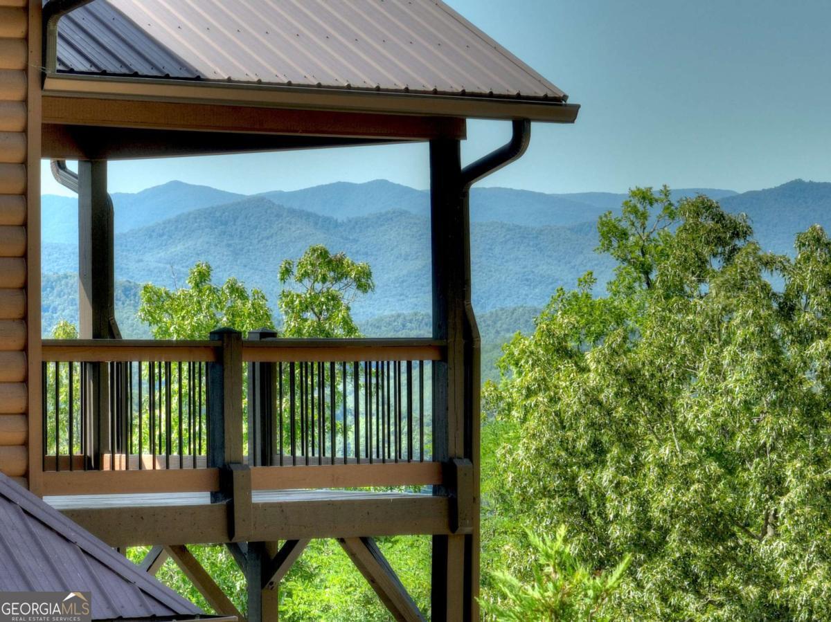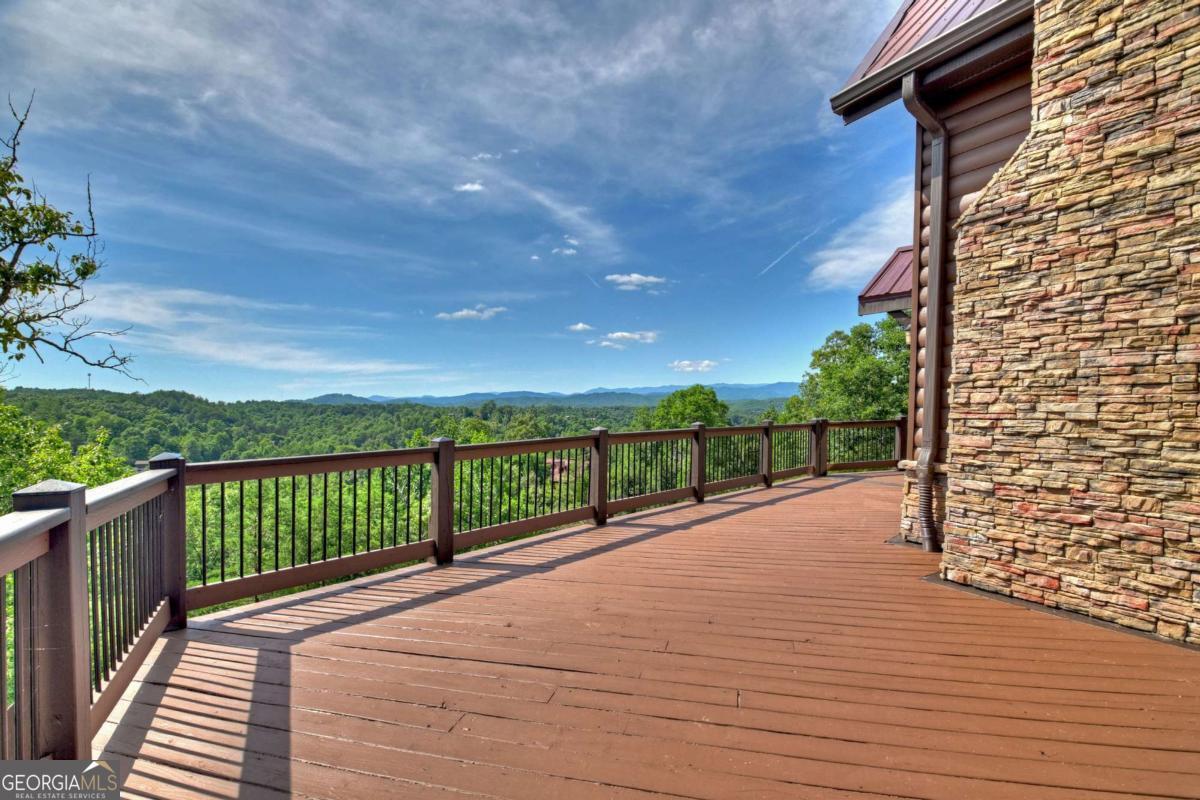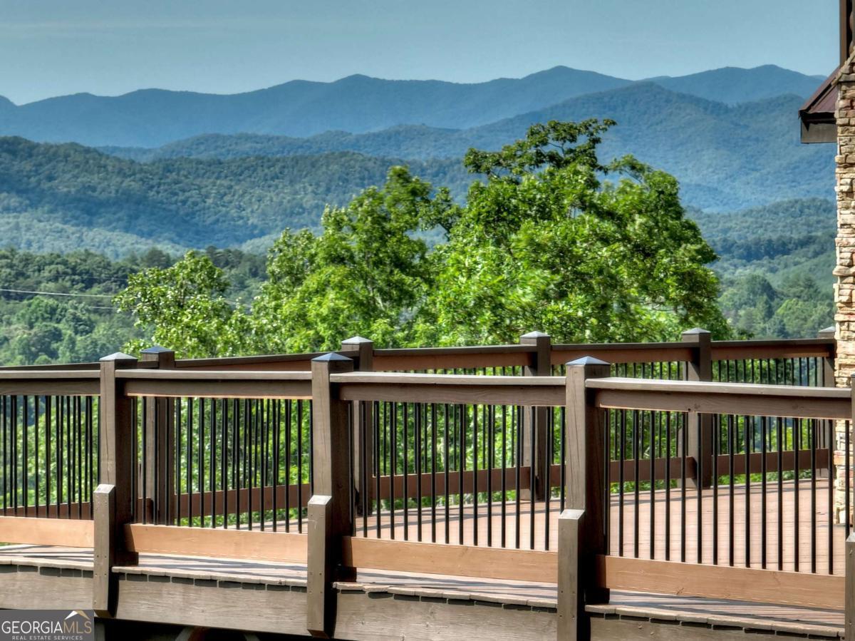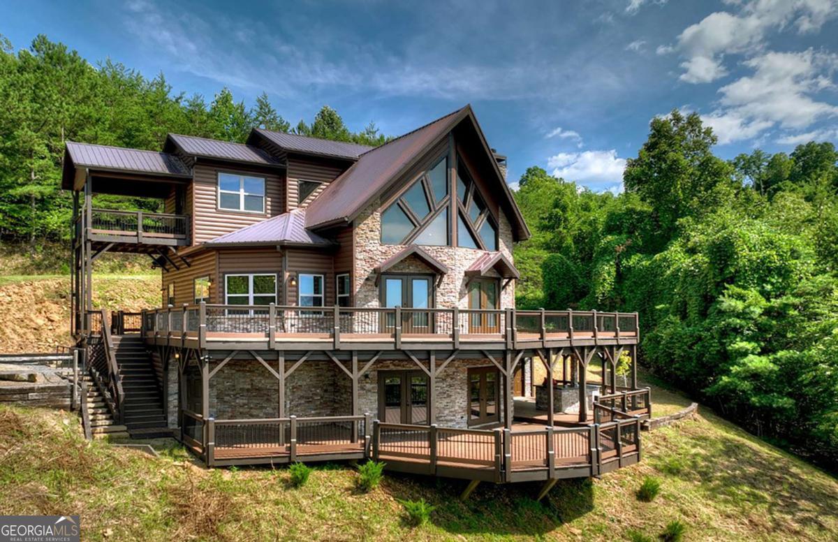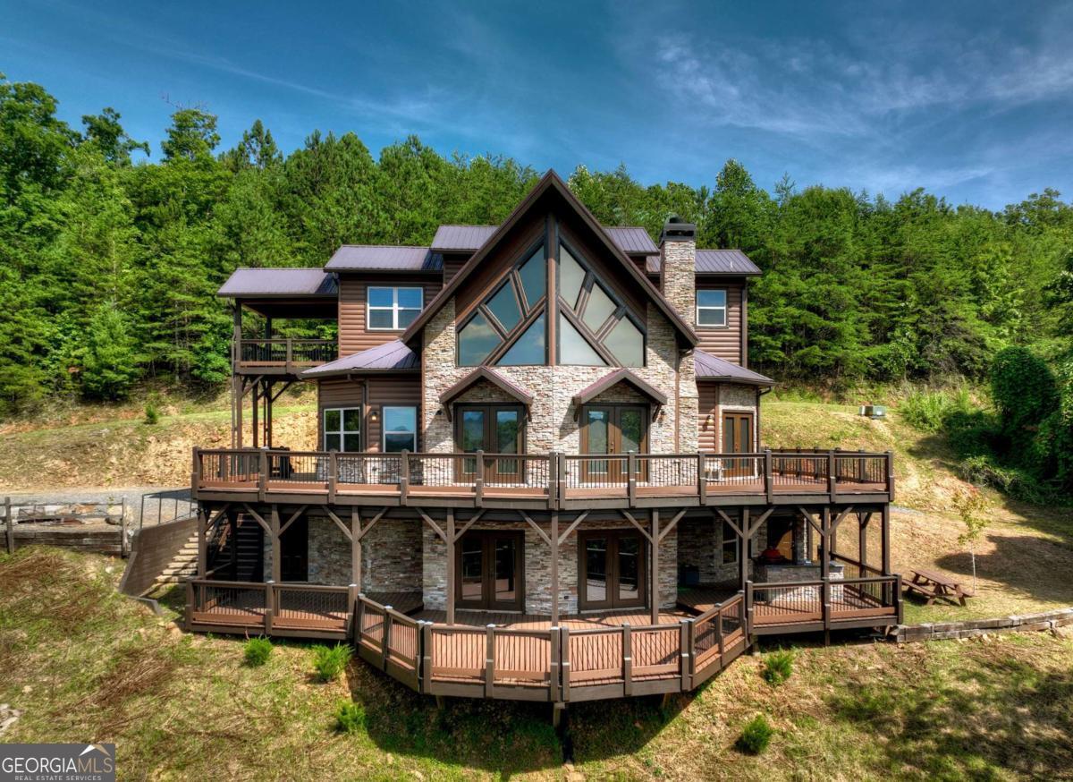 Breathtaking long range mountain views await you. Experience the charm of rustic luxury in this tastefully furnished and well-appointed cabin. Step into the impressive foyer, which offers ample storage. The interior boasts exceptional finishes and attention to detail. A stunning stone wall of windows elegantly captures the gorgeous views from the open-concept living, dining, and kitchen spaces, which also features a wine bar. Equipped with high-end appliances, stylish countertops, modern cabinets and a handy pot filler faucet, the kitchen is a chef's dream. The upper-level primary suite includes a cozy sitting room, a private balcony, and a convenient stackable washer/dryer. On the terrace level, you'll find another full kitchen, a spacious recreation area, and a contemporary media room perfect for movie nights with family and friends. Expansive decks provide an outdoor kitchen and plenty of space-both covered and uncovered-for entertaining guests. This home is practically new; though construction began in 2005, it was completed in 2023, when the certificate of occupancy was issued. Enjoy deeded creek access and a community pavilion that present endless opportunities for outdoor adventures. It is conveniently located near the delights of mountain living in North Carolina and North Georgia, including shopping, dining, trout fishing, boating, vineyards, hiking, tubing, and even Murphy's very own casino.